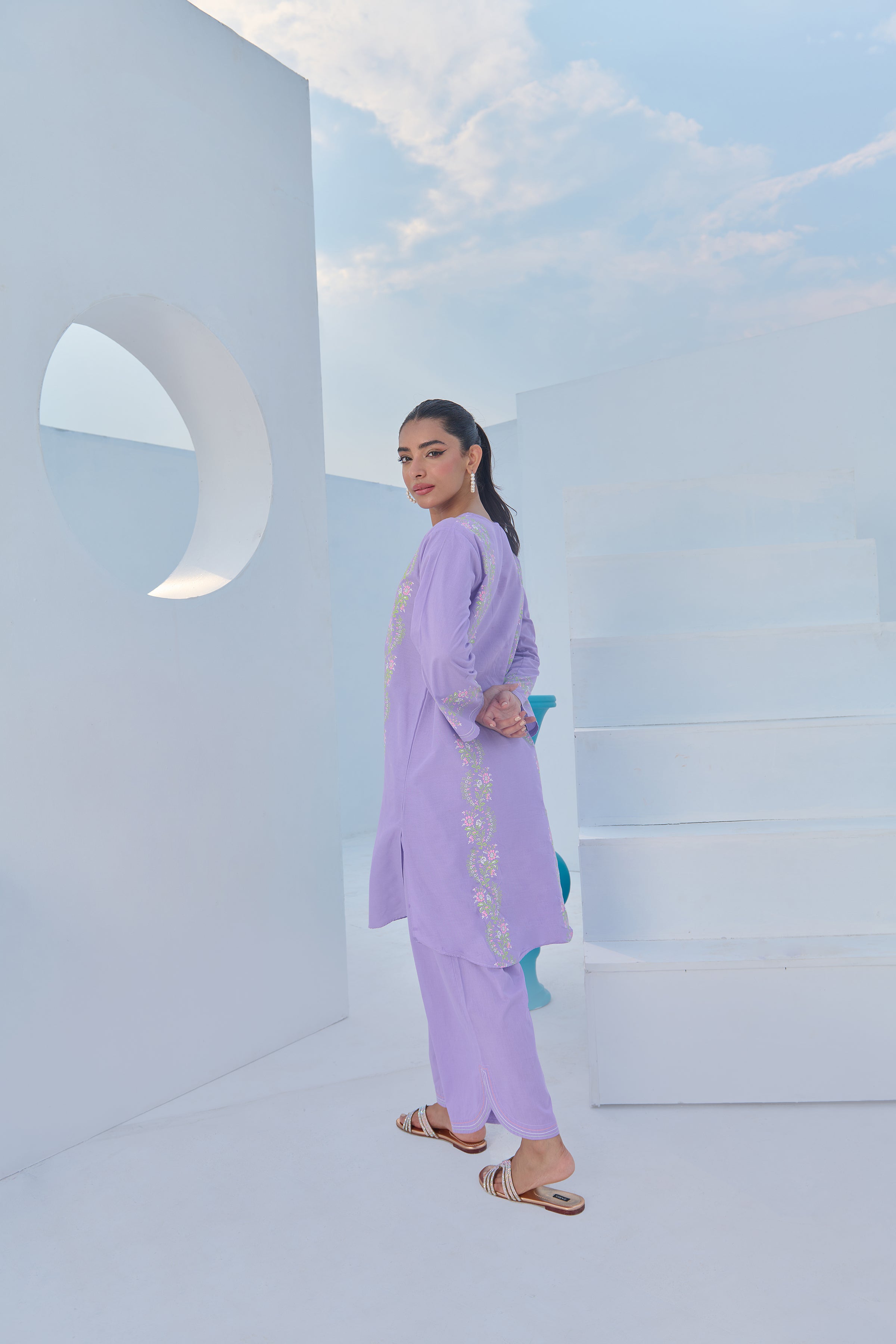 Description: Drape yourself in Lavender cord set – a classic outfit that speaks volumes in style.