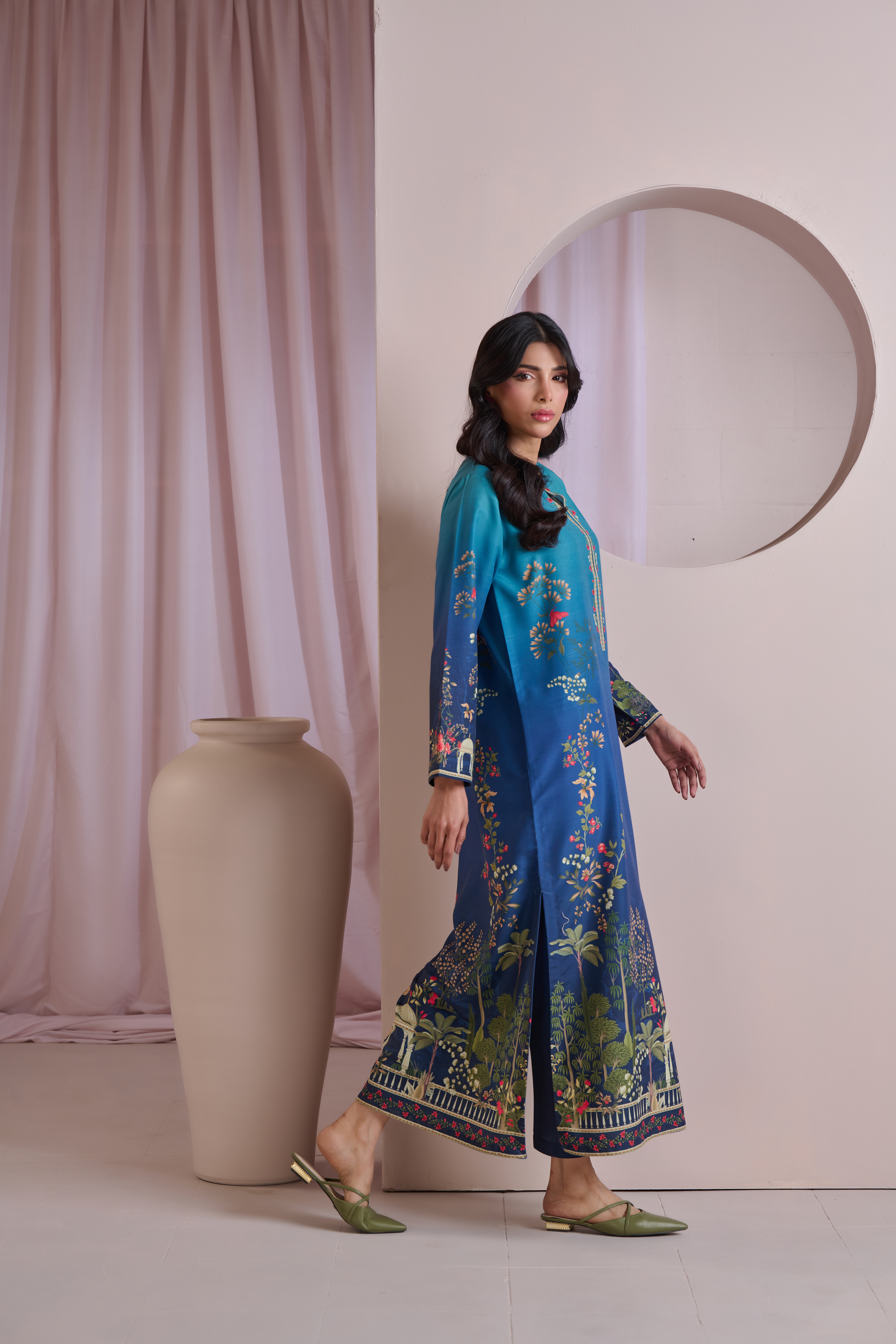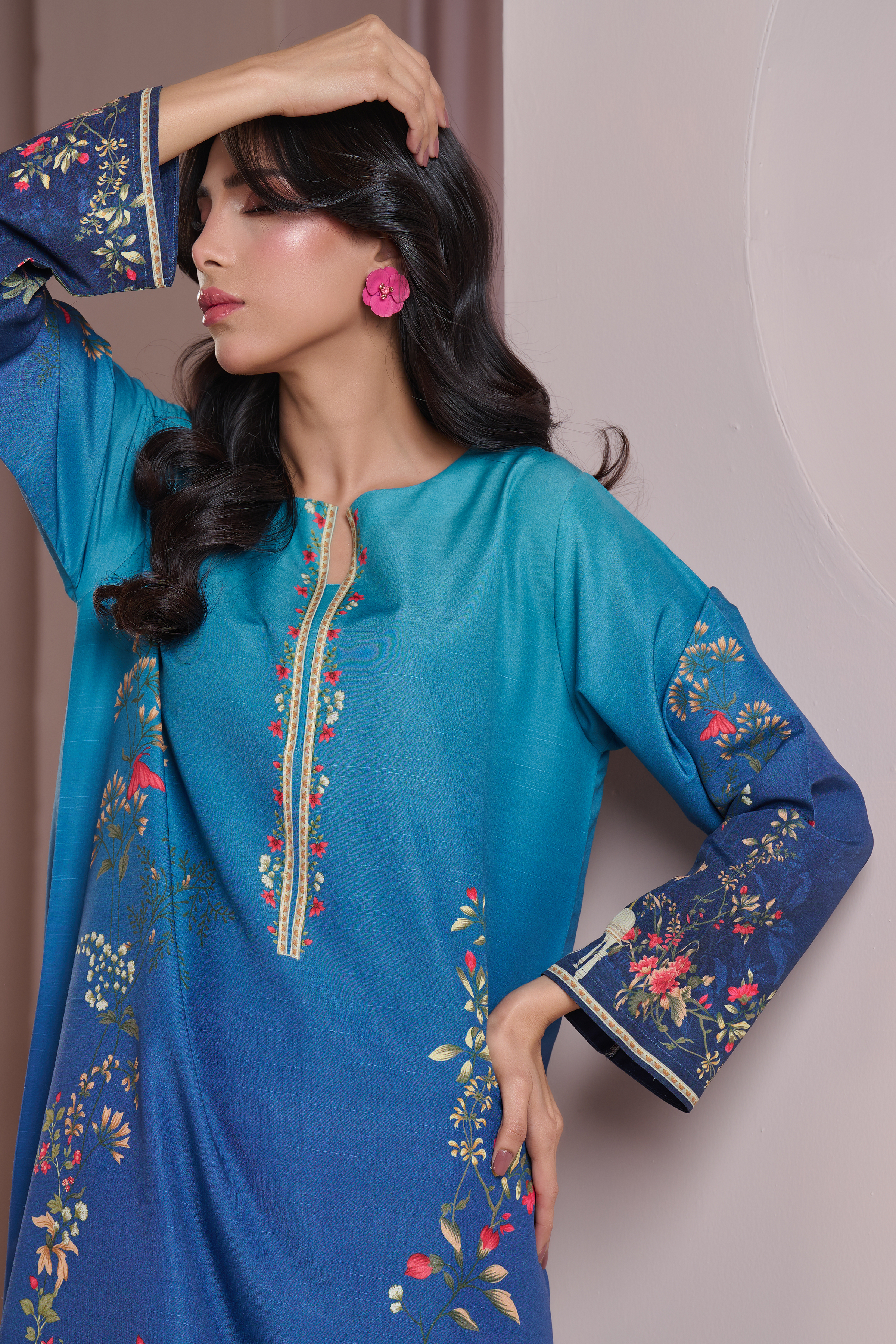 Color: Turquoise and Blue ombre with multi colour florals.