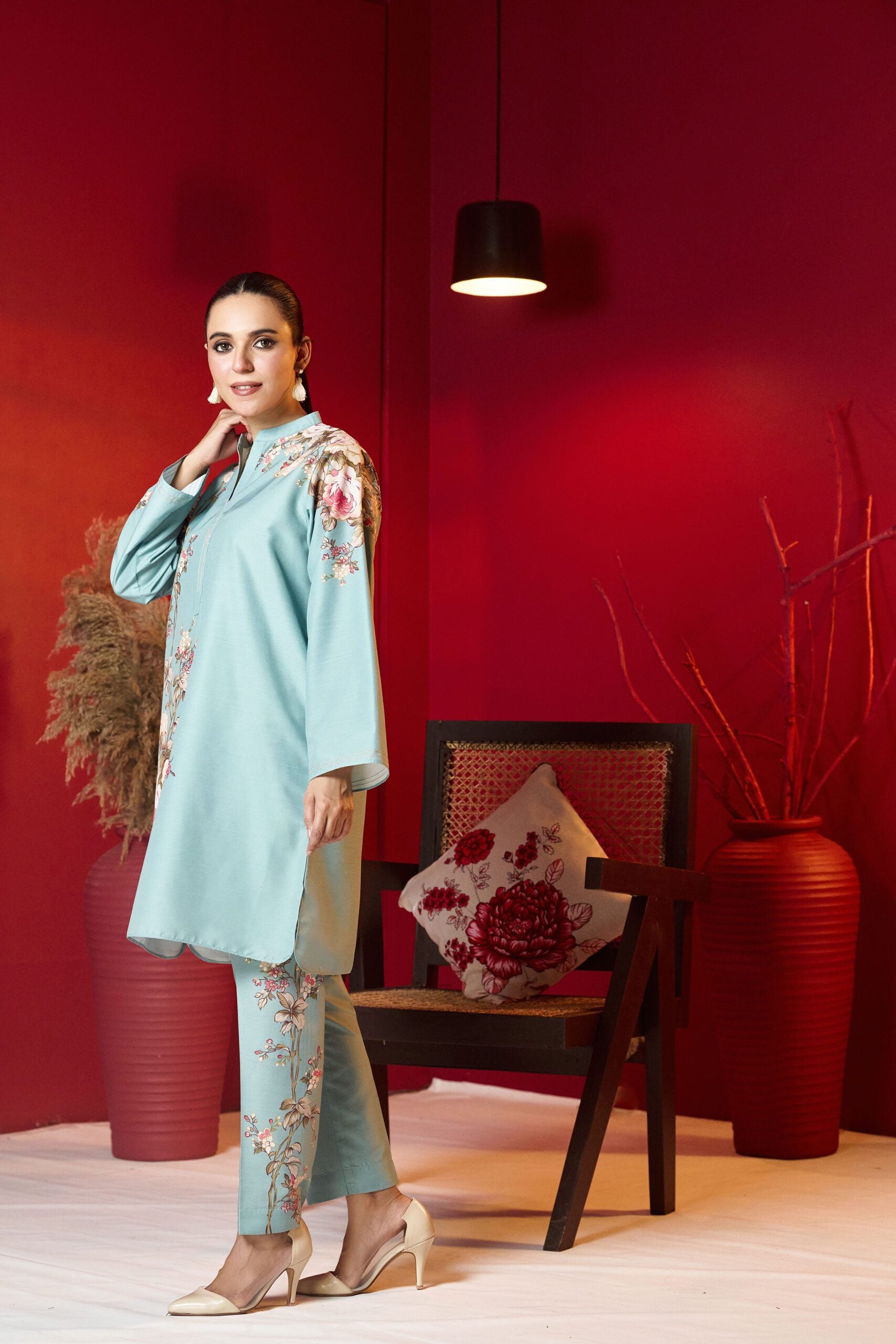 Description: Drape yourself in dusky blue cord set – a classic outfit that speaks volumes in style.