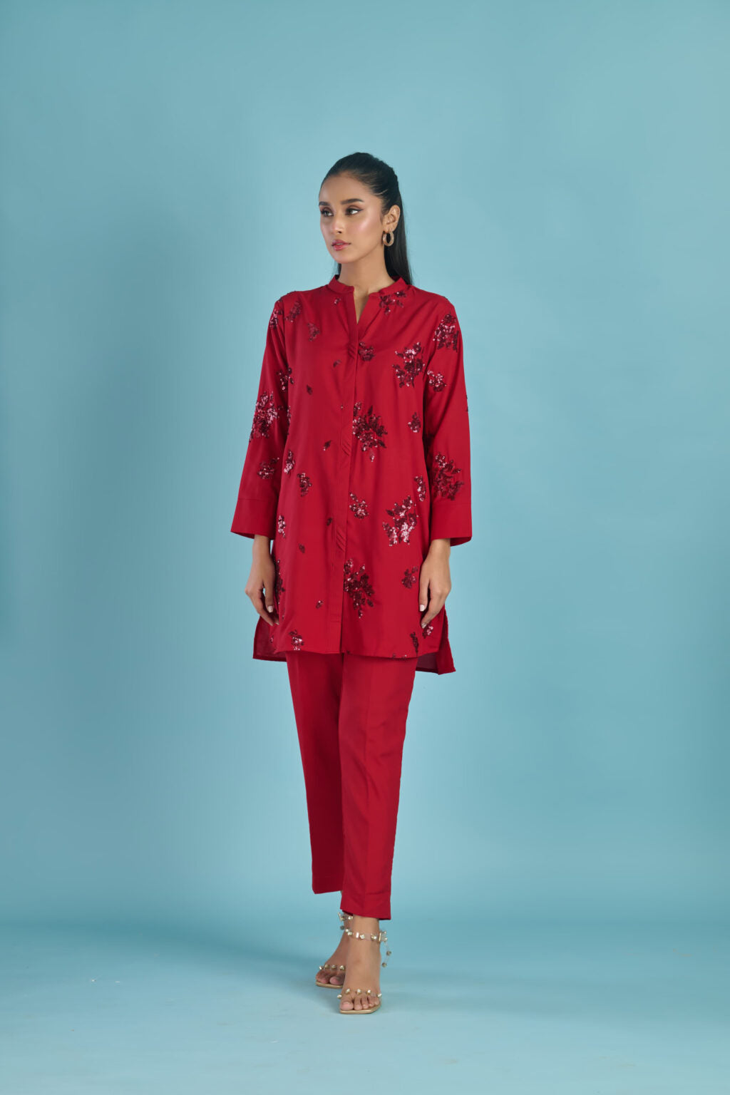 Color: red with sequence embroidery.