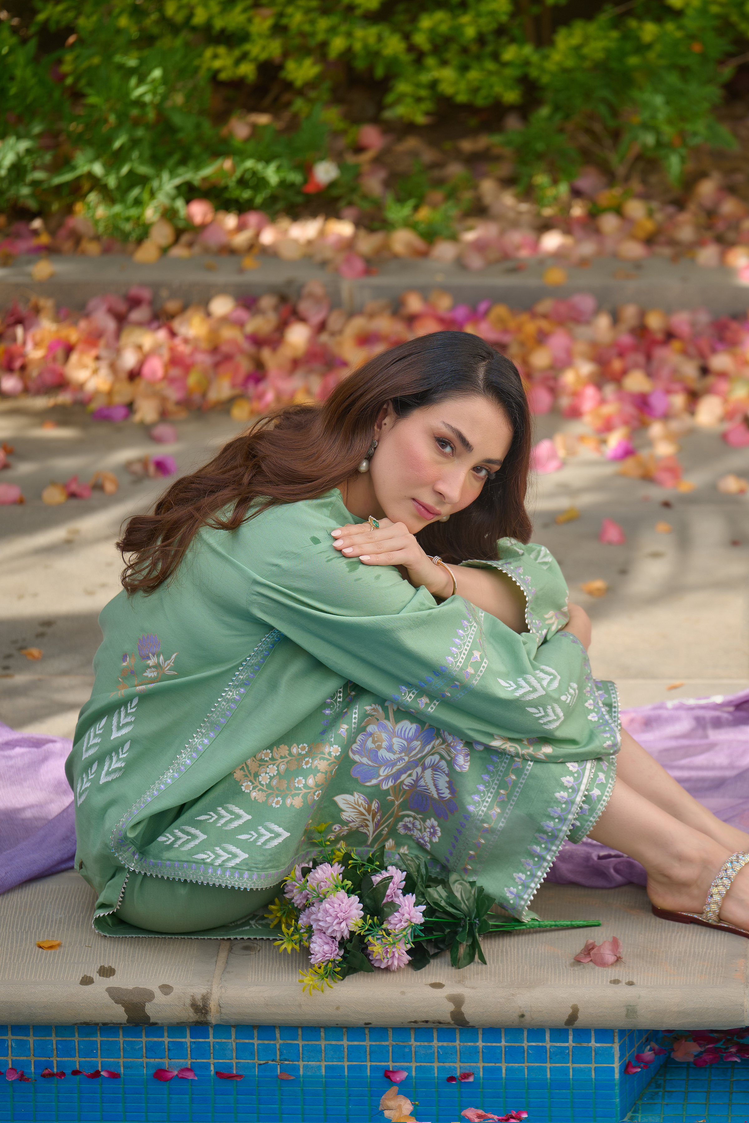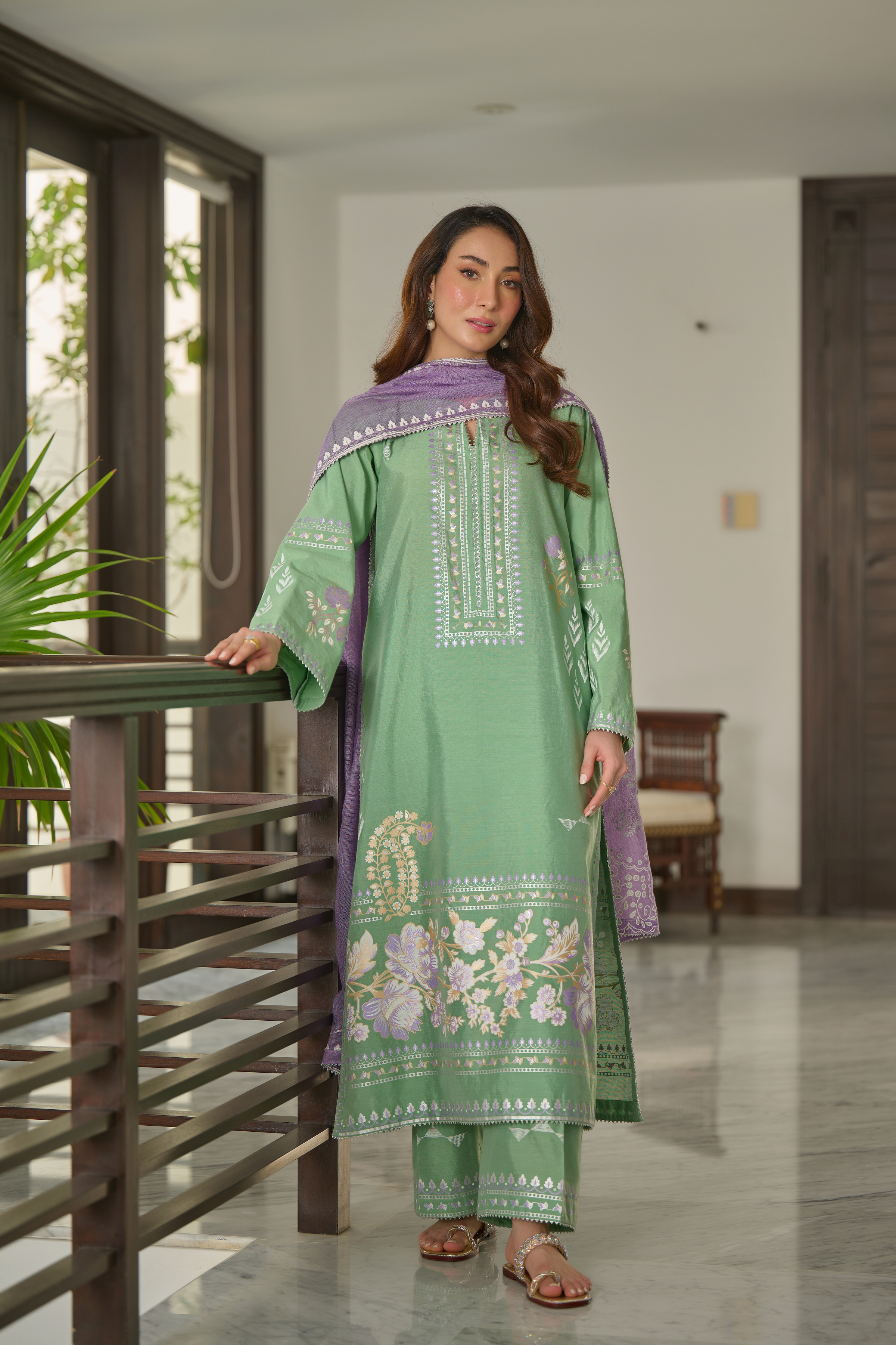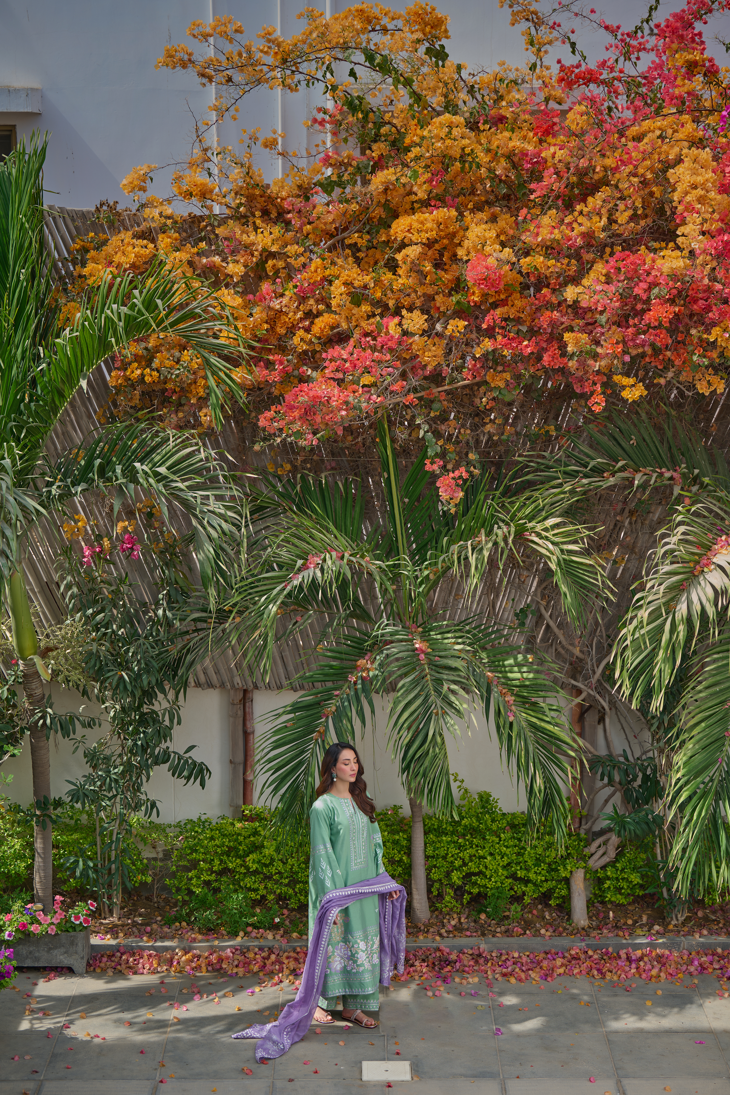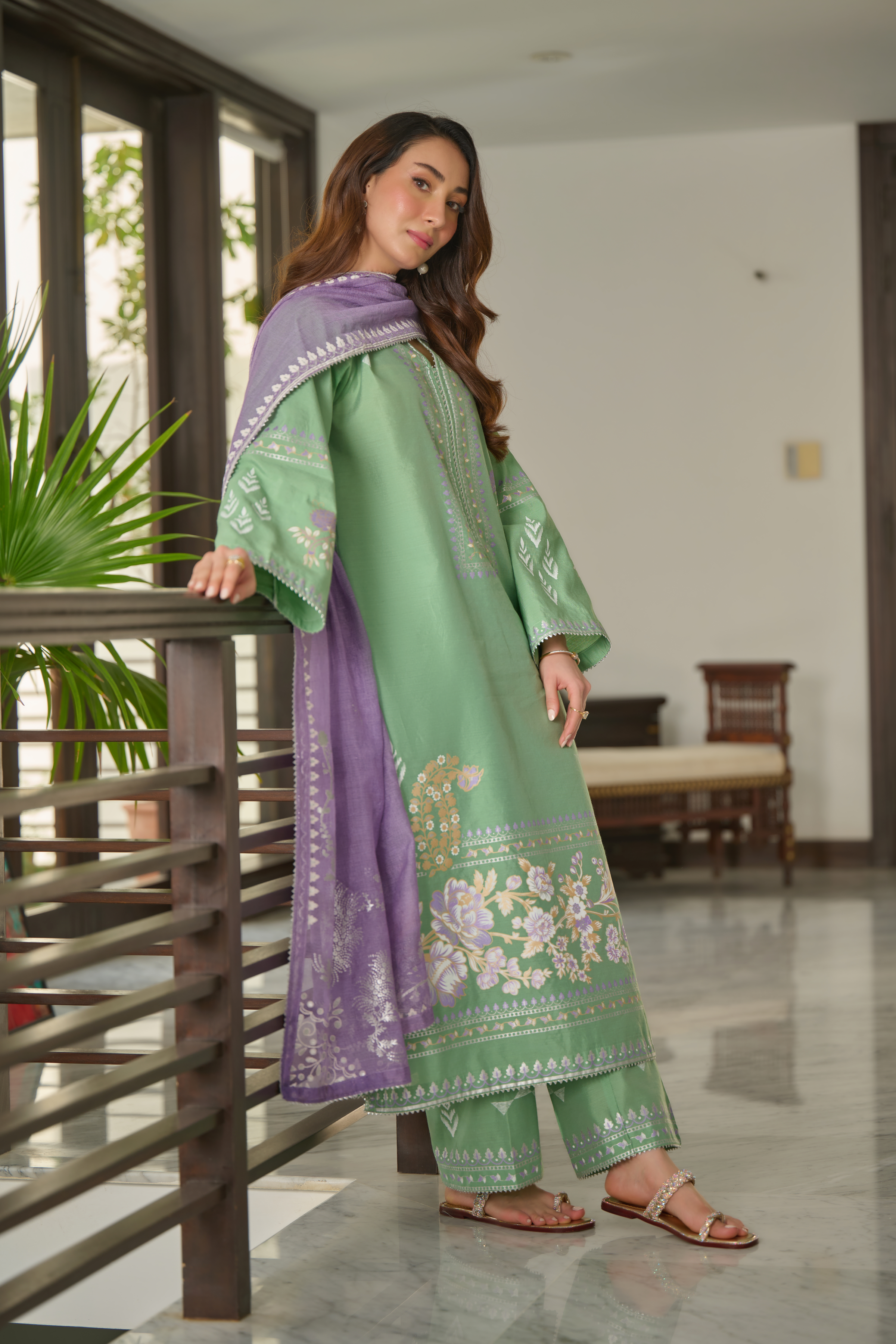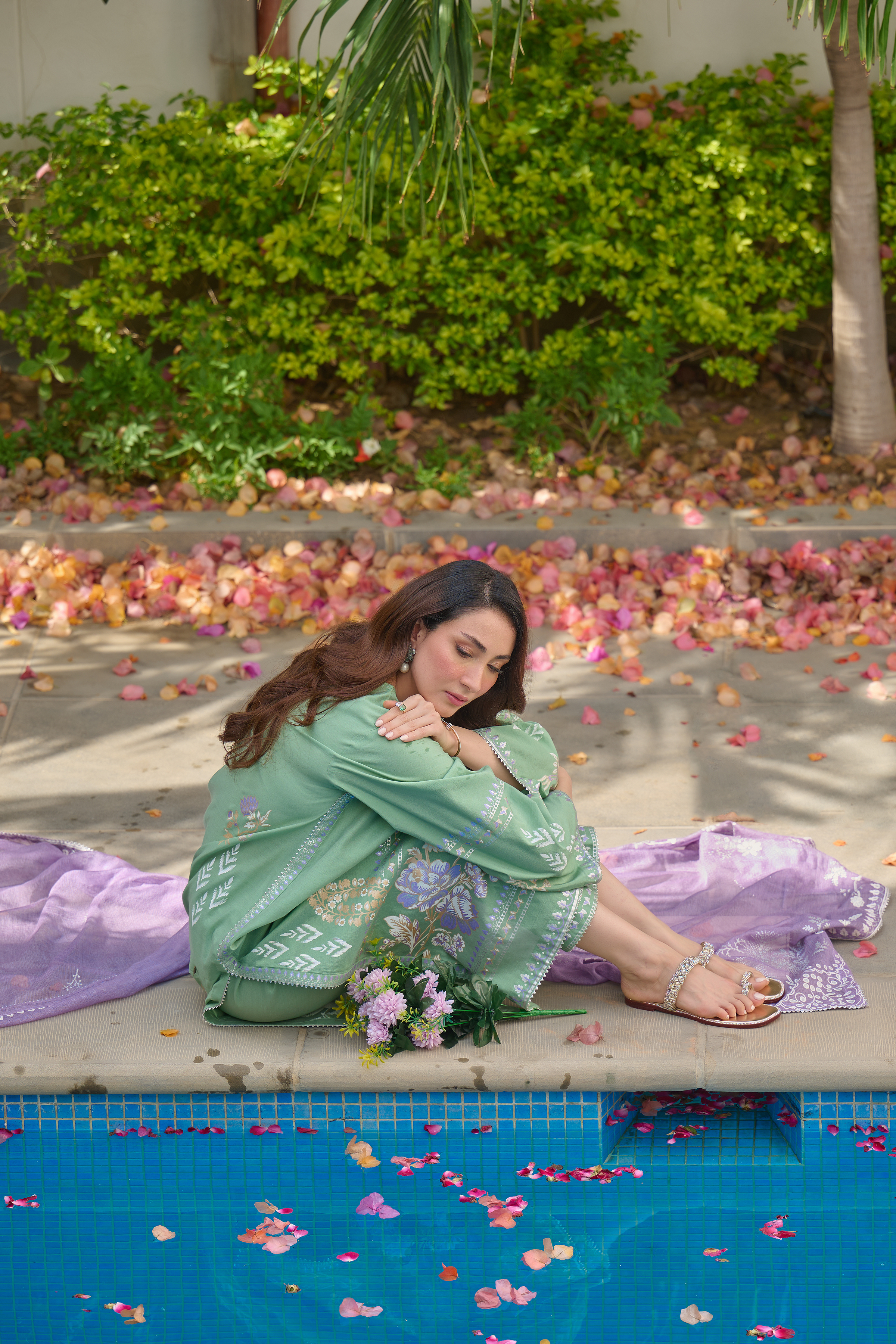 Description: Drape yourself in Mint Green set– Draped in elegance, this luxurious mint green piece is adorned with intricate hand-screen prints in silver and gold hues. The delicate detailing adds a touch of timeless sophistication, making it perfect for both daytime grace and evening allure. Crafted from premium fabric, it ensures effortless comfort while exuding modern ethnic charm. Pair it with statement accessories for a refined look or keep it minimal for understated elegance.