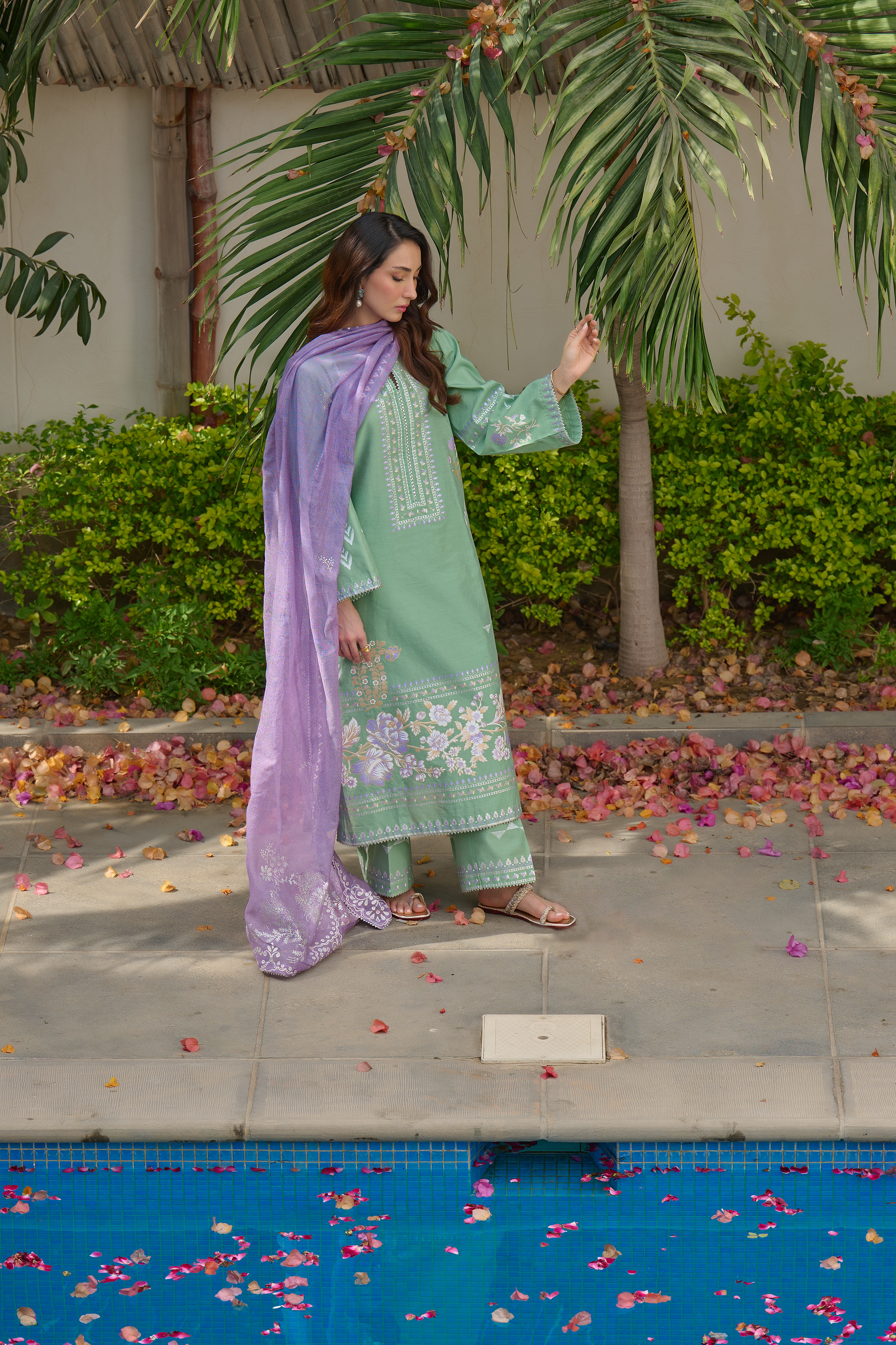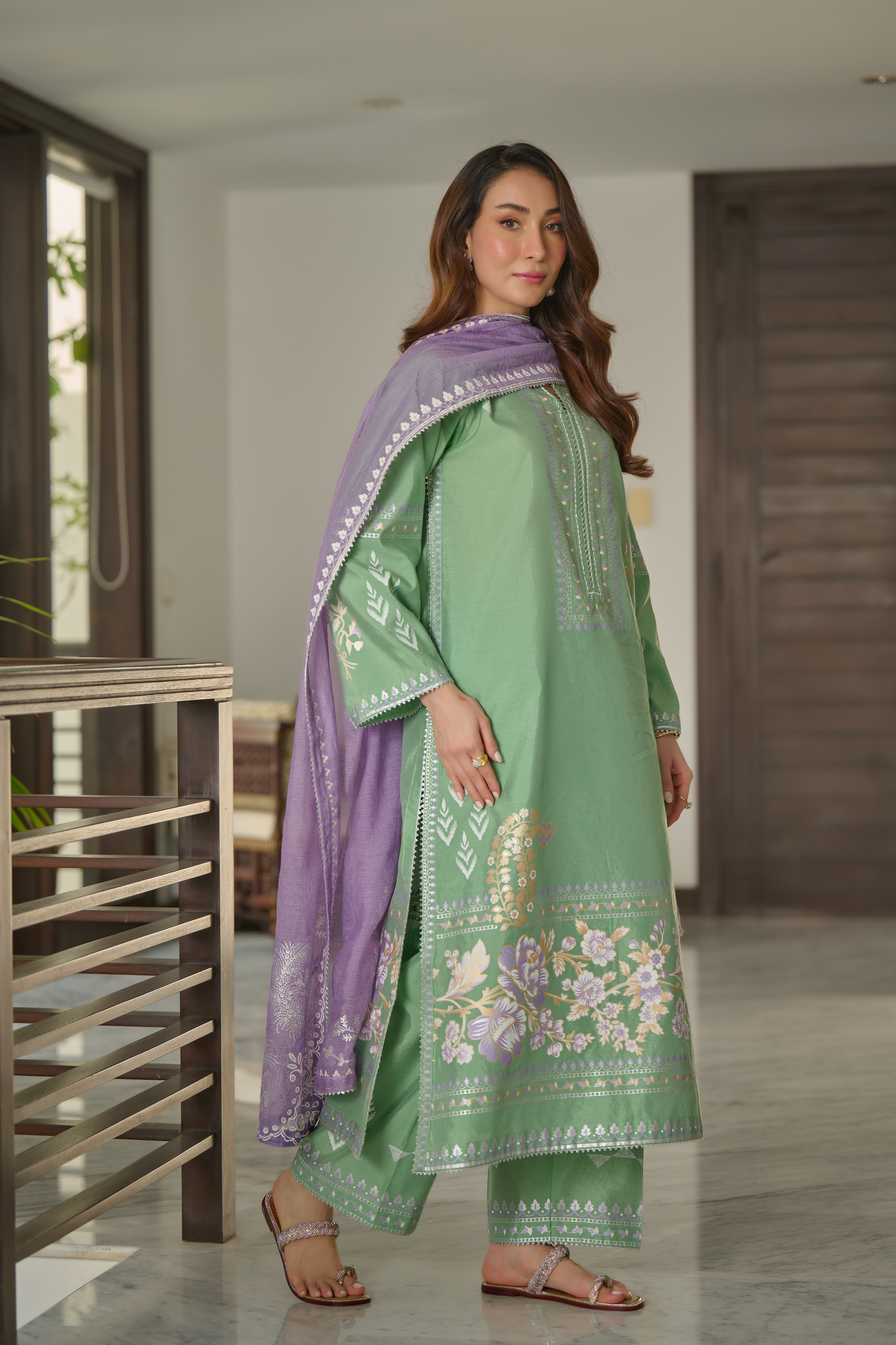 Color: Mint Green and Lilac with Silver and Gold Print.