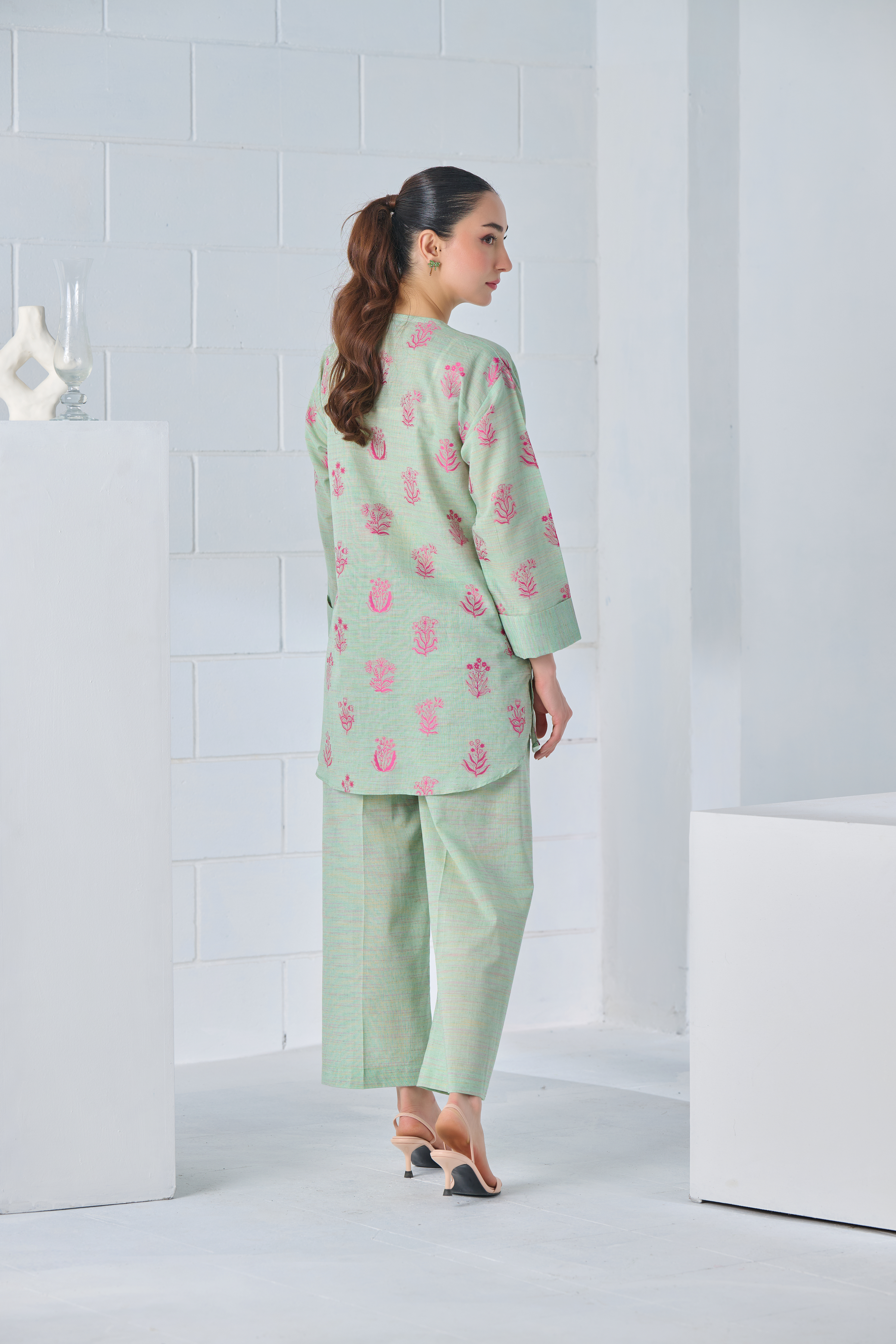 Description: Drape yourself in our in-house custom made fabric with Jaquard Booti – a classic outfit that speaks volumes in style.
