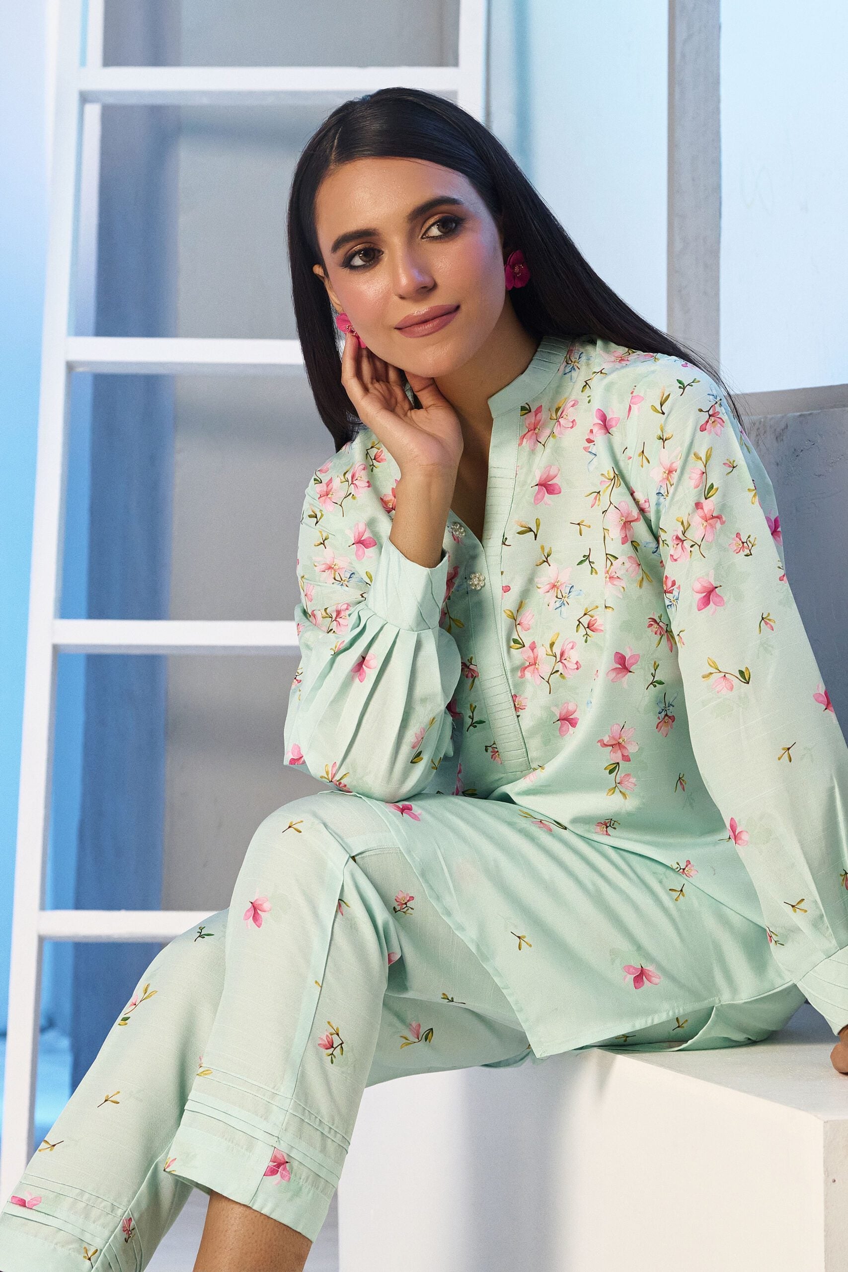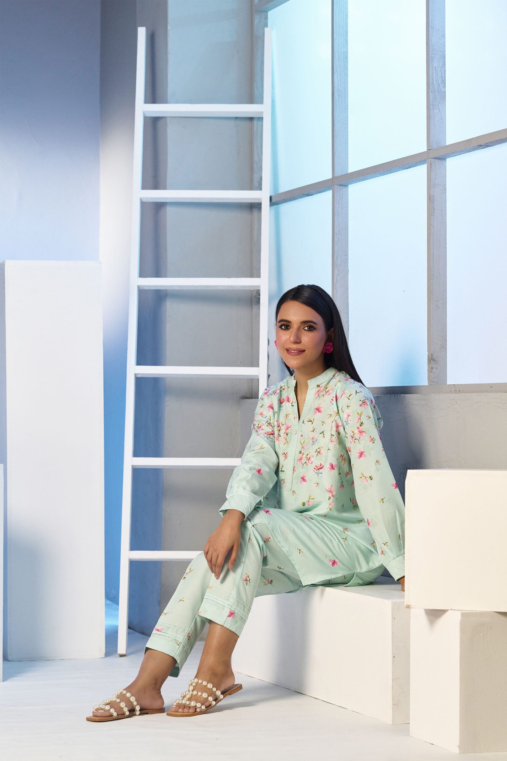 Description: Drape yourself in mint green cord set – a classic outfit that speaks volumes in style.