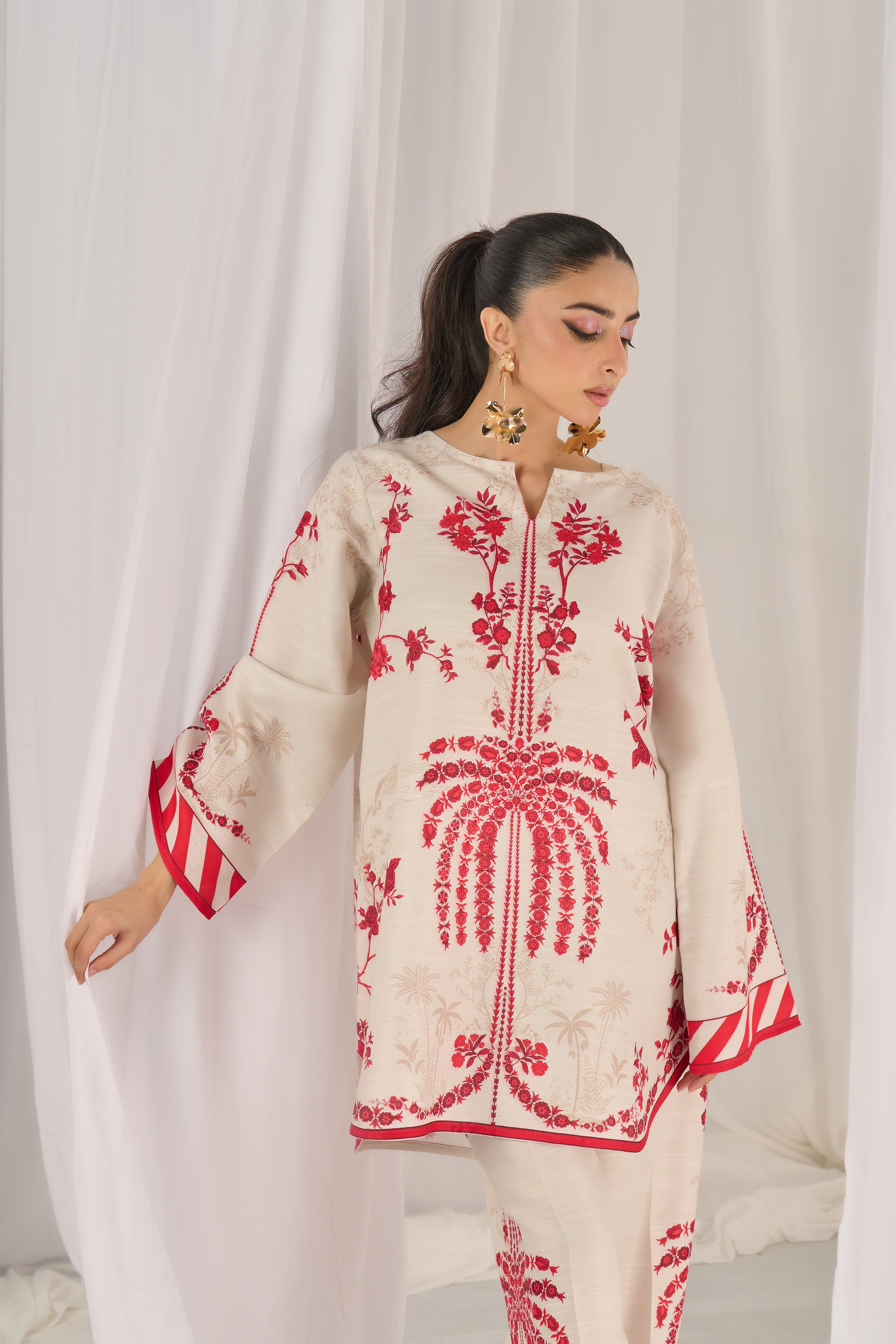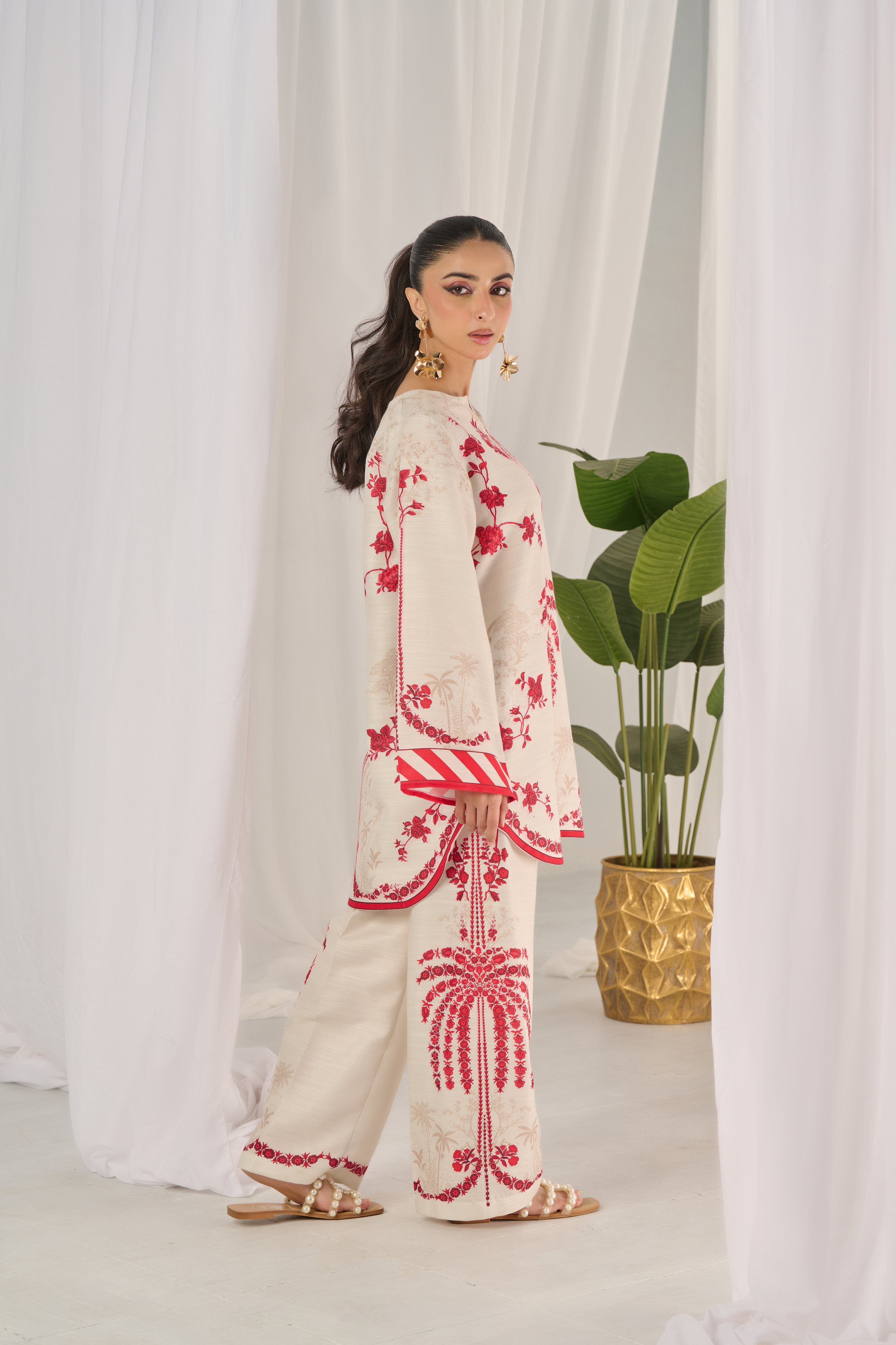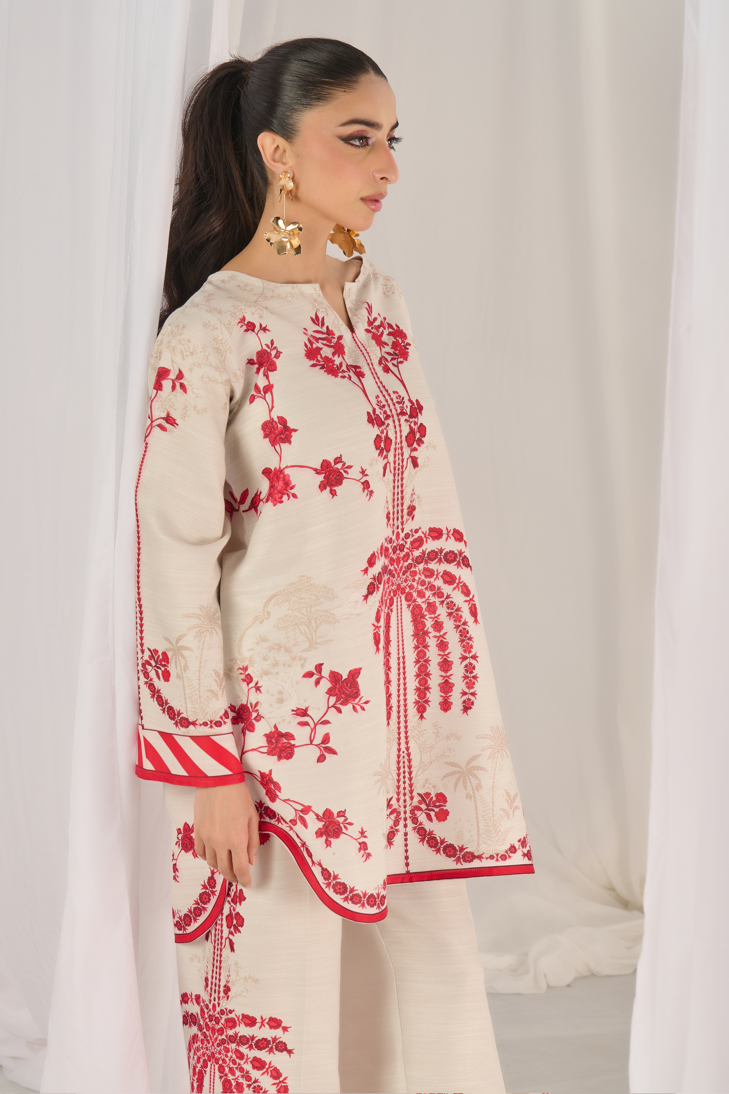 Description: Drape yourself in Ivory and Red set– a classic outfit that speaks volumes in style.