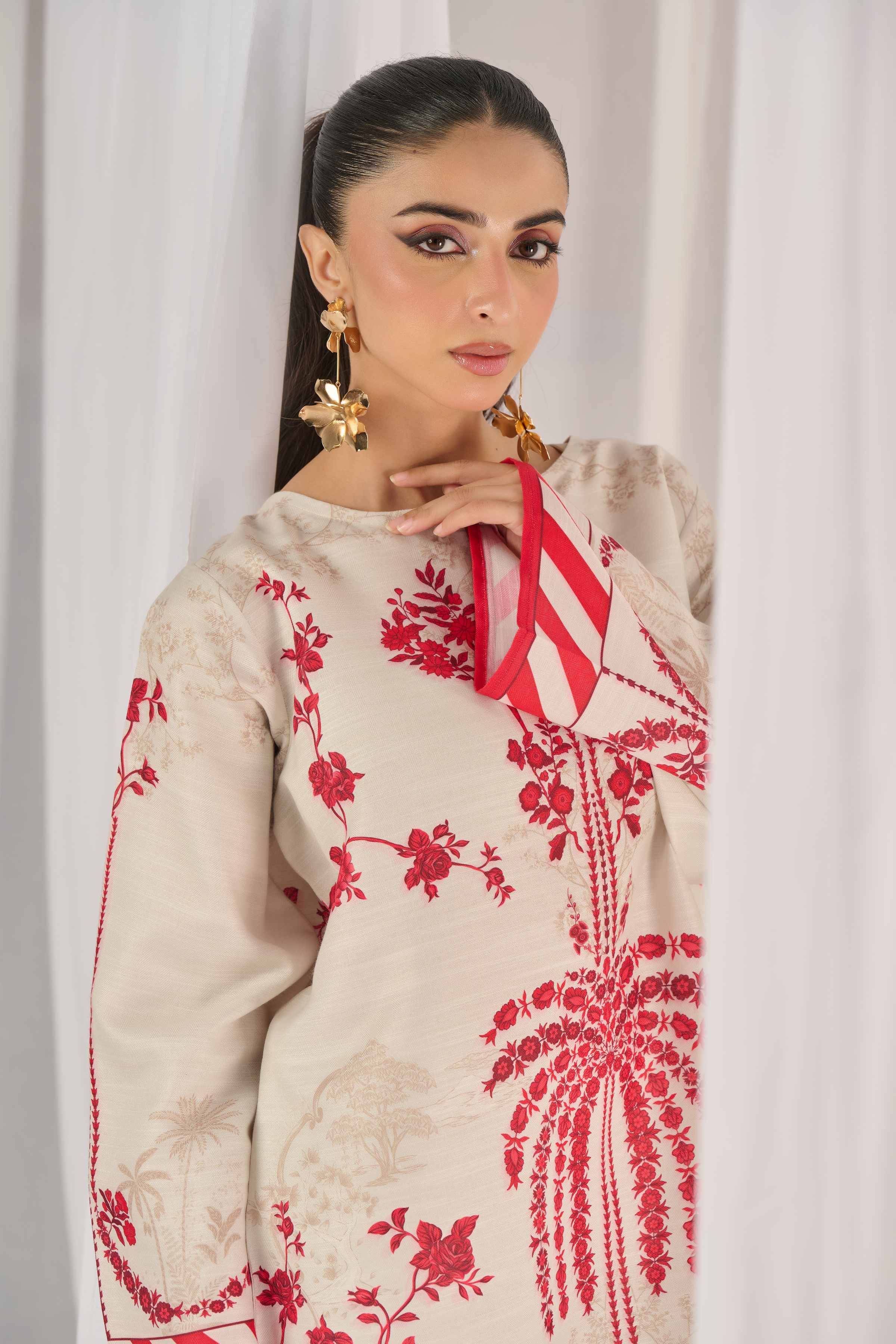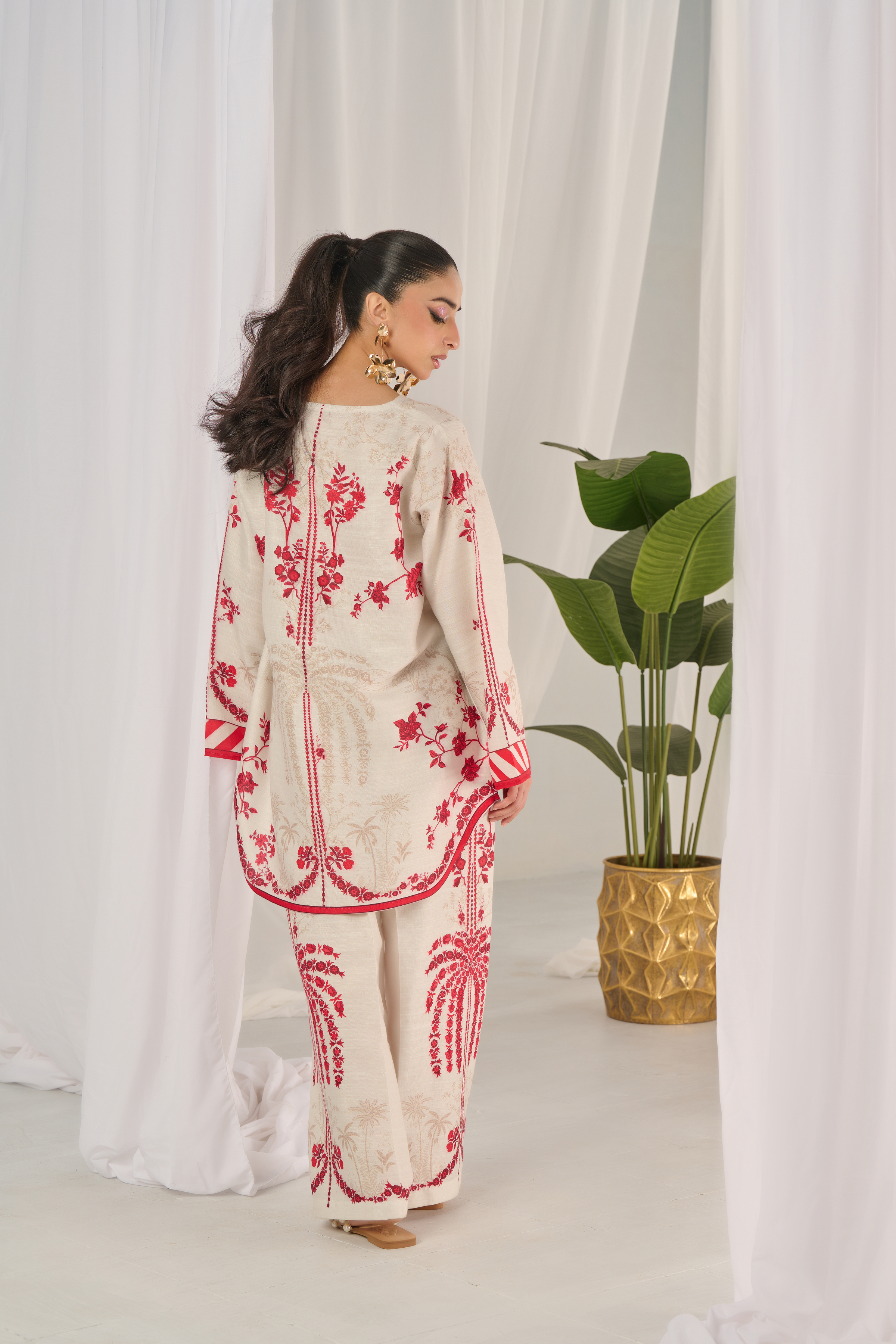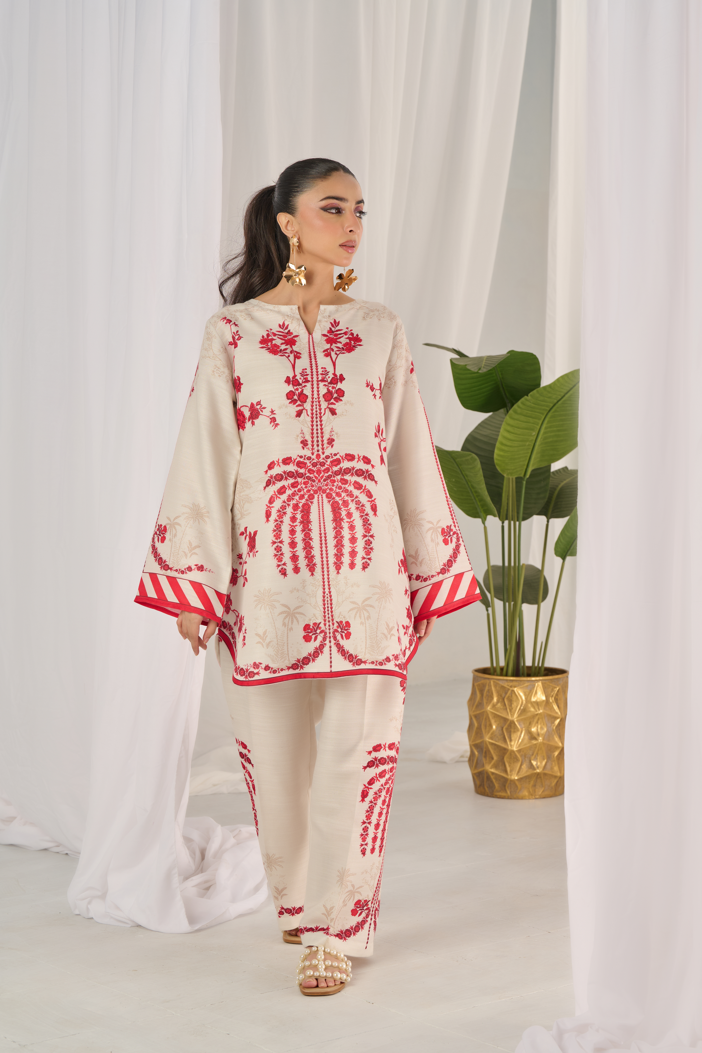 Description: Drape yourself in Ivory and Red set– a classic outfit that speaks volumes in style.