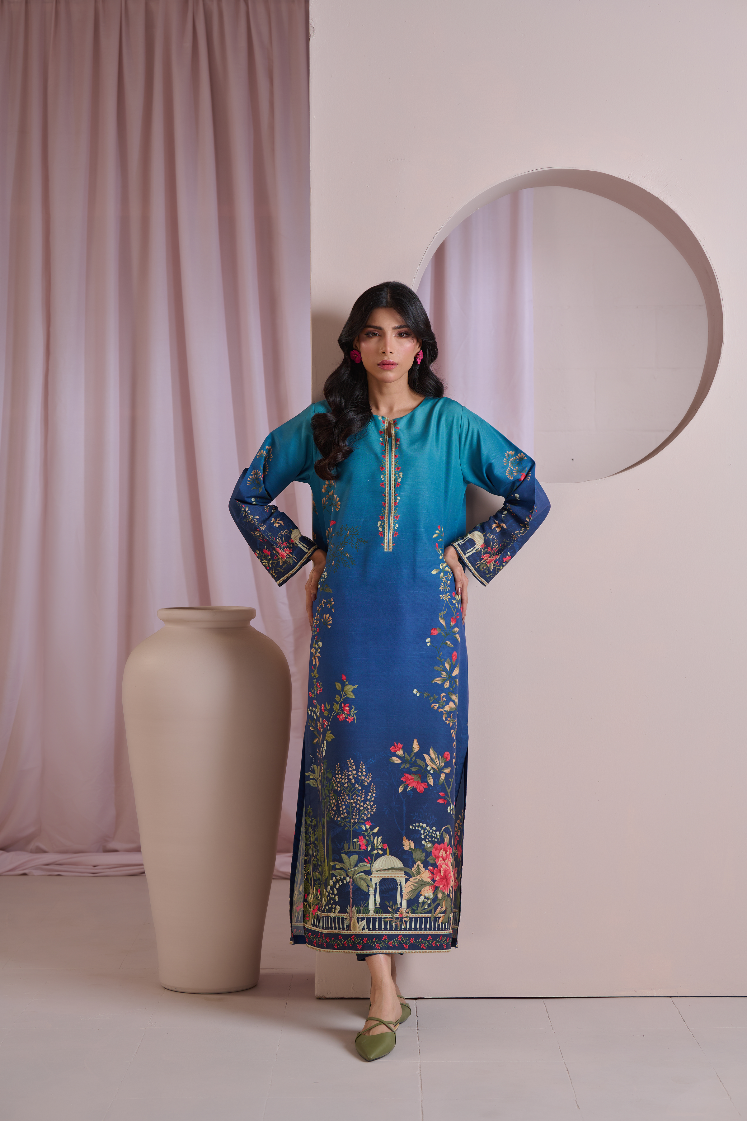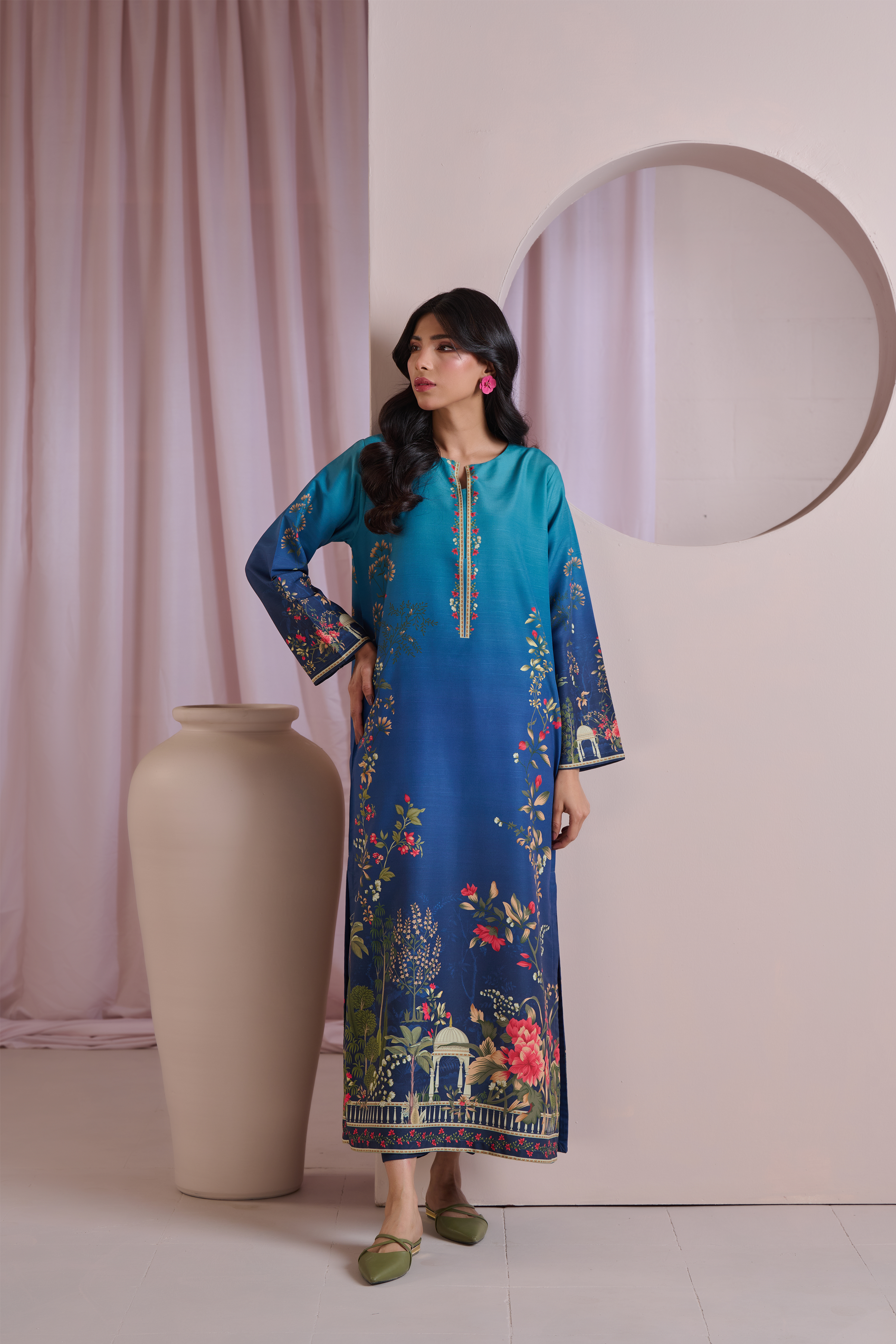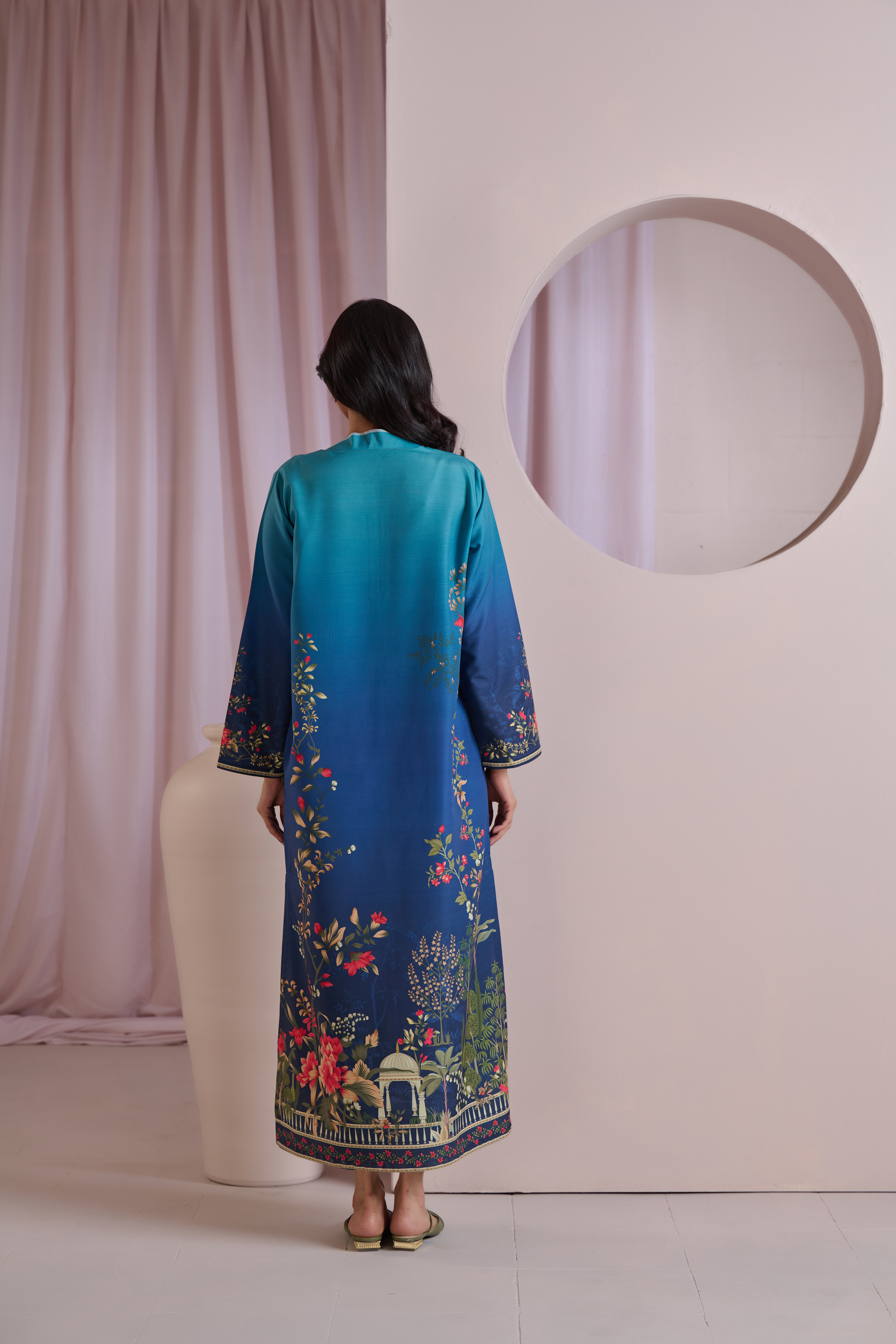 Color: Turquoise and Blue ombre with multi colour florals.