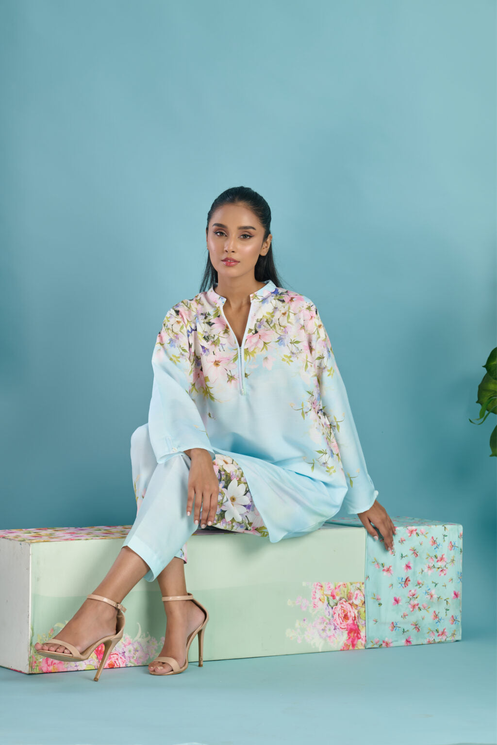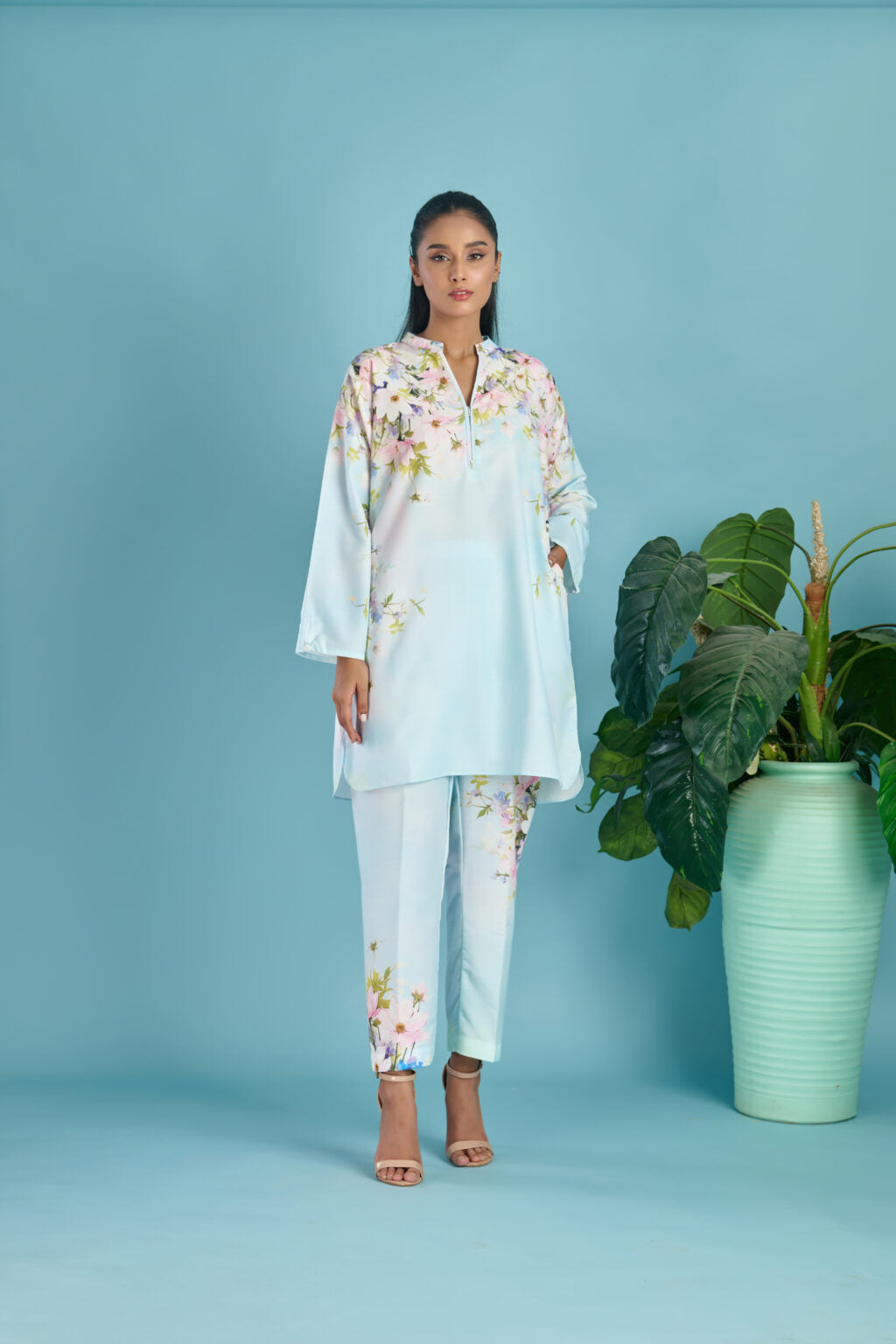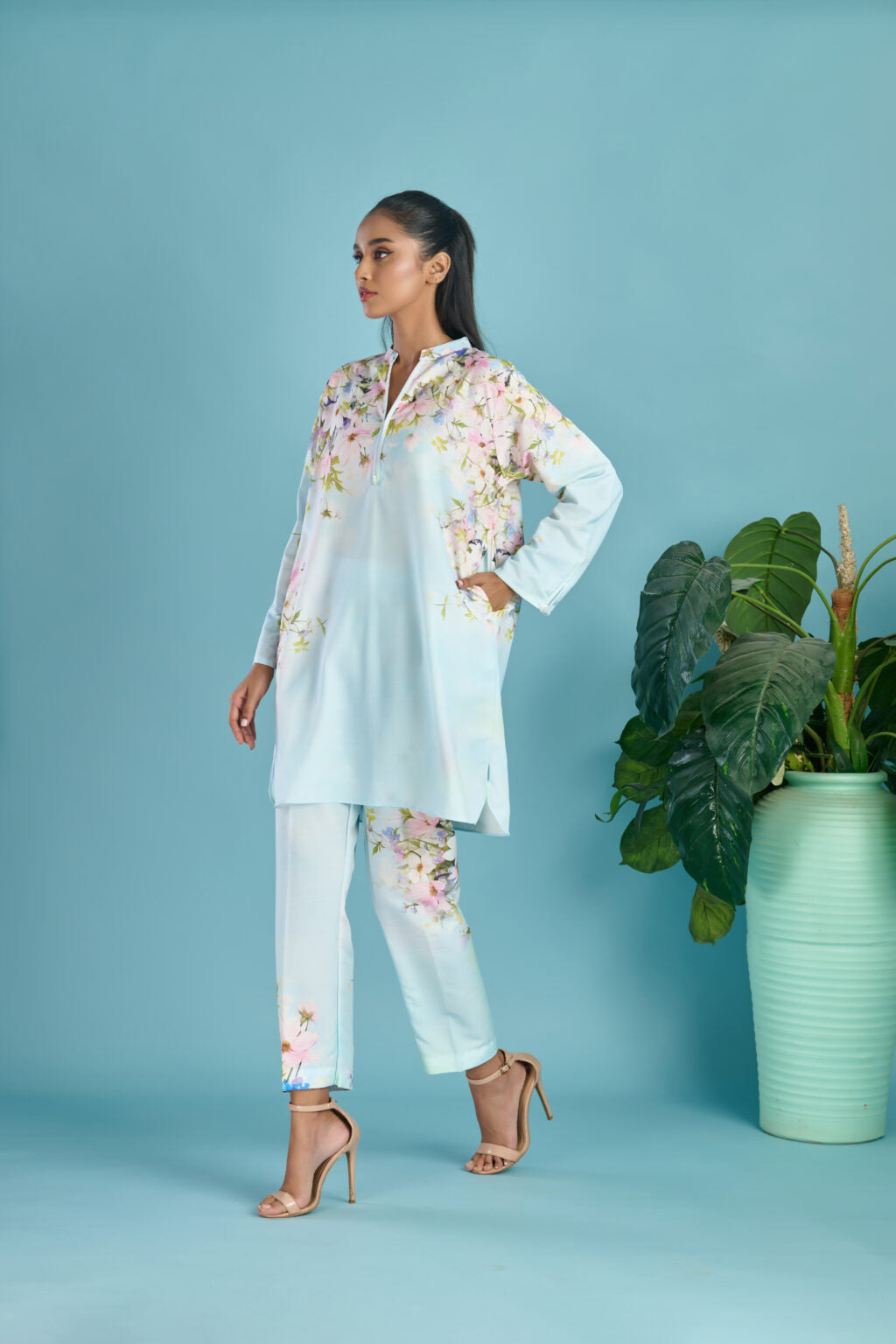 Drape yourself in powder blue cord set – a classic outfit that speaks volumes in style.