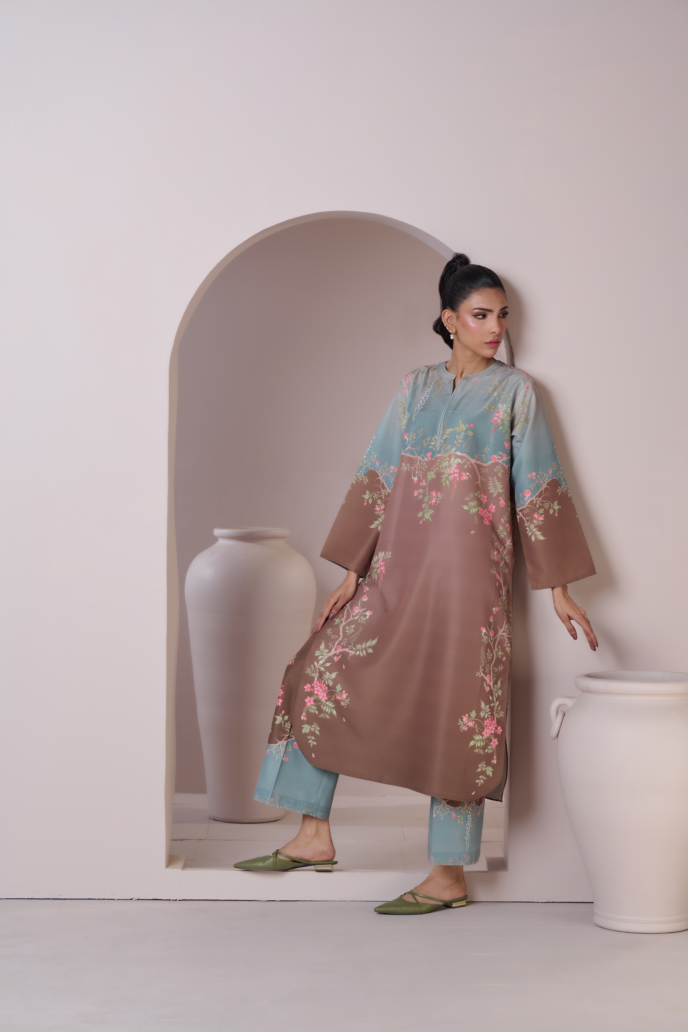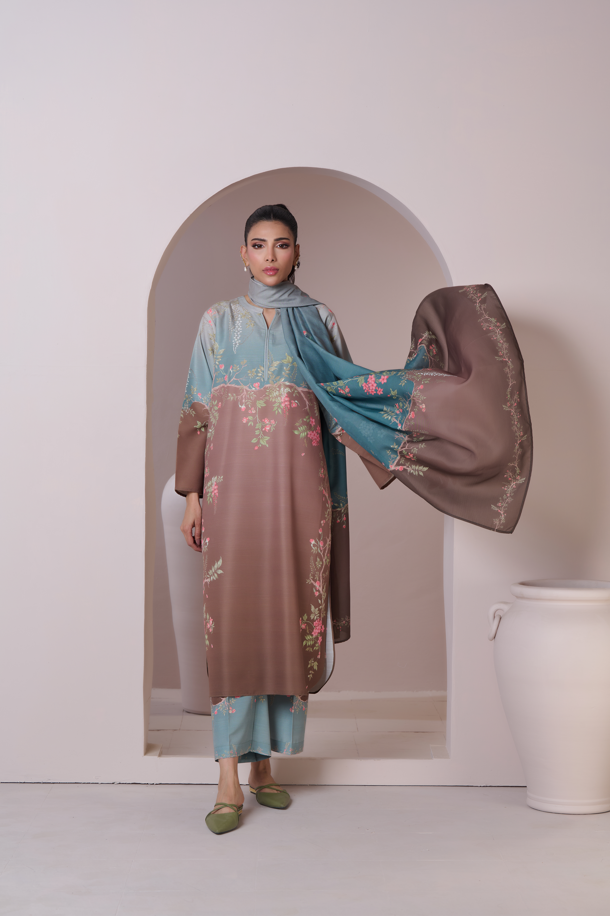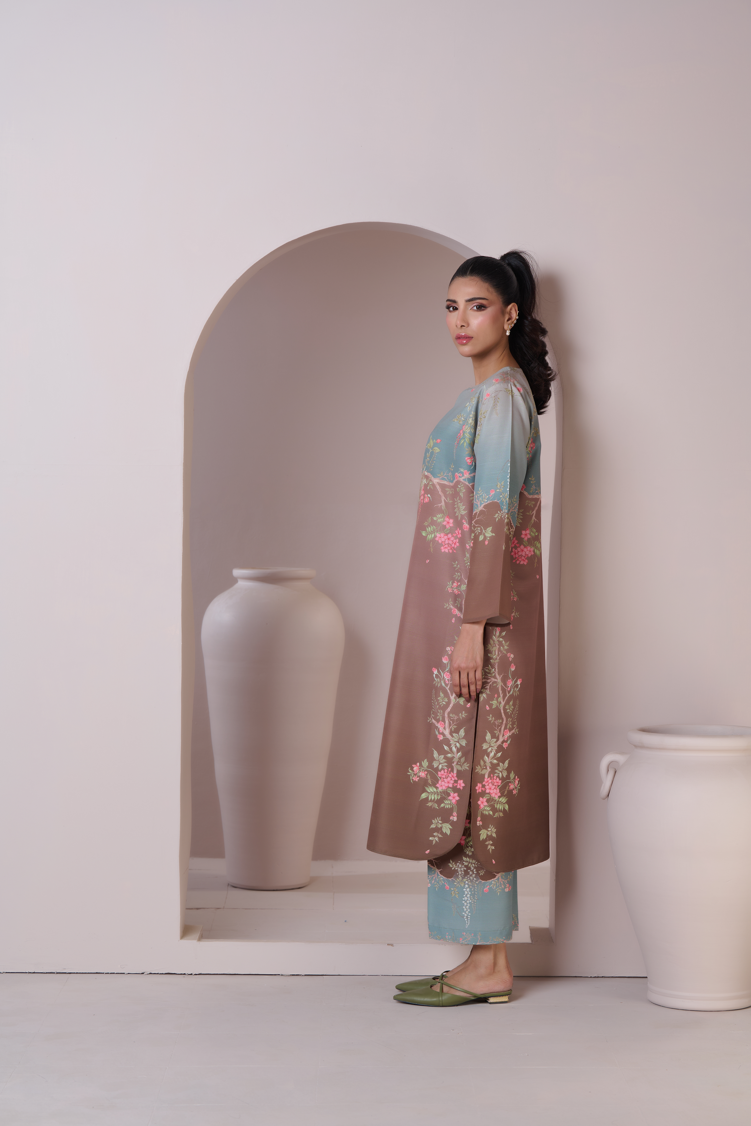 Description: Drape yourself in Brown and Teal set– a classic outfit that speaks volumes in style
