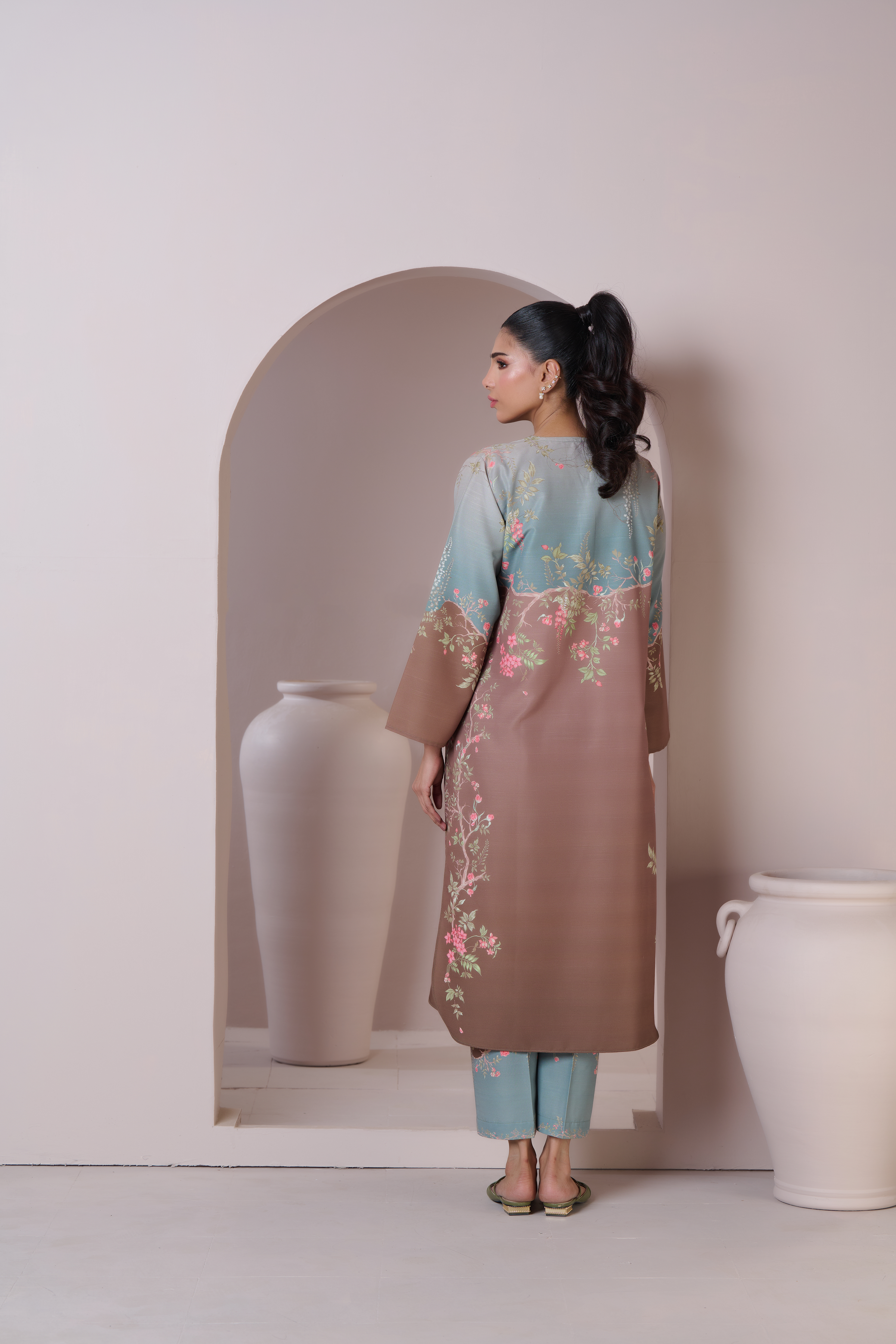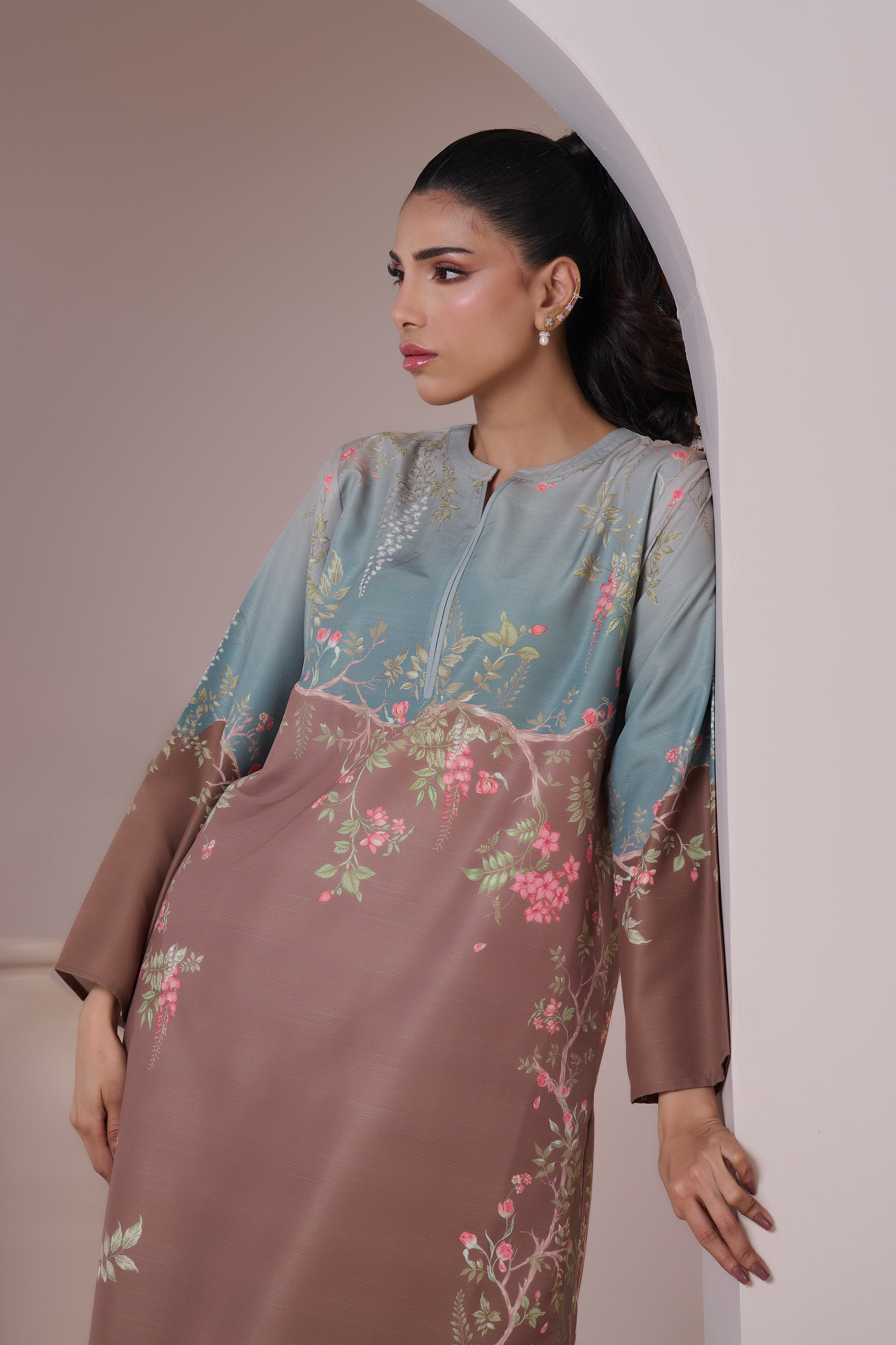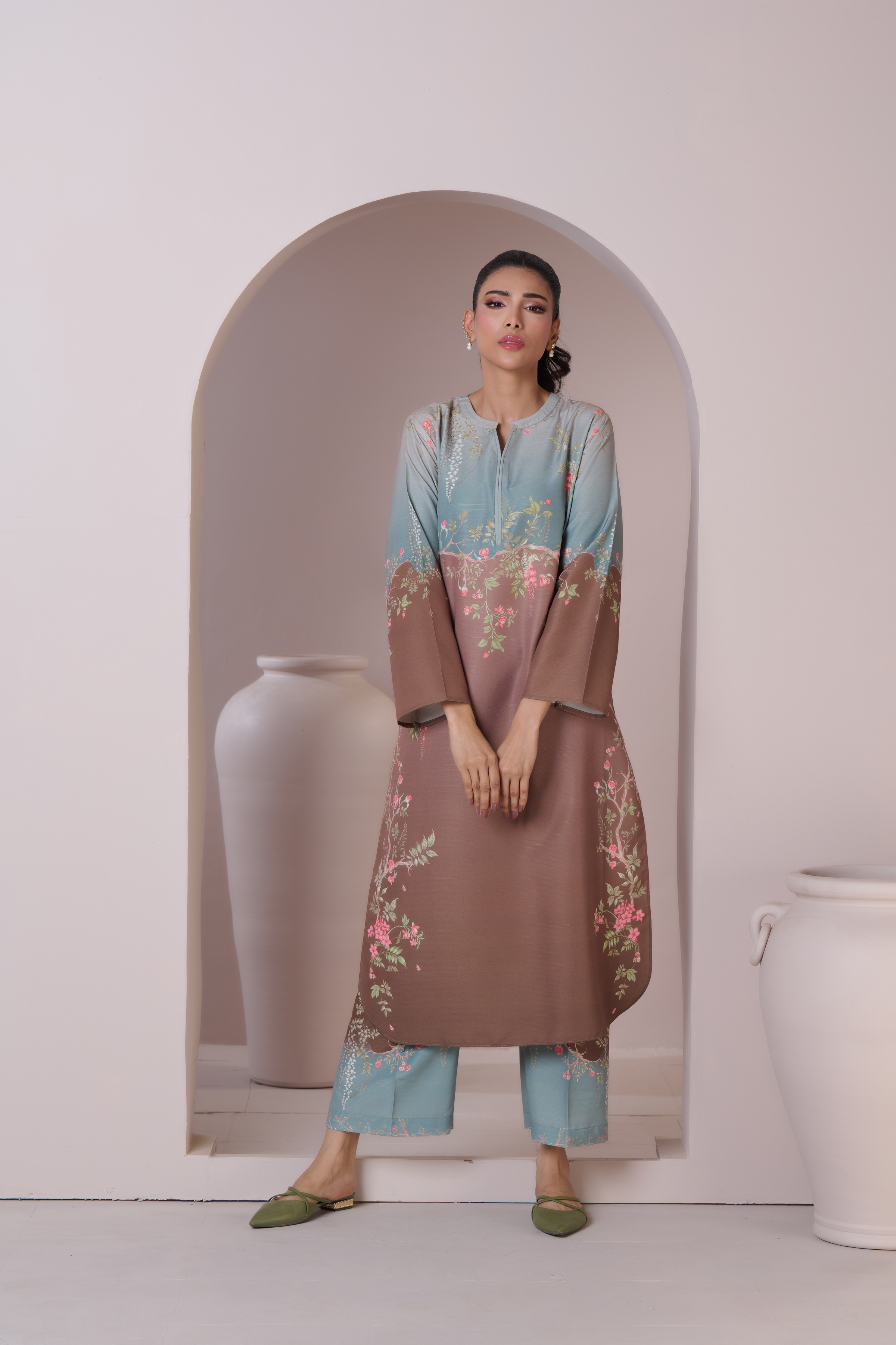 Description: Drape yourself in Brown and Teal set– a classic outfit that speaks volumes in style