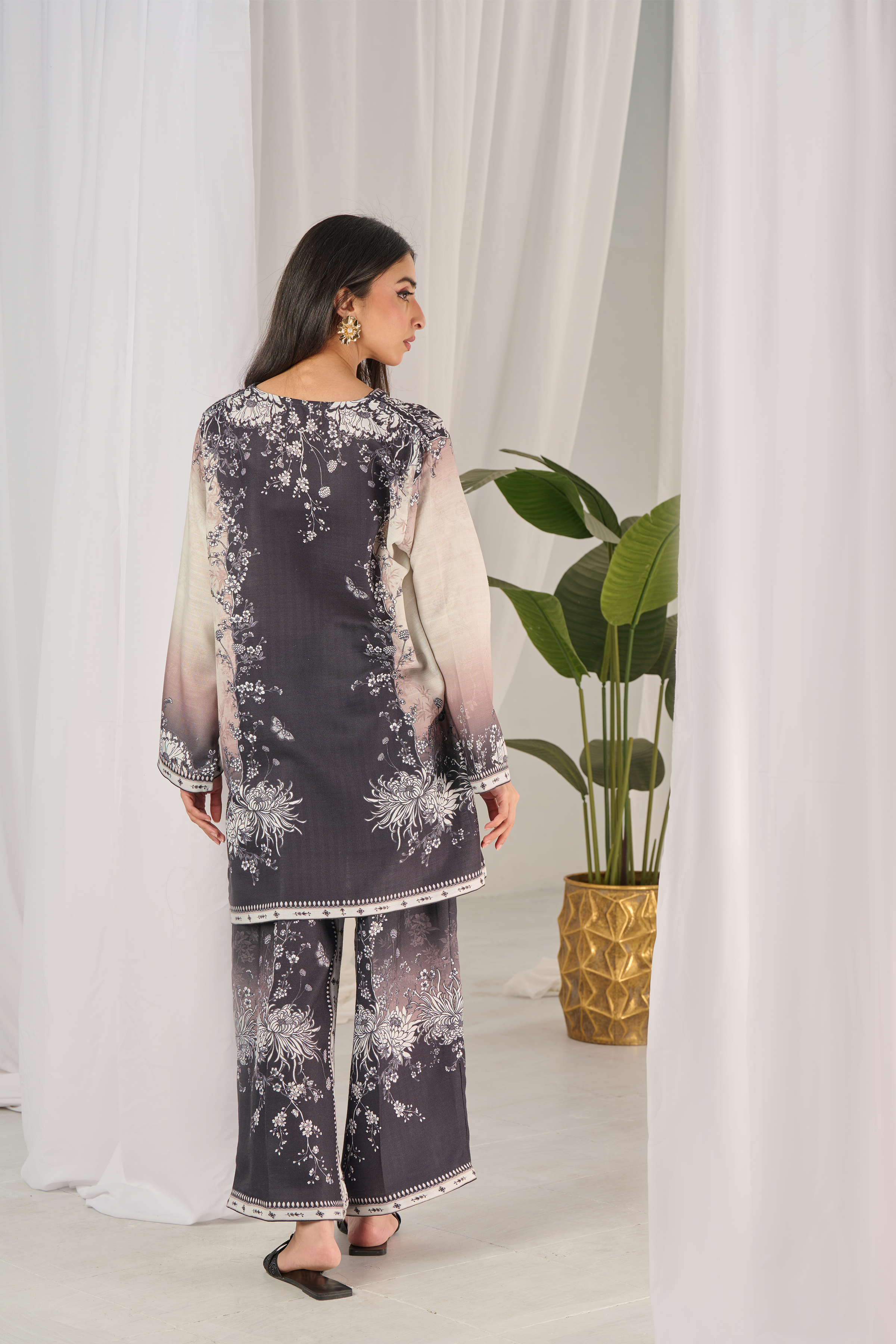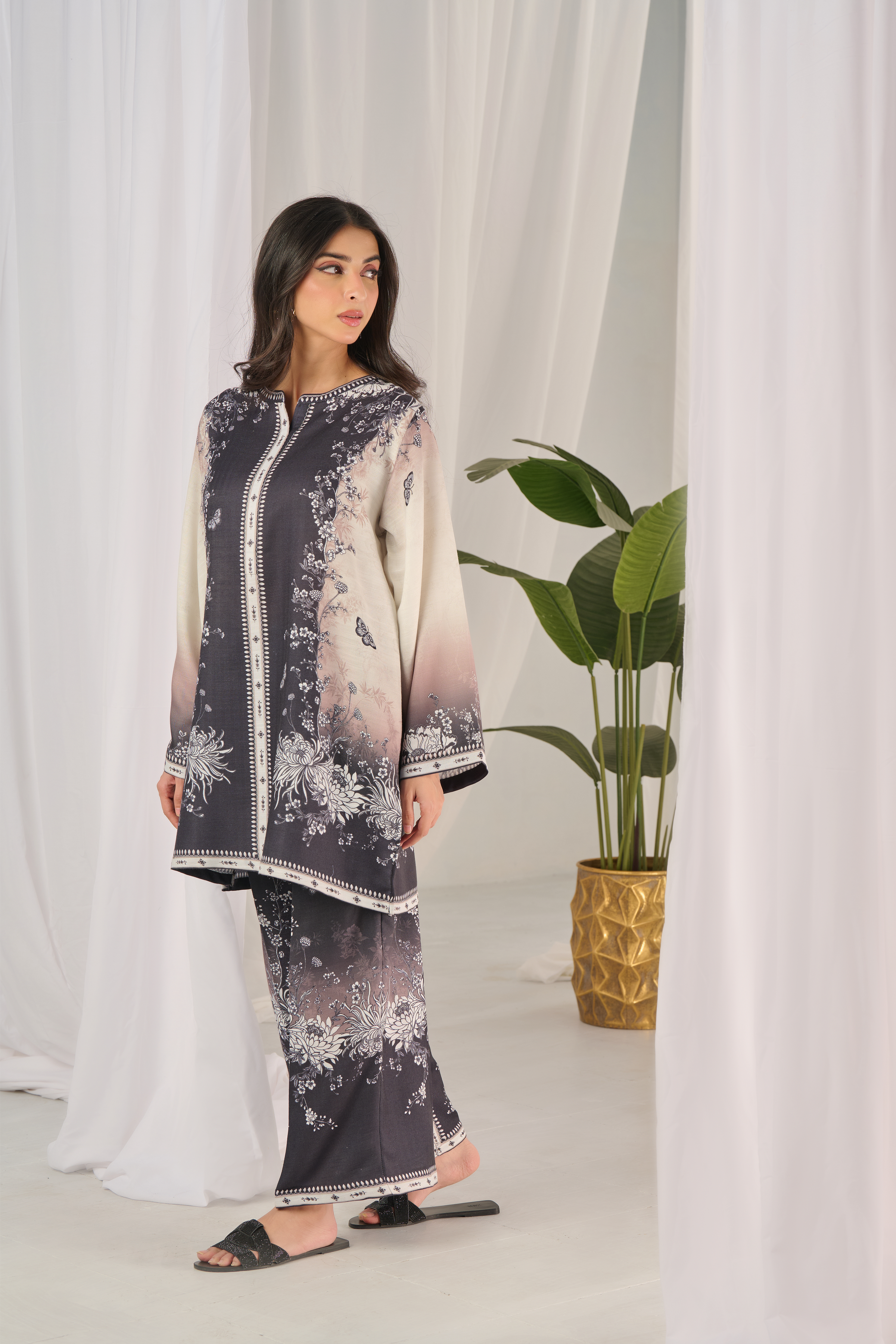Description: Drape yourself in Black and Ivory set– a classic outfit that speaks volumes in style.