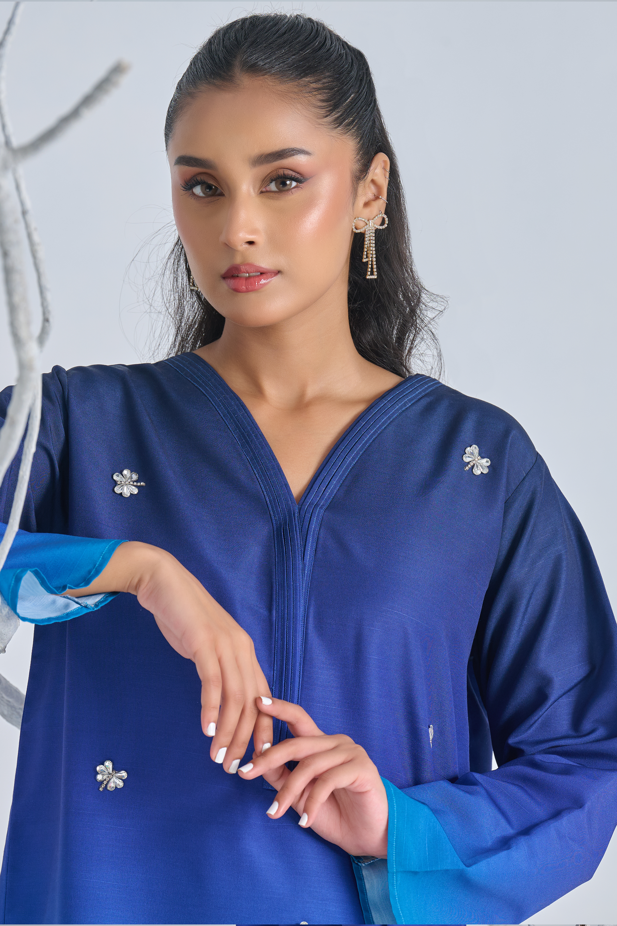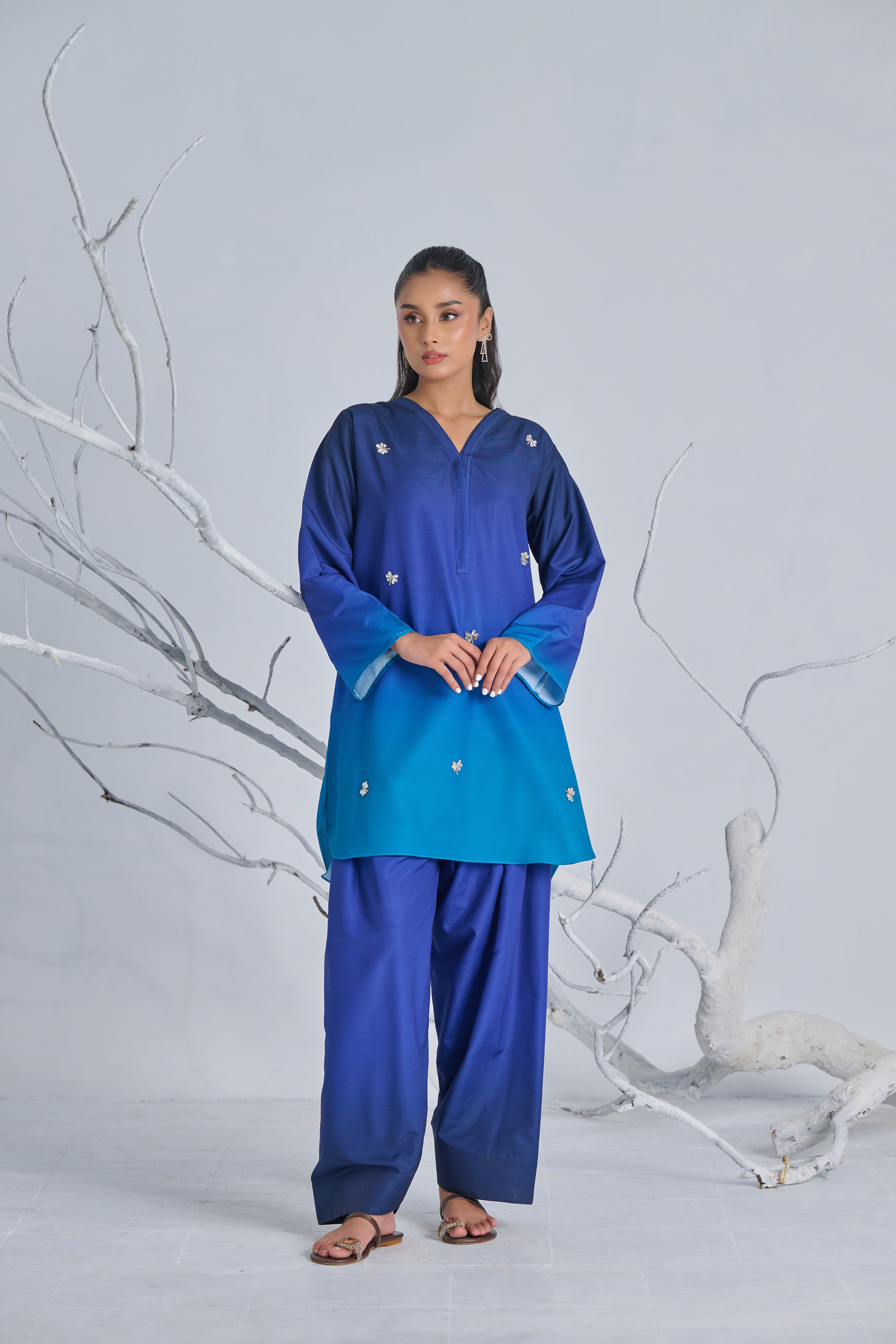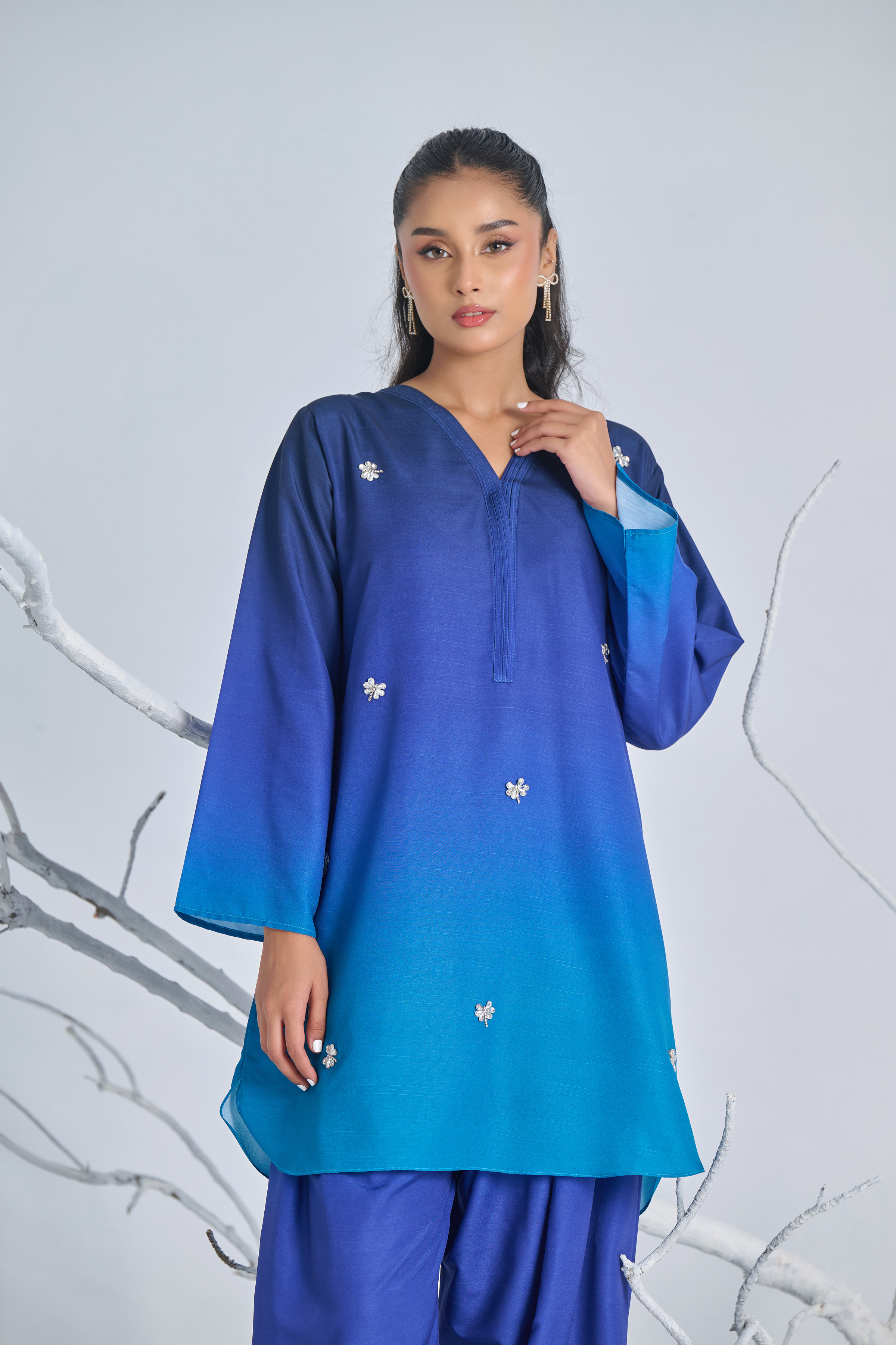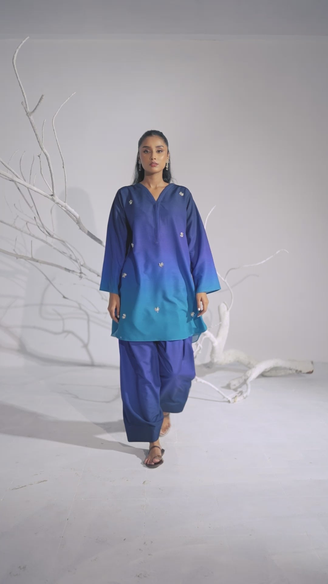 Description: Drape yourself in Blue and Turquoise Ombre set– a classic outfit that speaks volumes in style.