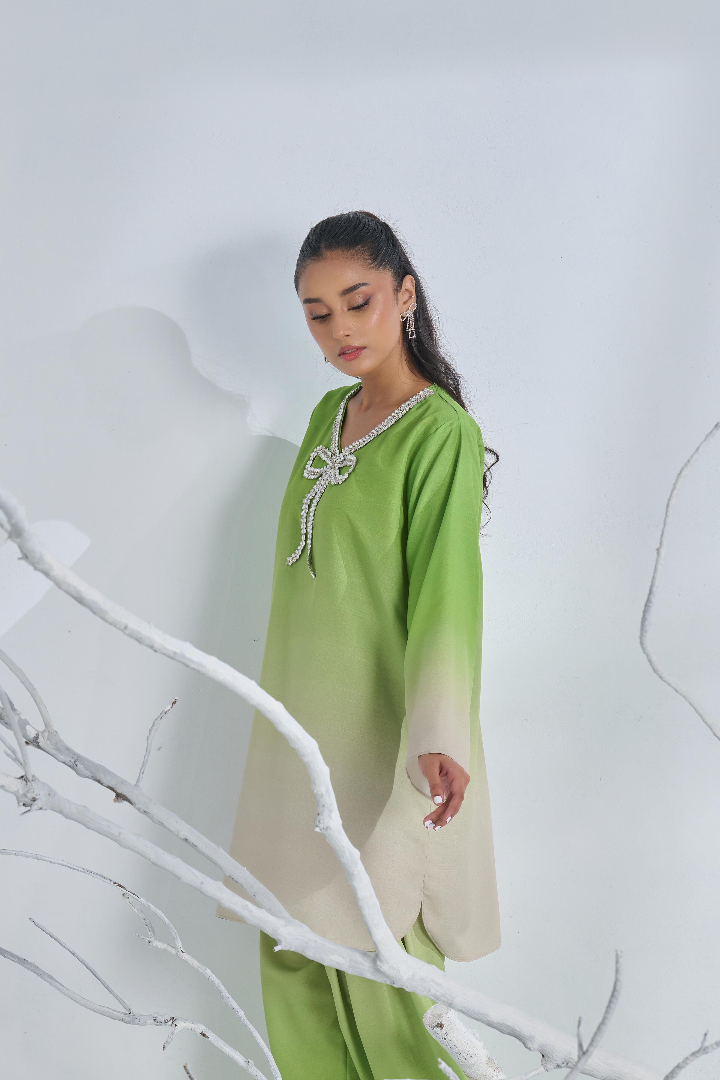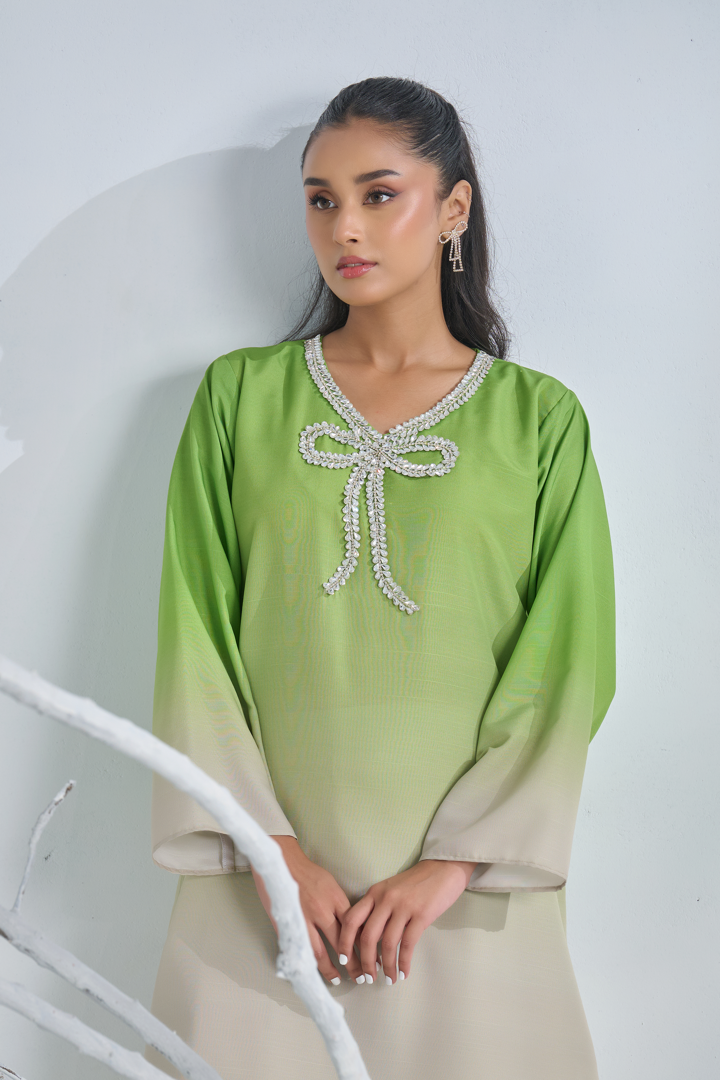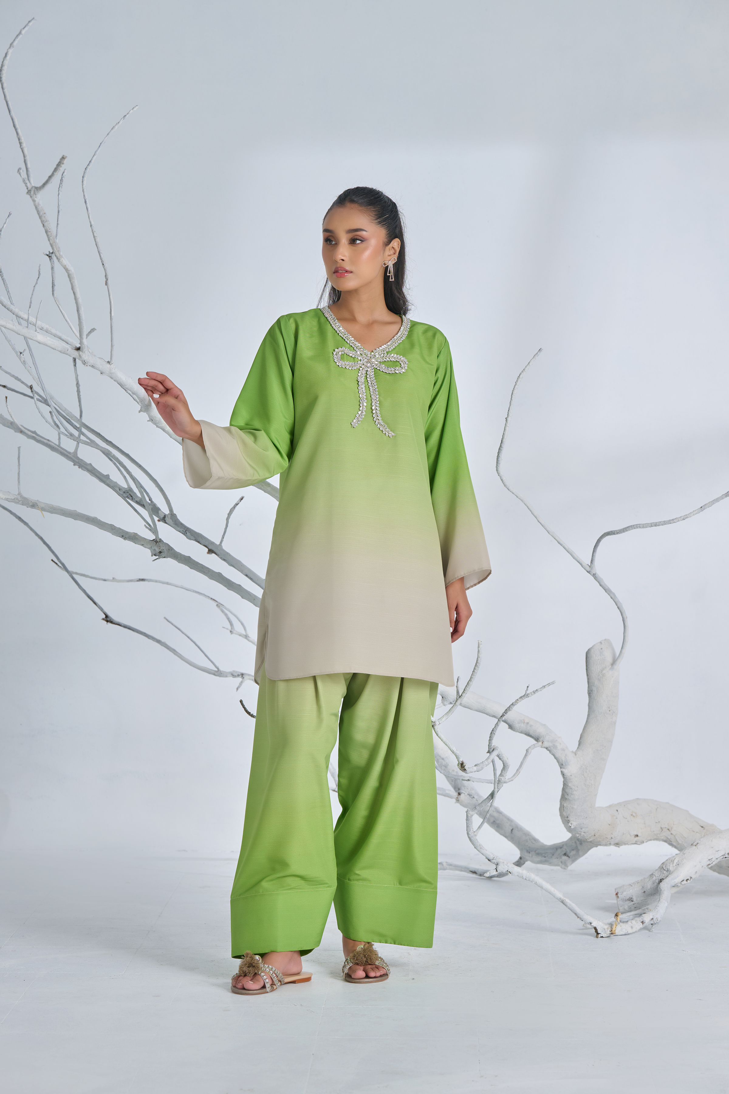 Description: Drape yourself in Pear Green Ombre set– a classic outfit that speaks volumes in style.