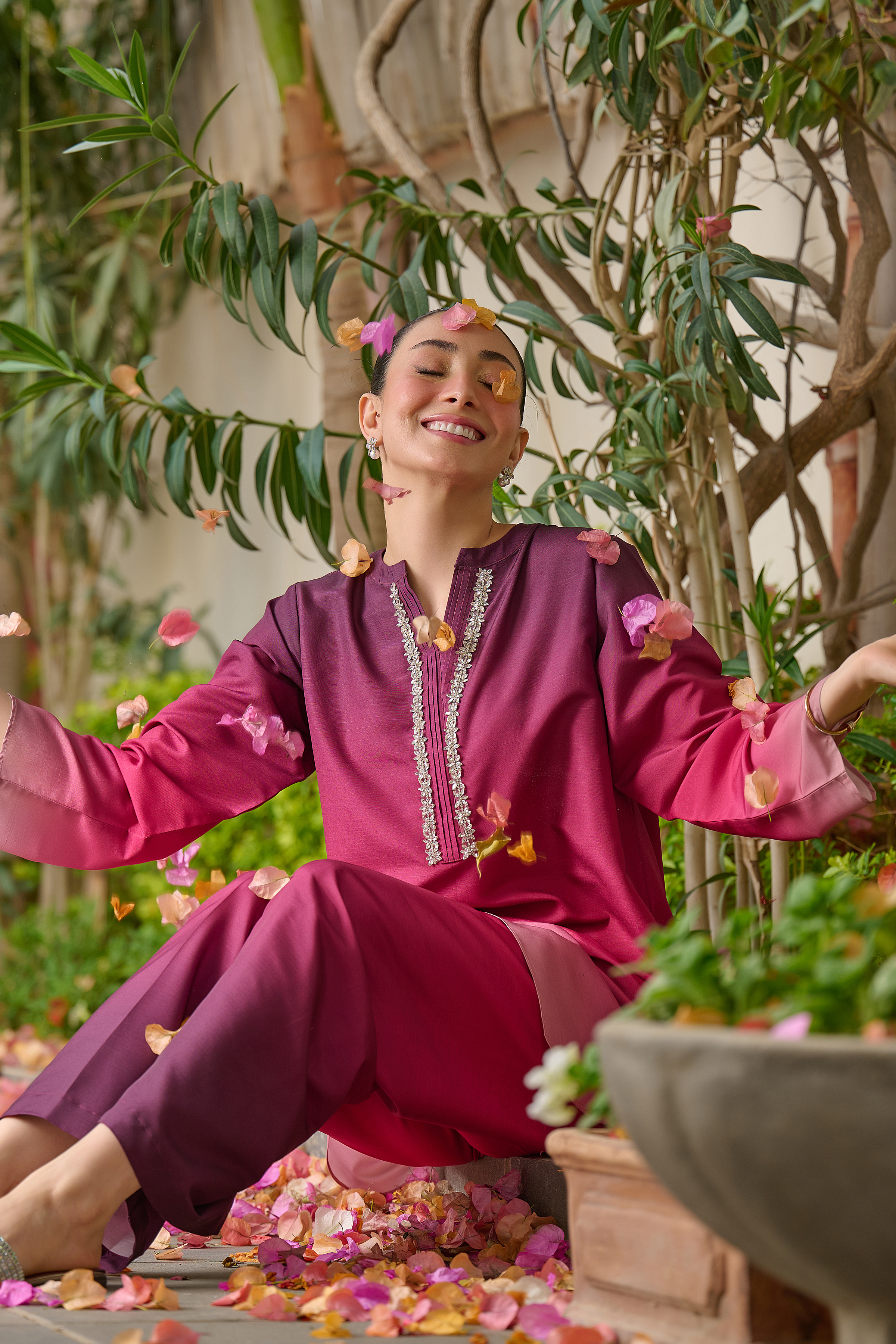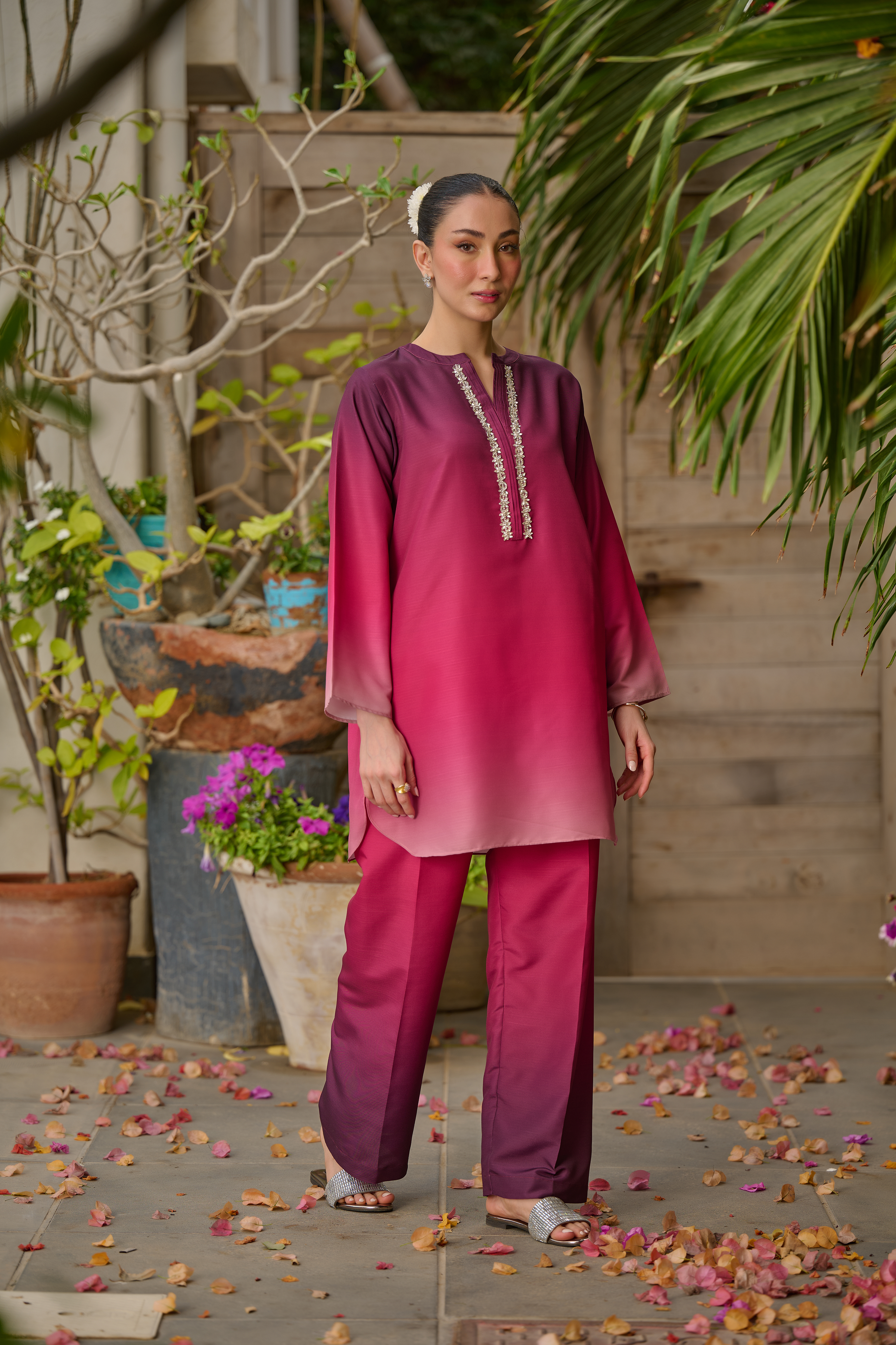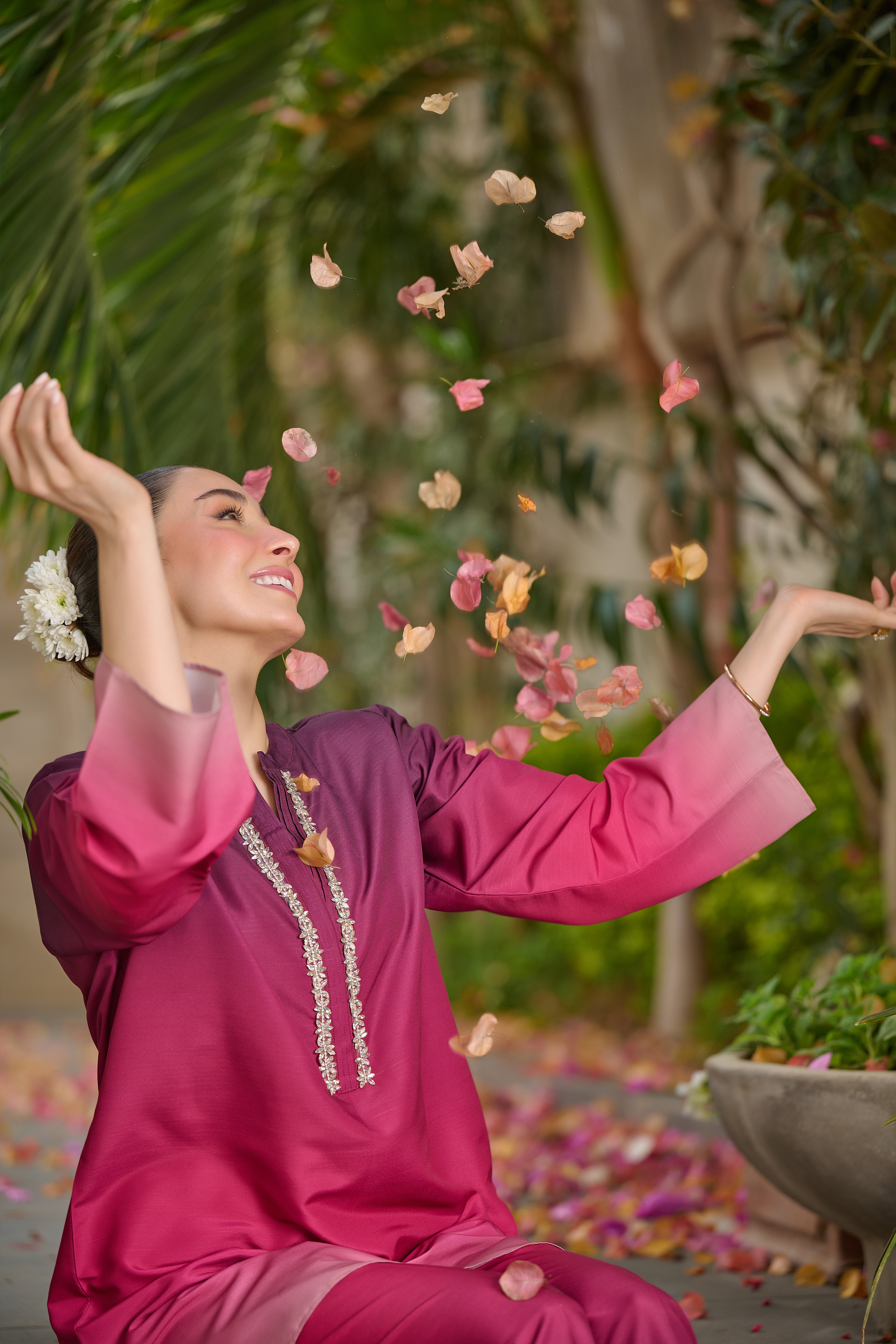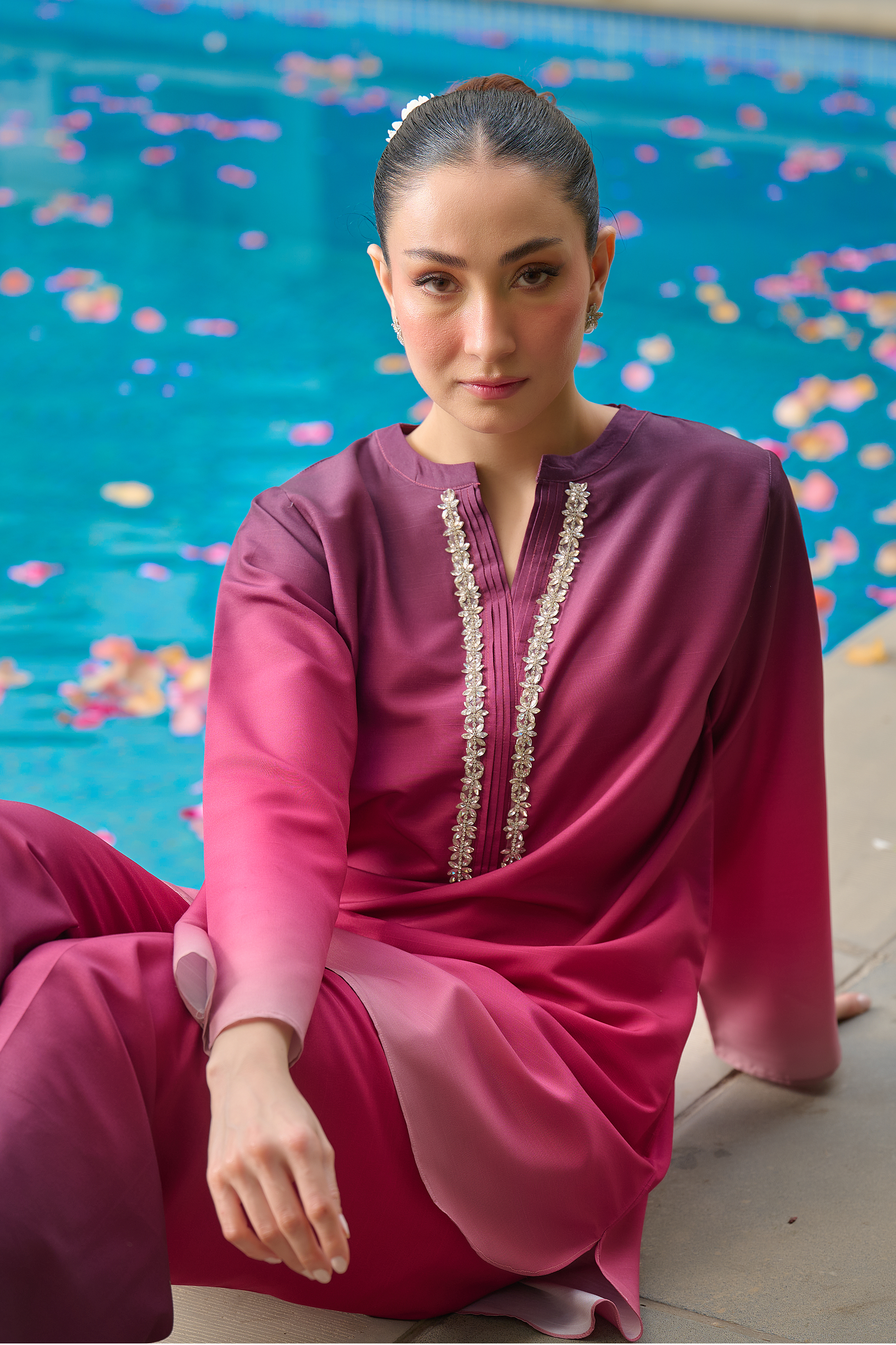 Description: Drape yourself in Hot Pink Ombre set– a classic outfit that speaks volumes in style.