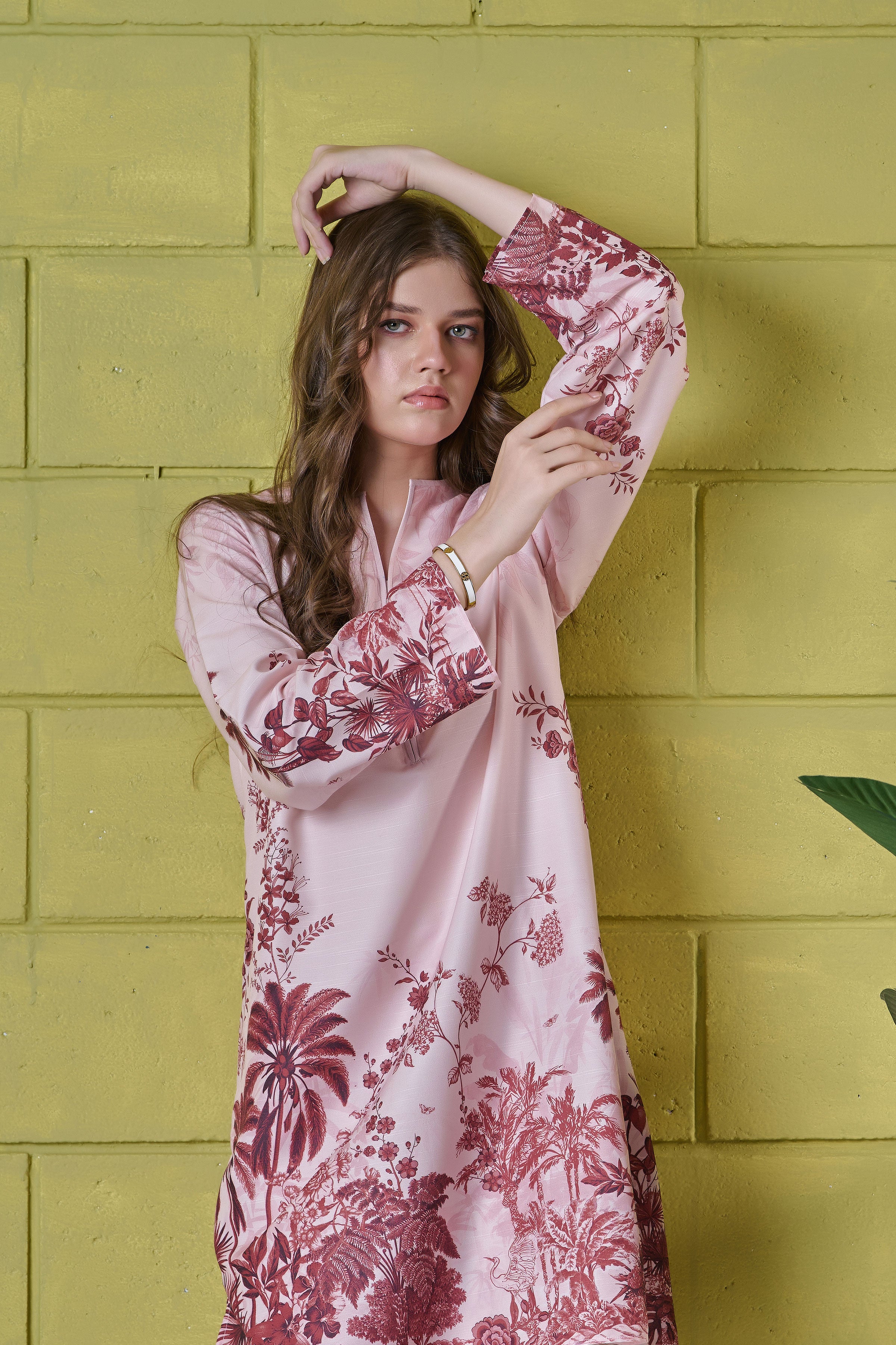 Color: Light pink with multi pastel flowers.