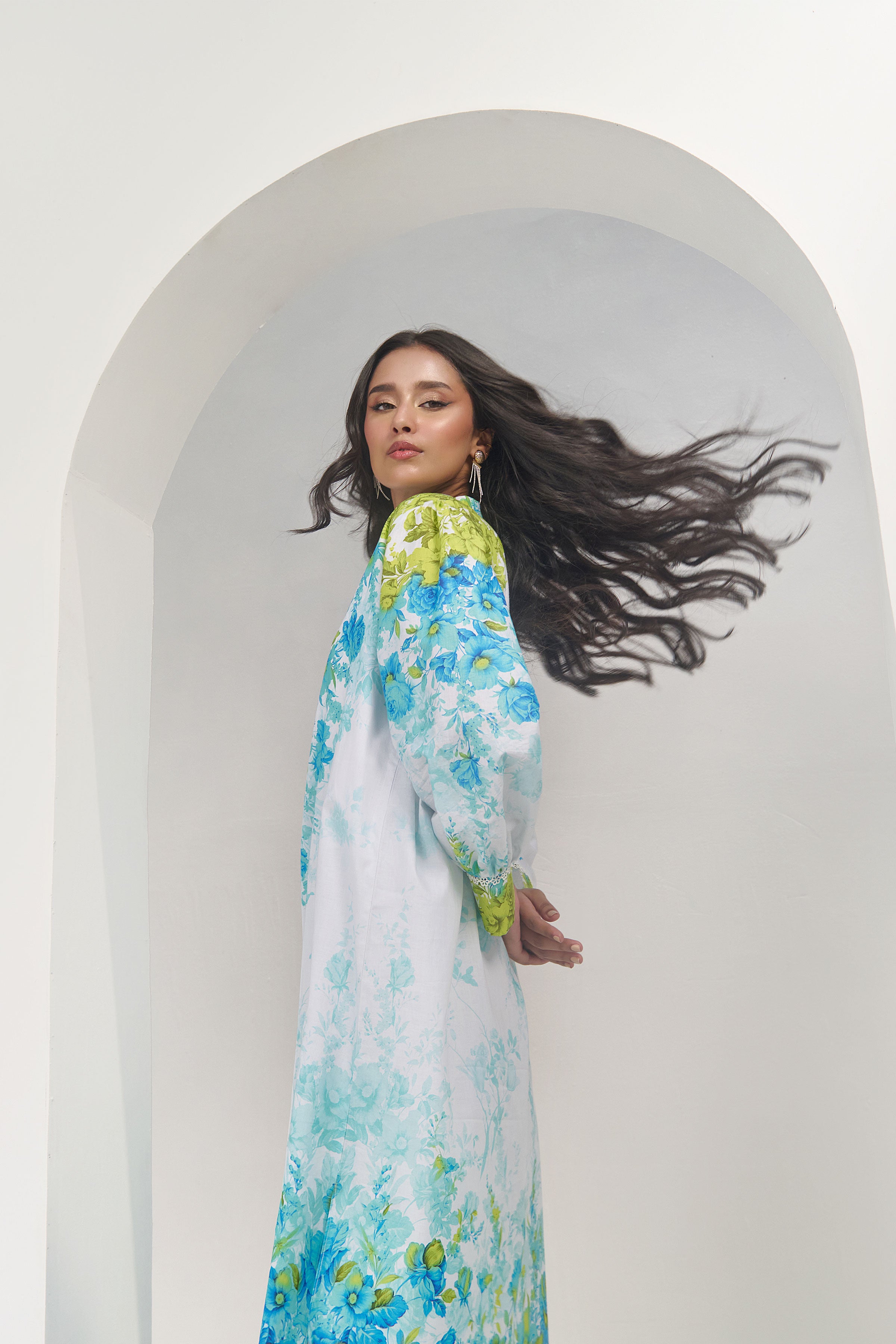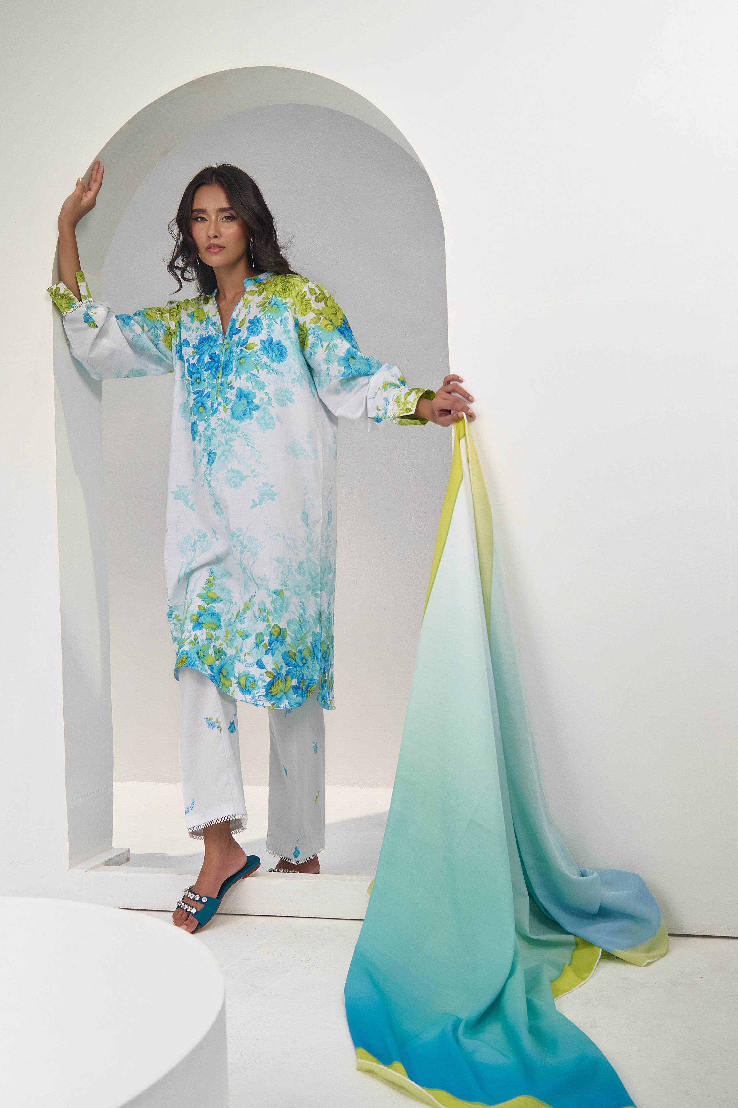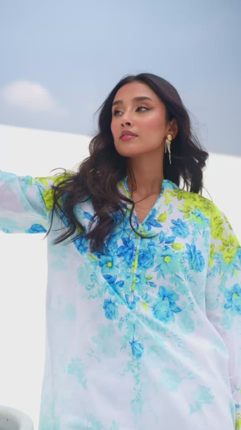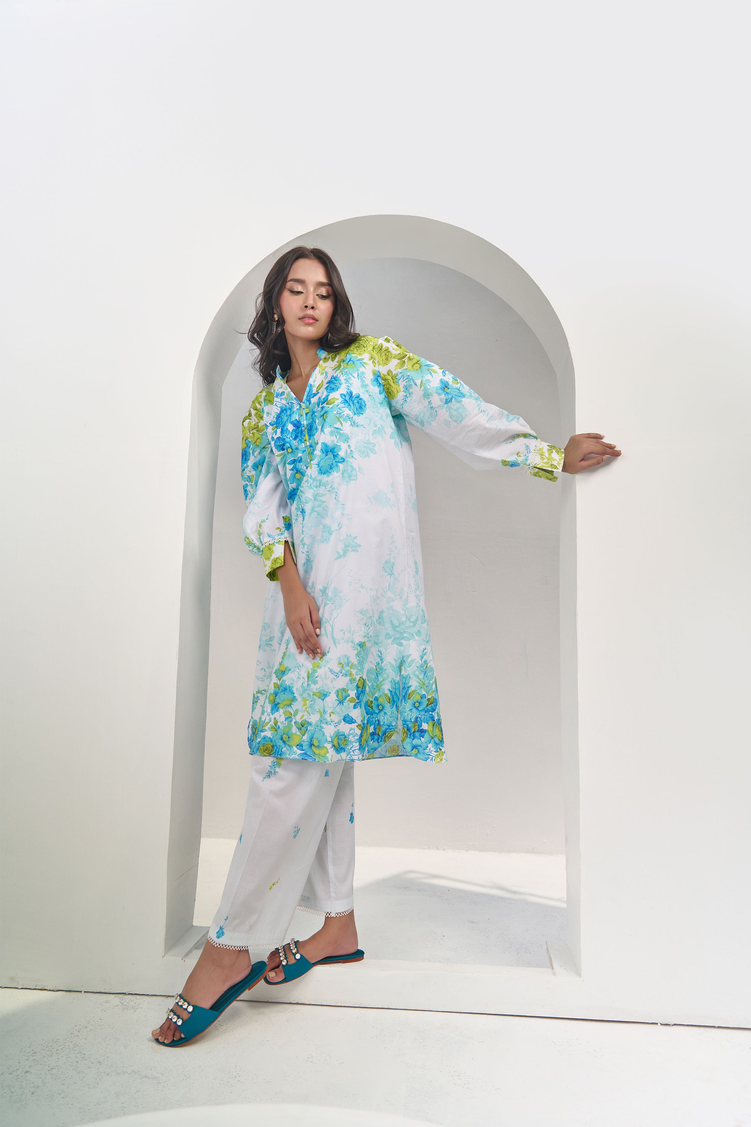Description: Drape yourself in White and Cyan cord set – a classic outfit that speaks volumes in style