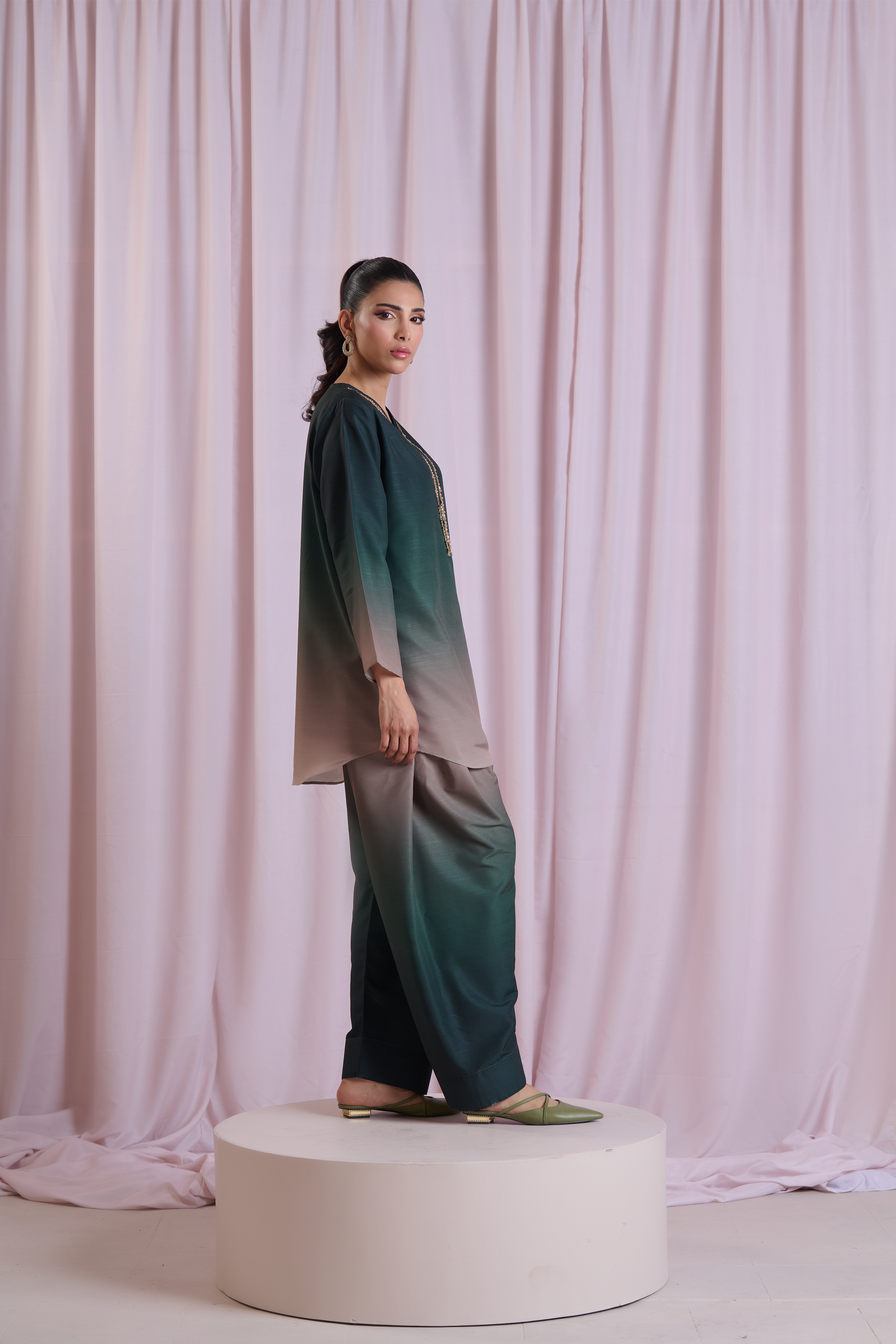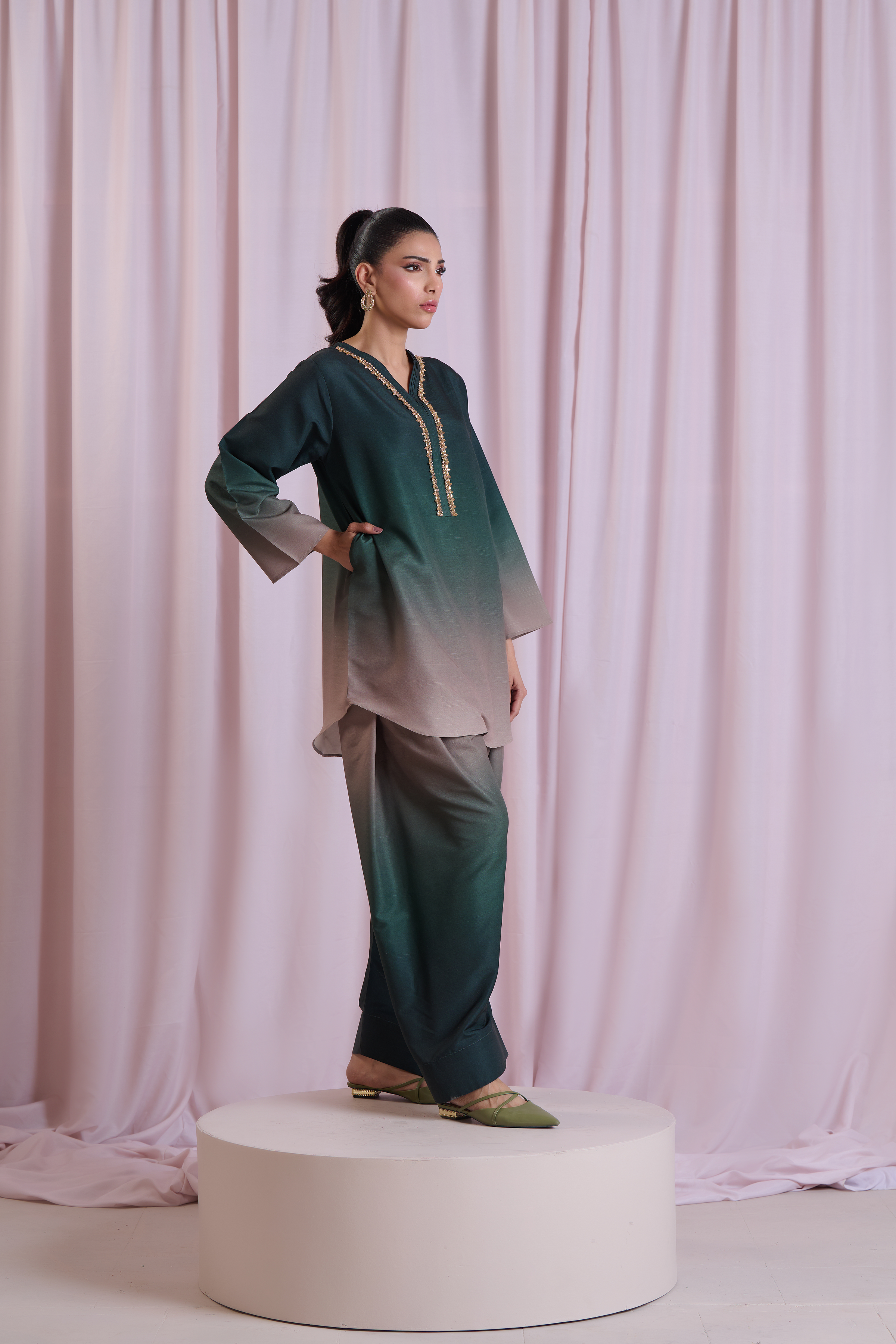 Description: Drape yourself in Emerald Green set– a classic outfit that speaks volumes in style