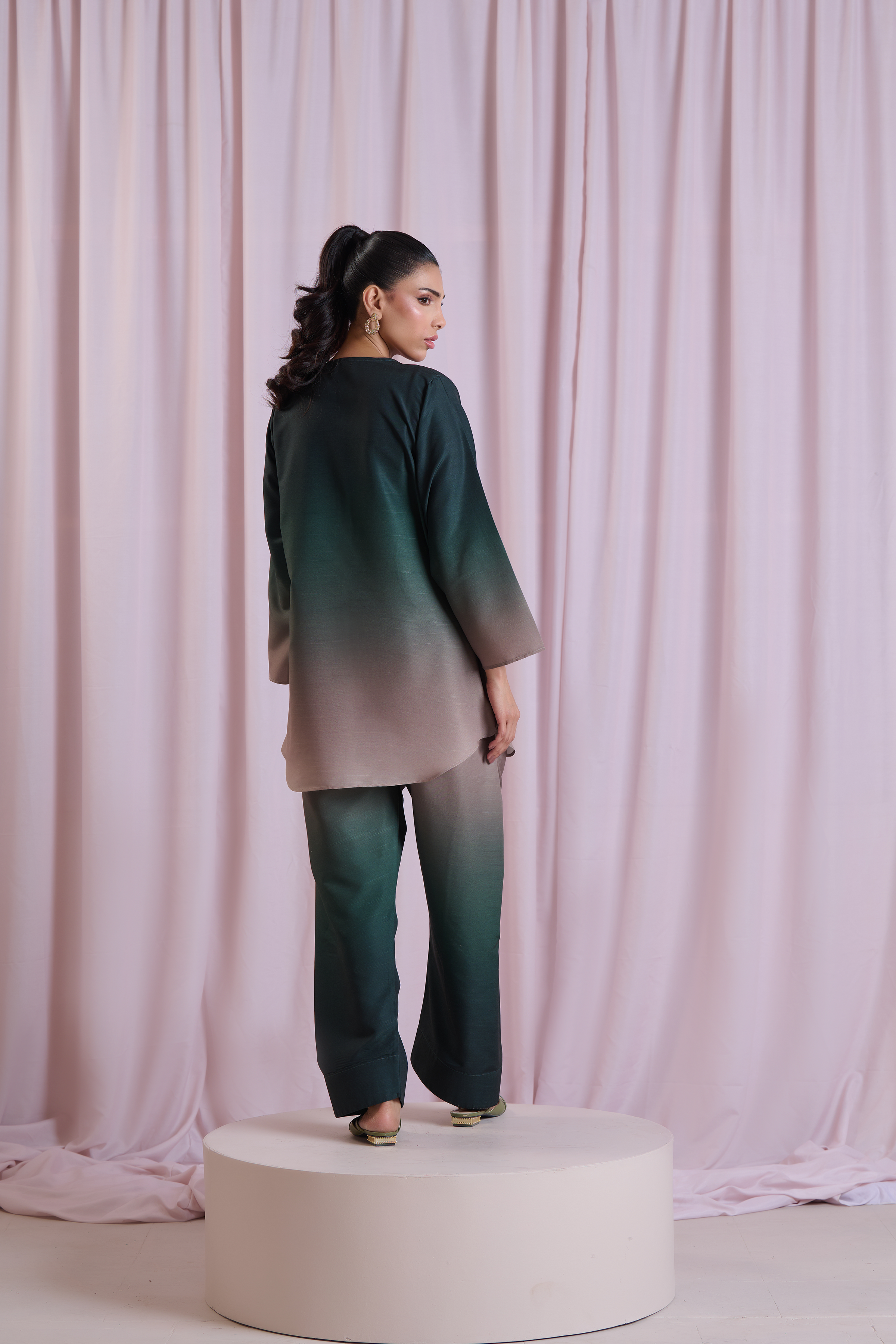 Color: Emerald Green and Beige ombre.