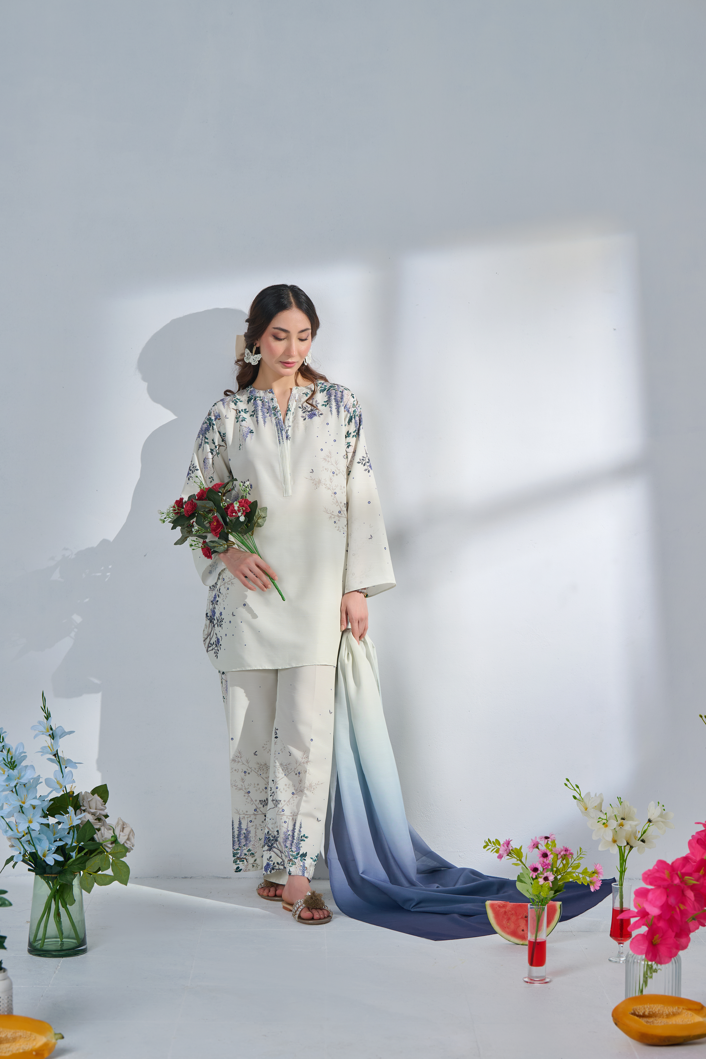 Description: Drape yourself in Ivory and Blue set– a classic outfit that speaks volumes in style.