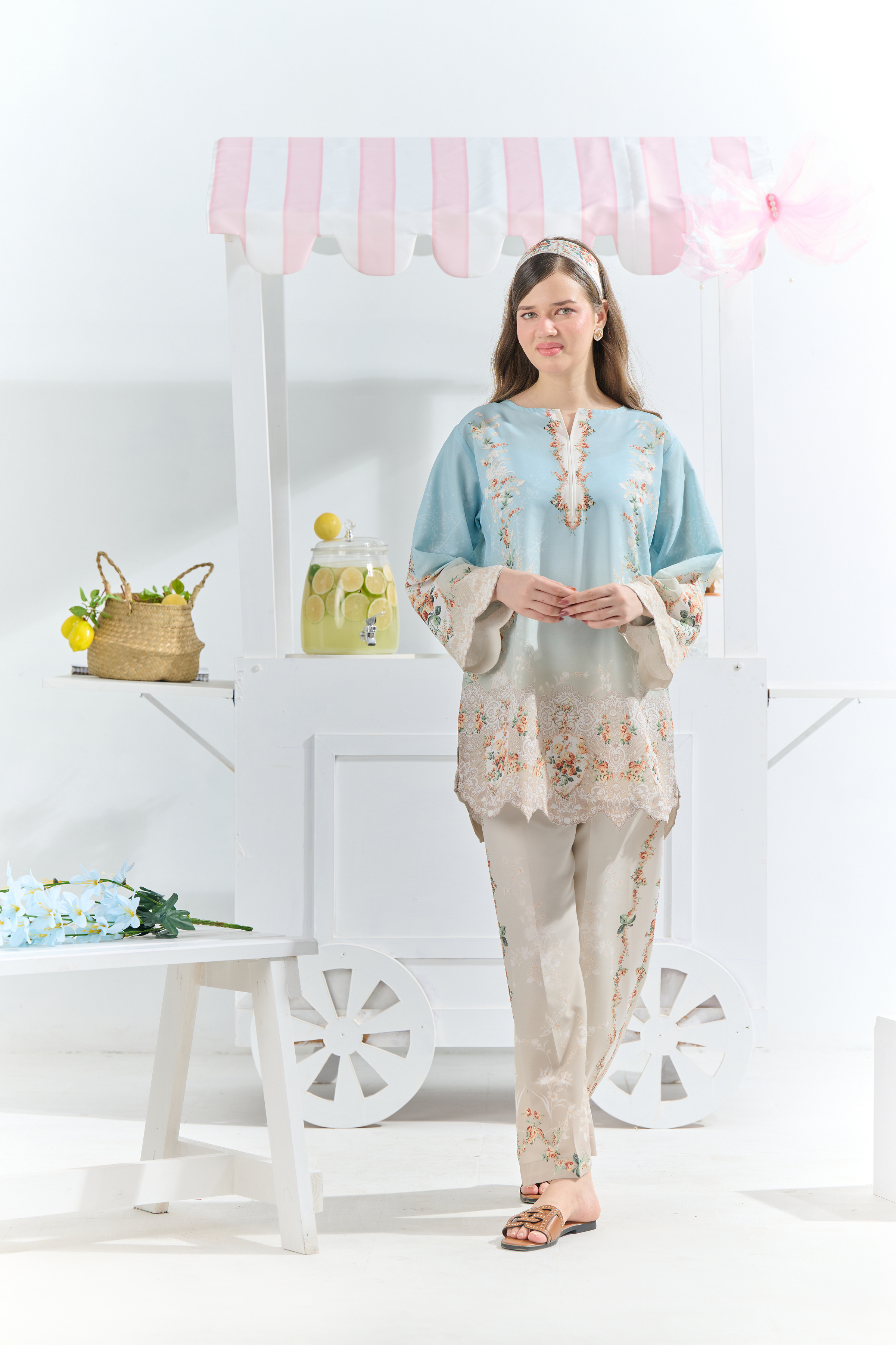 Description: Drape yourself in Sky Blue and Ivory set– a classic outfit that speaks volumes in style.
