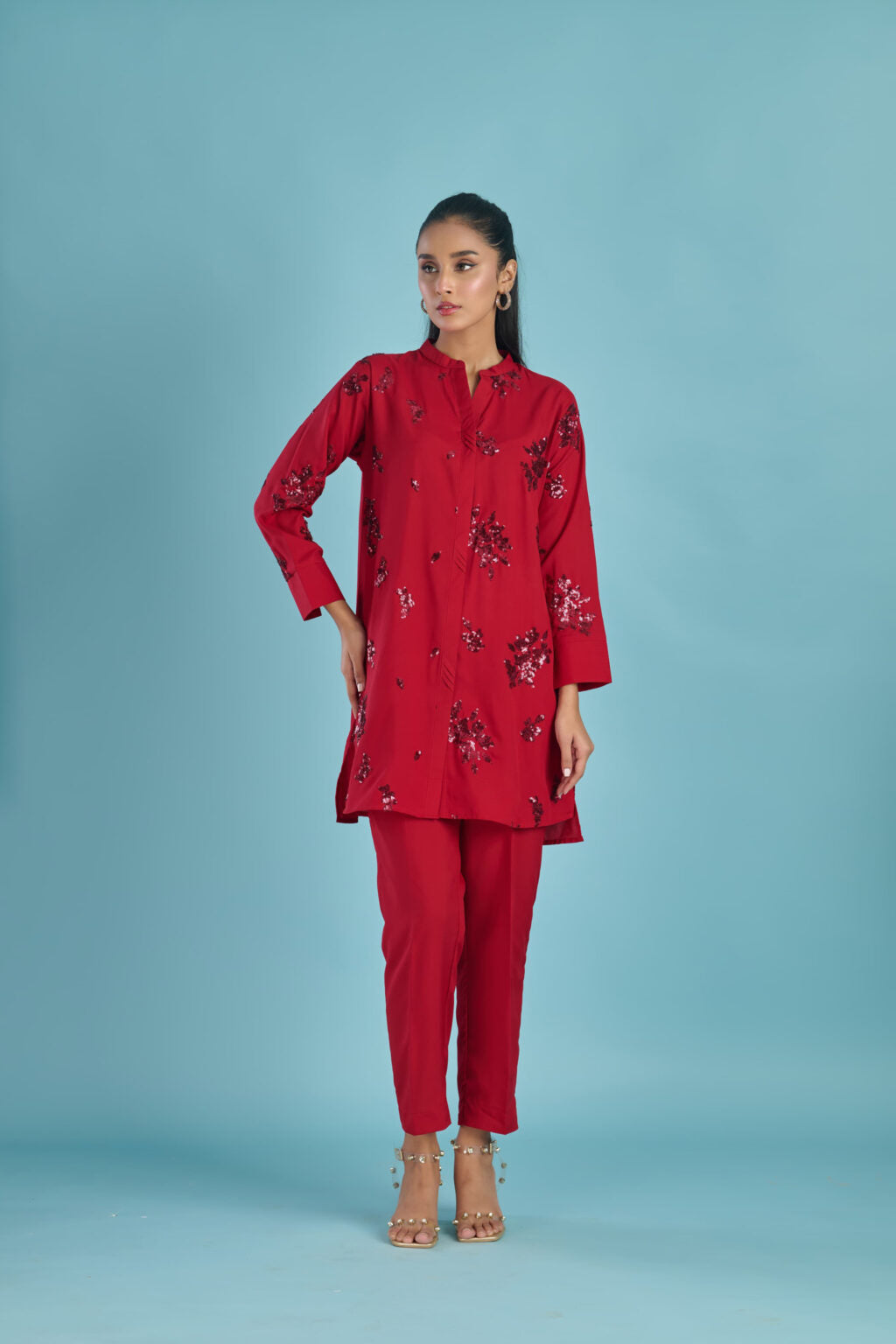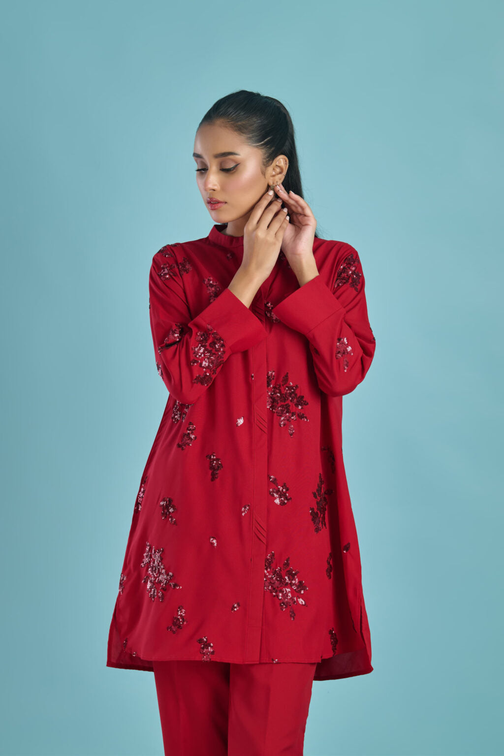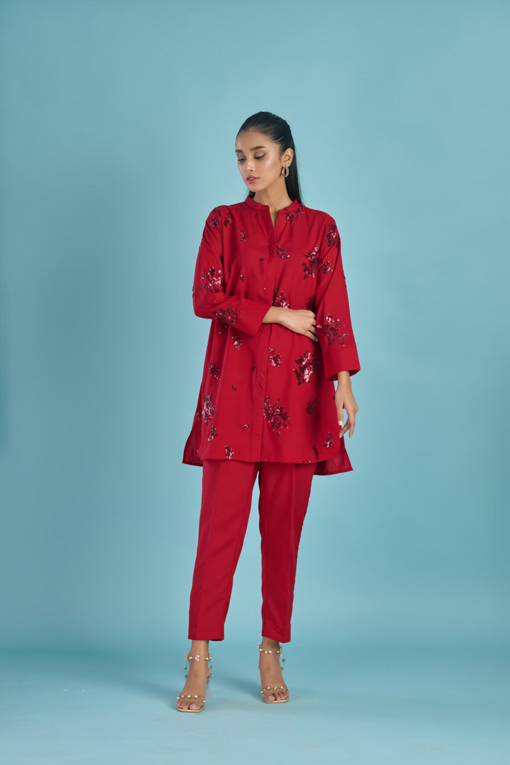 Color: red with sequence embroidery.