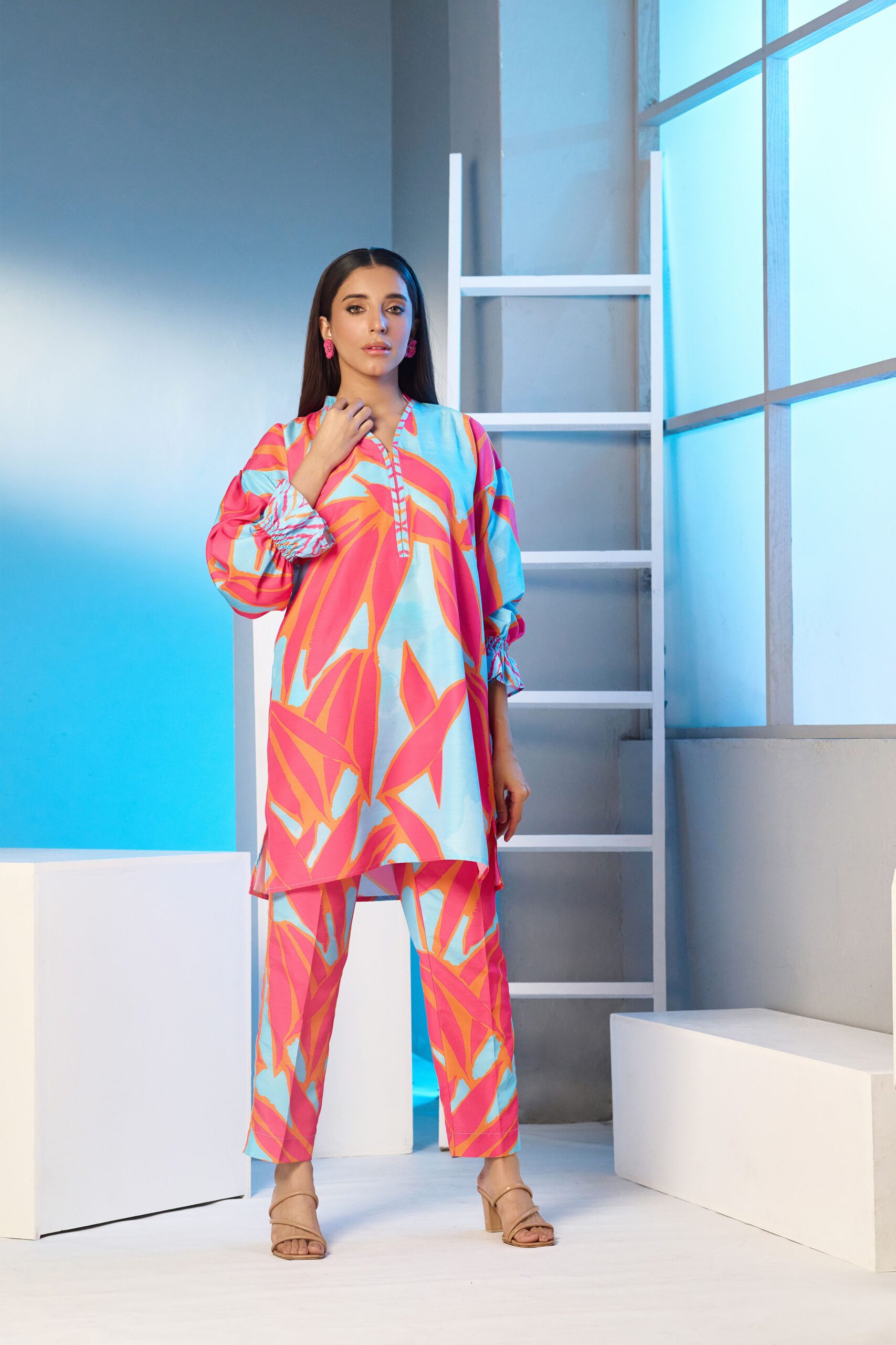 Drape yourself in sky blue and pink cord set – a classic outfit that speaks volumes in style.