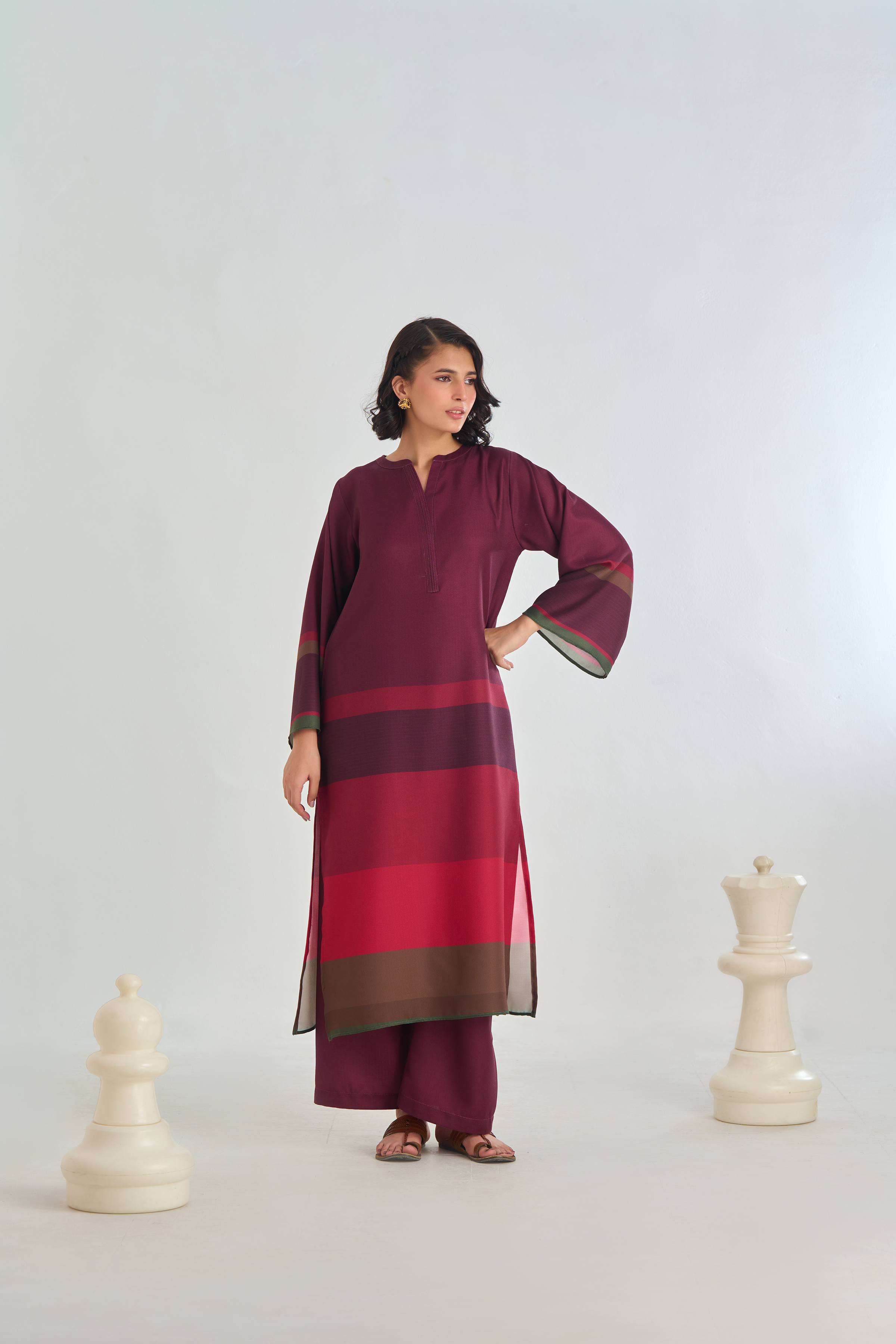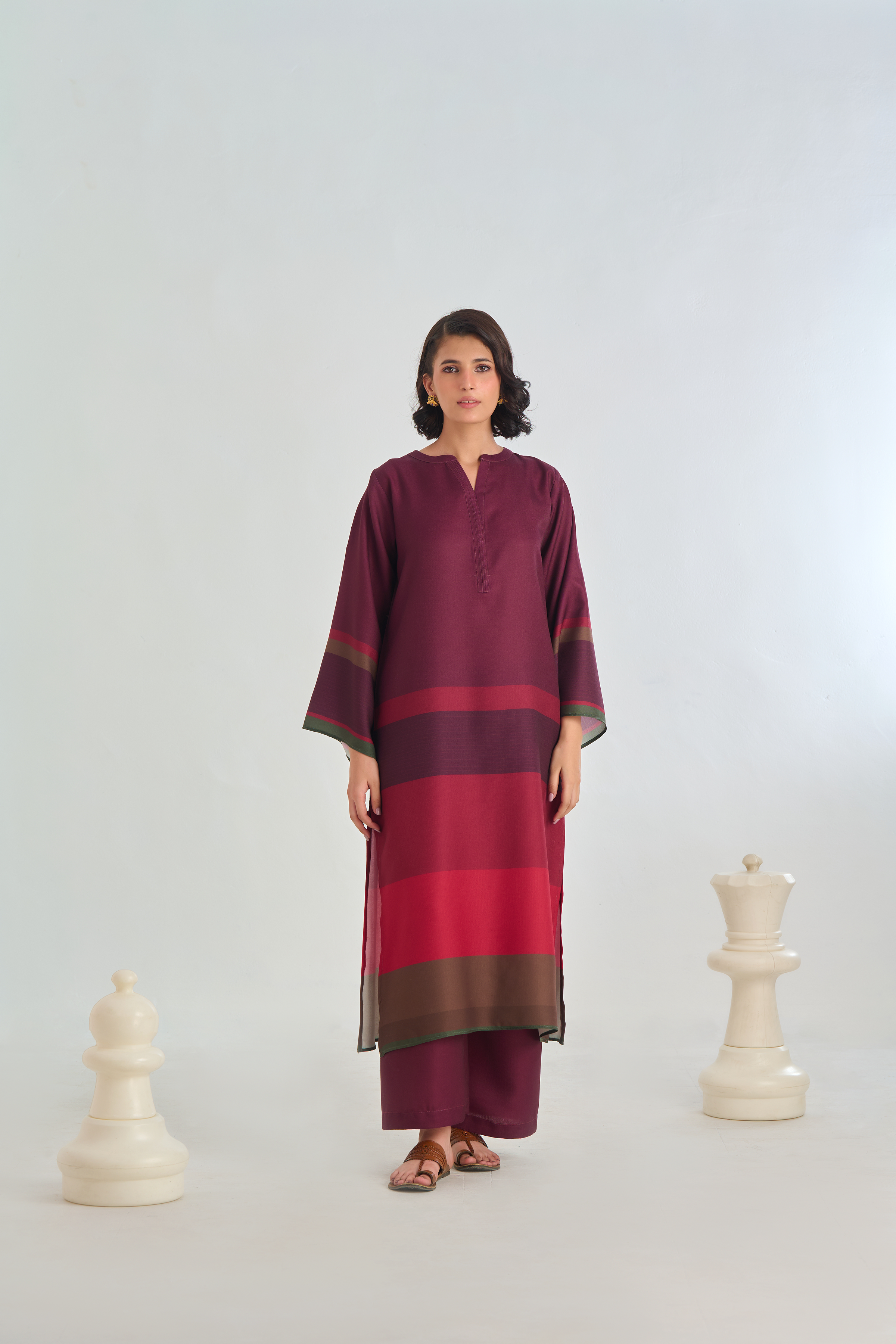Description:  Drape yourself in Maroon and Red solid set– a classic outfit that speaks volumes in style