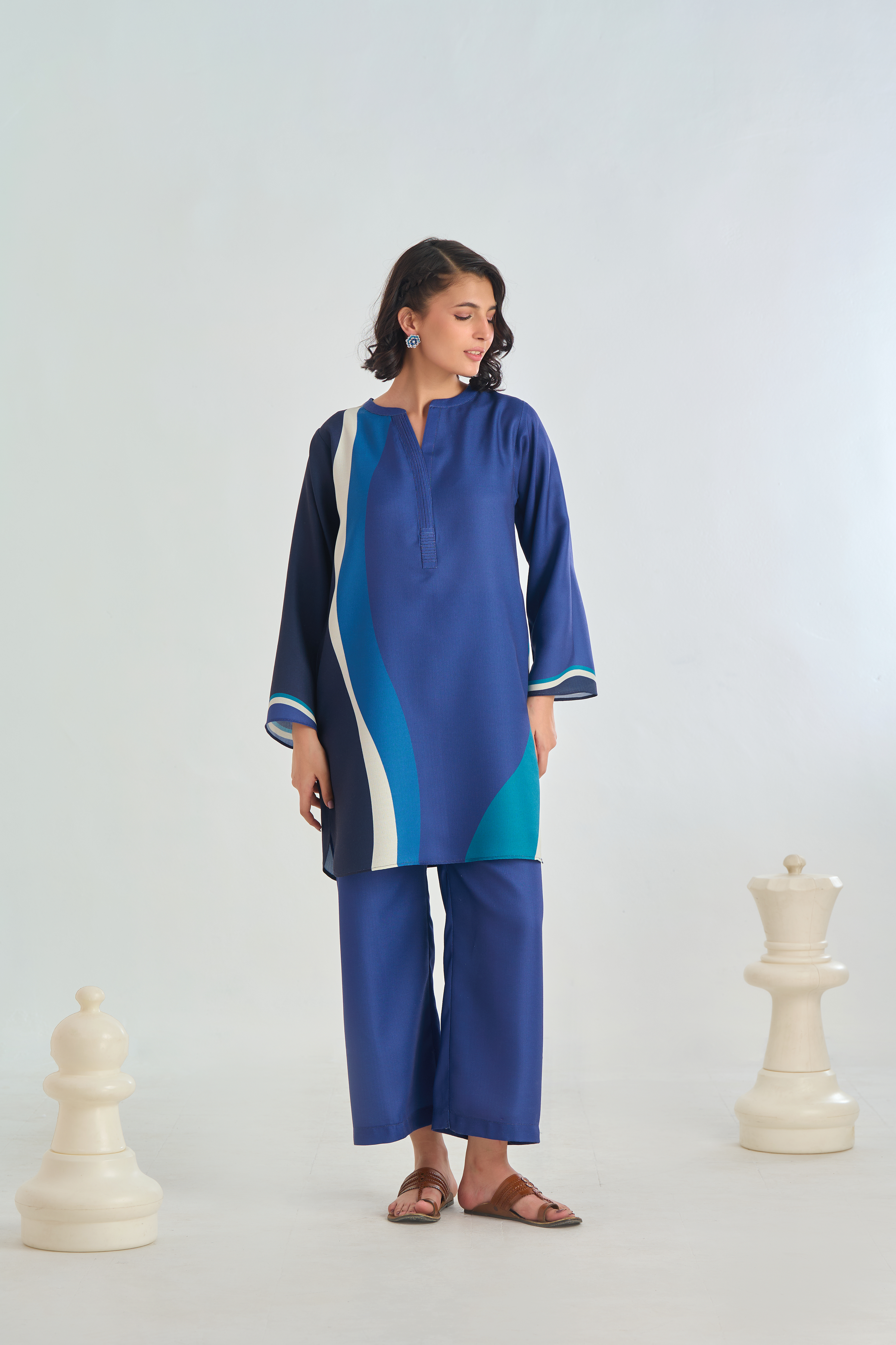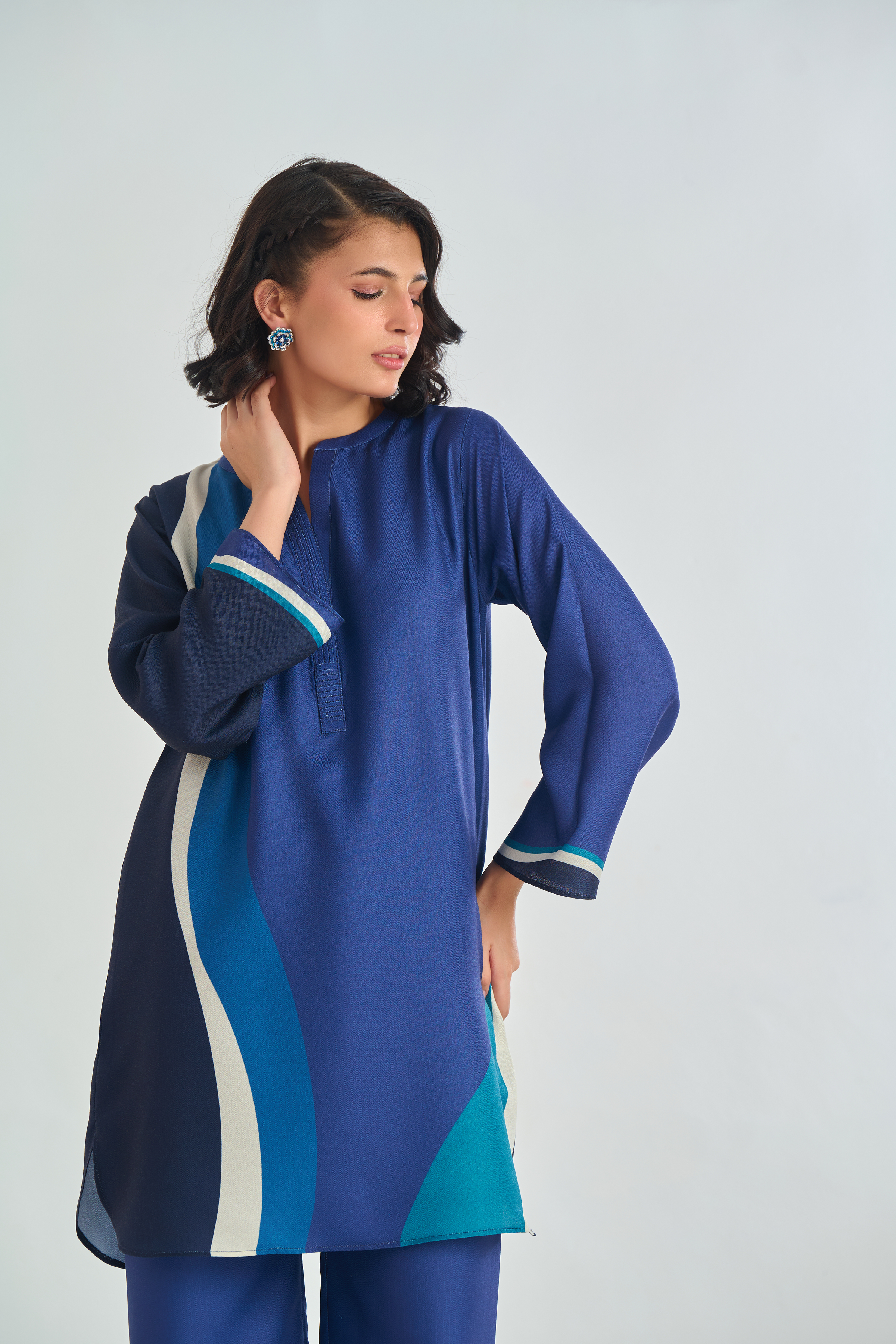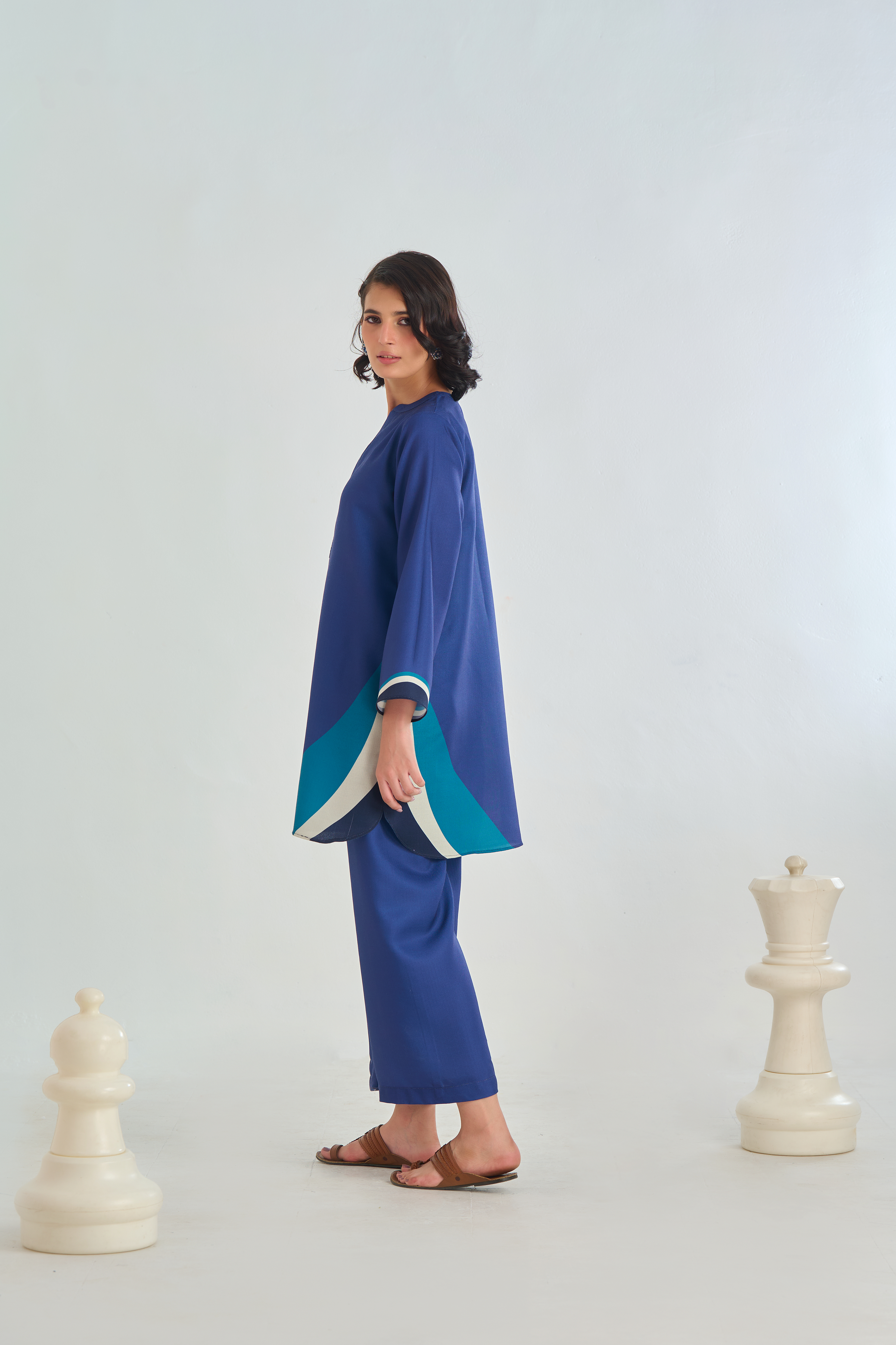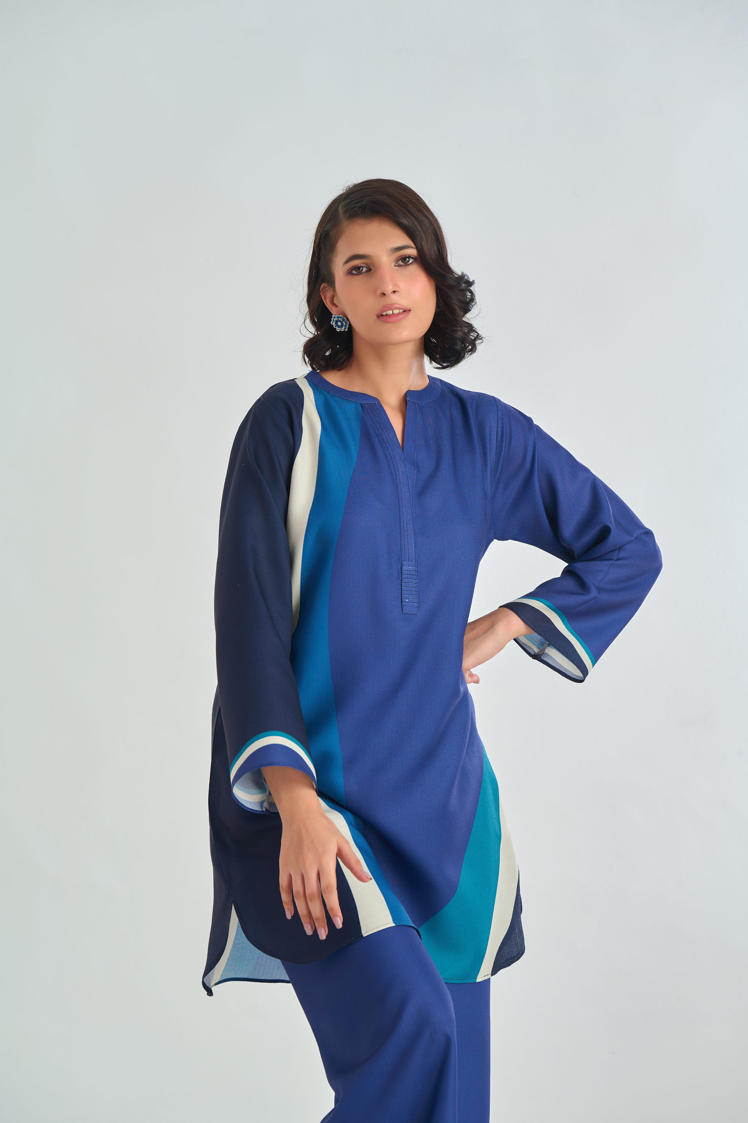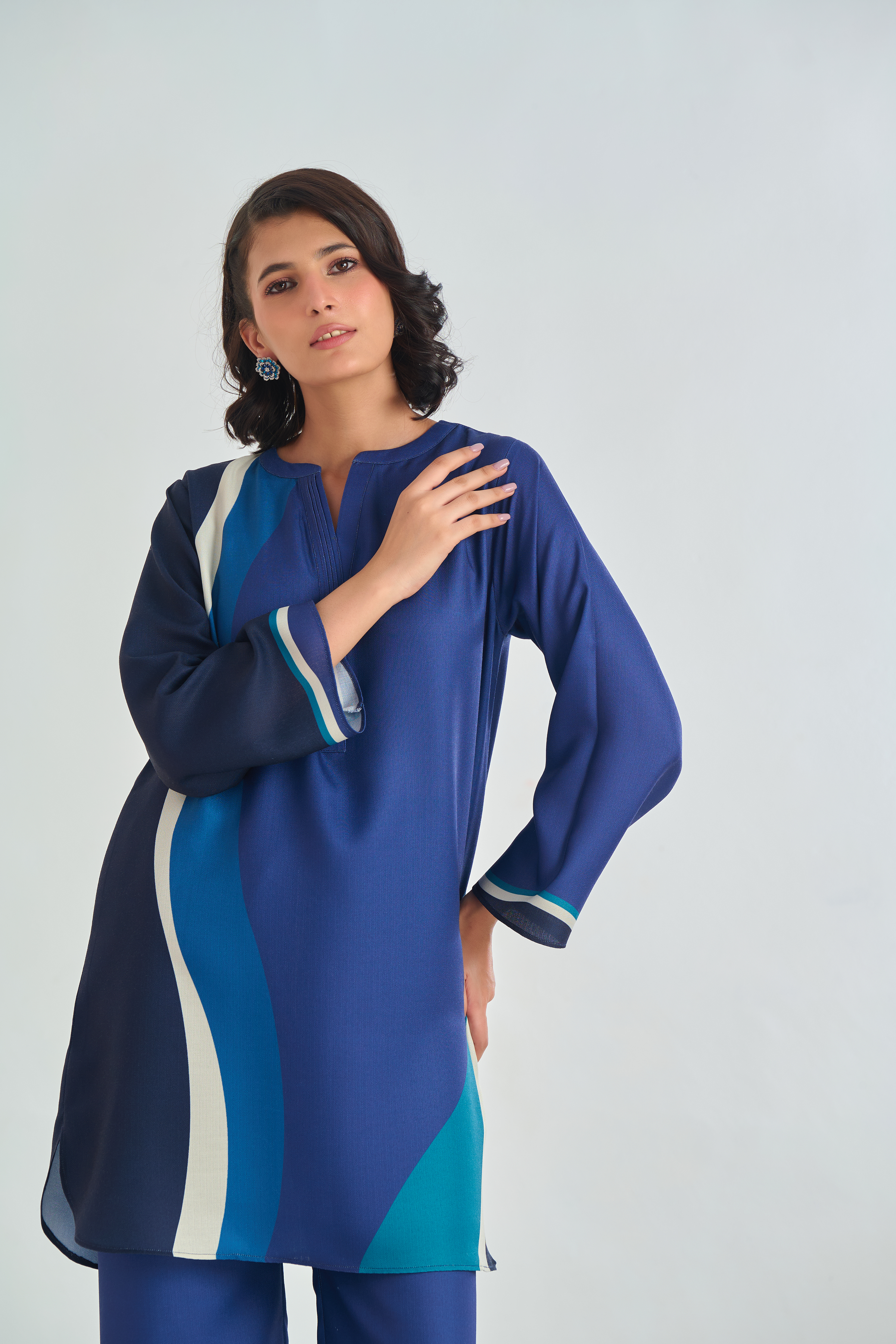 Description: Drape yourself in Blue solid set– a classic outfit that speaks volumes in style