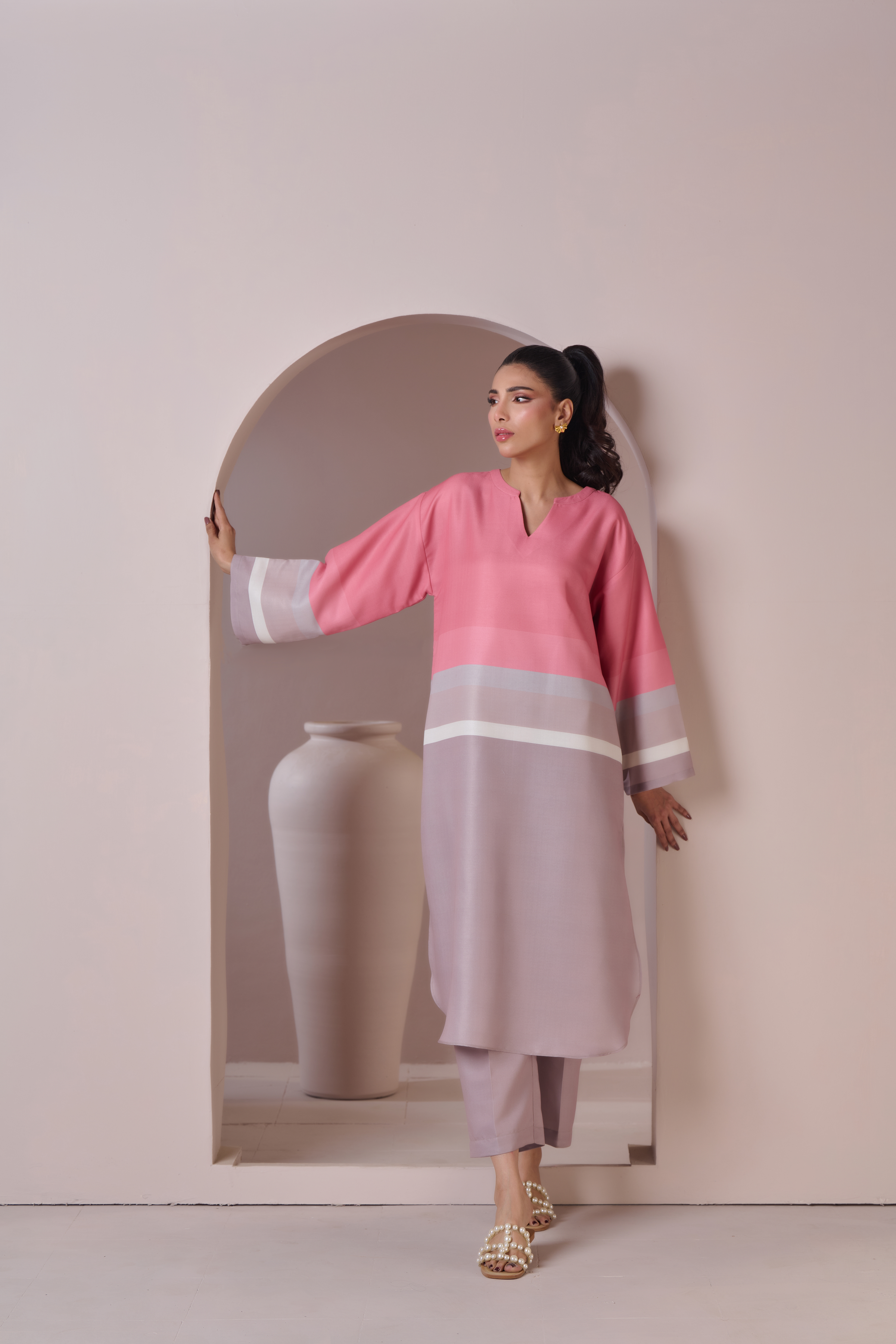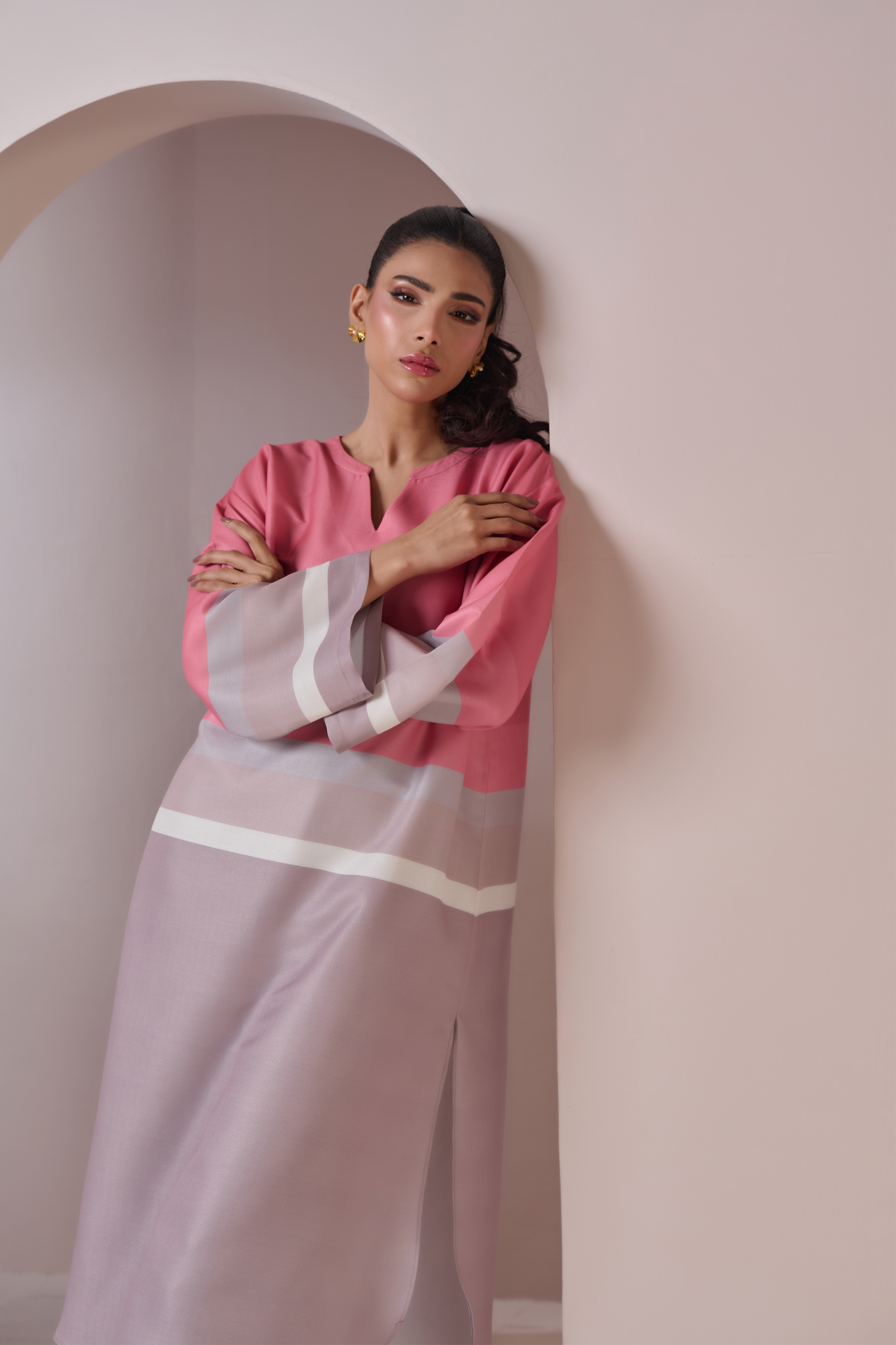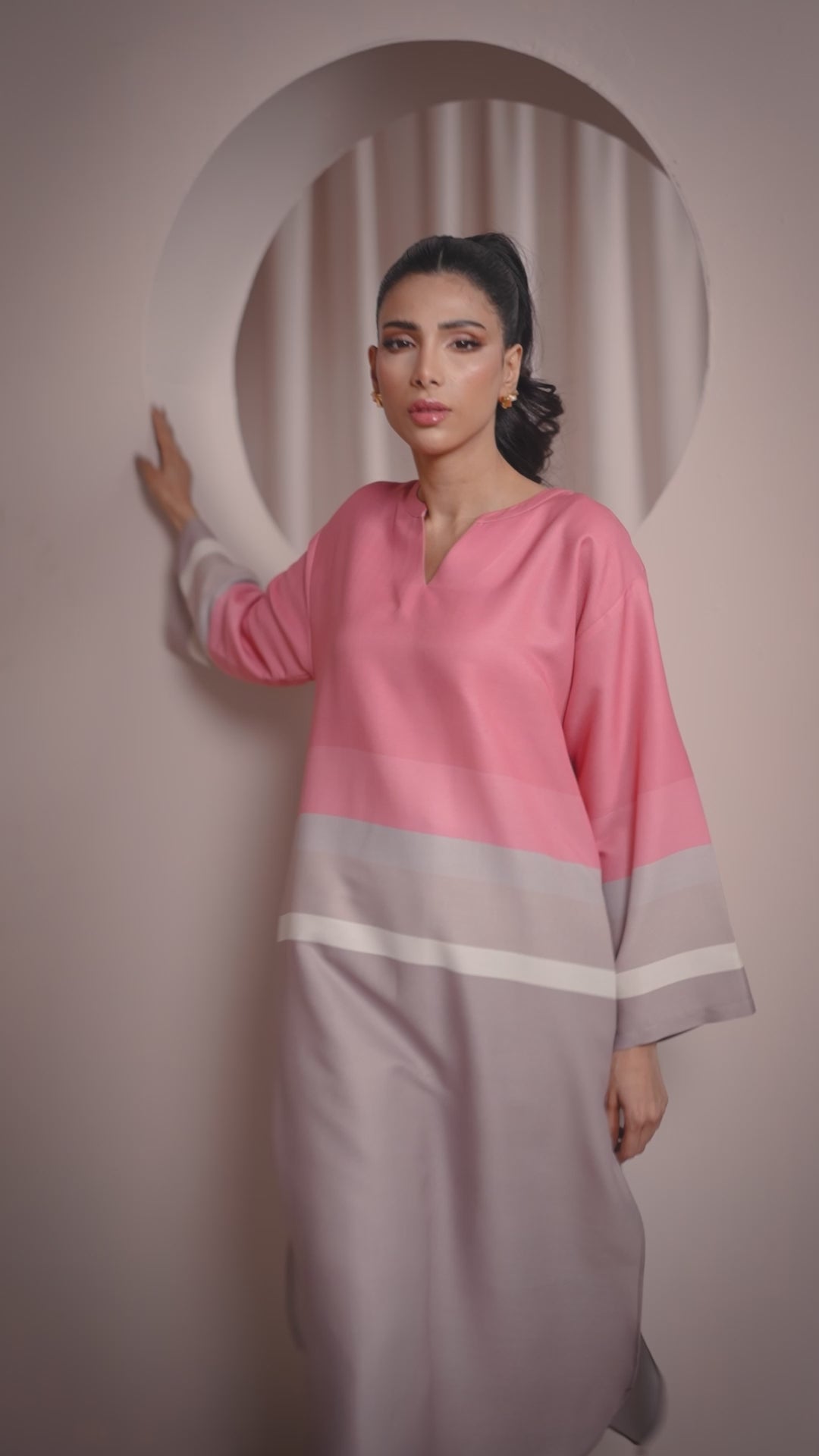 Description: Drape yourself in Salmon Pink and Beige set– a classic outfit that speaks volumes in style