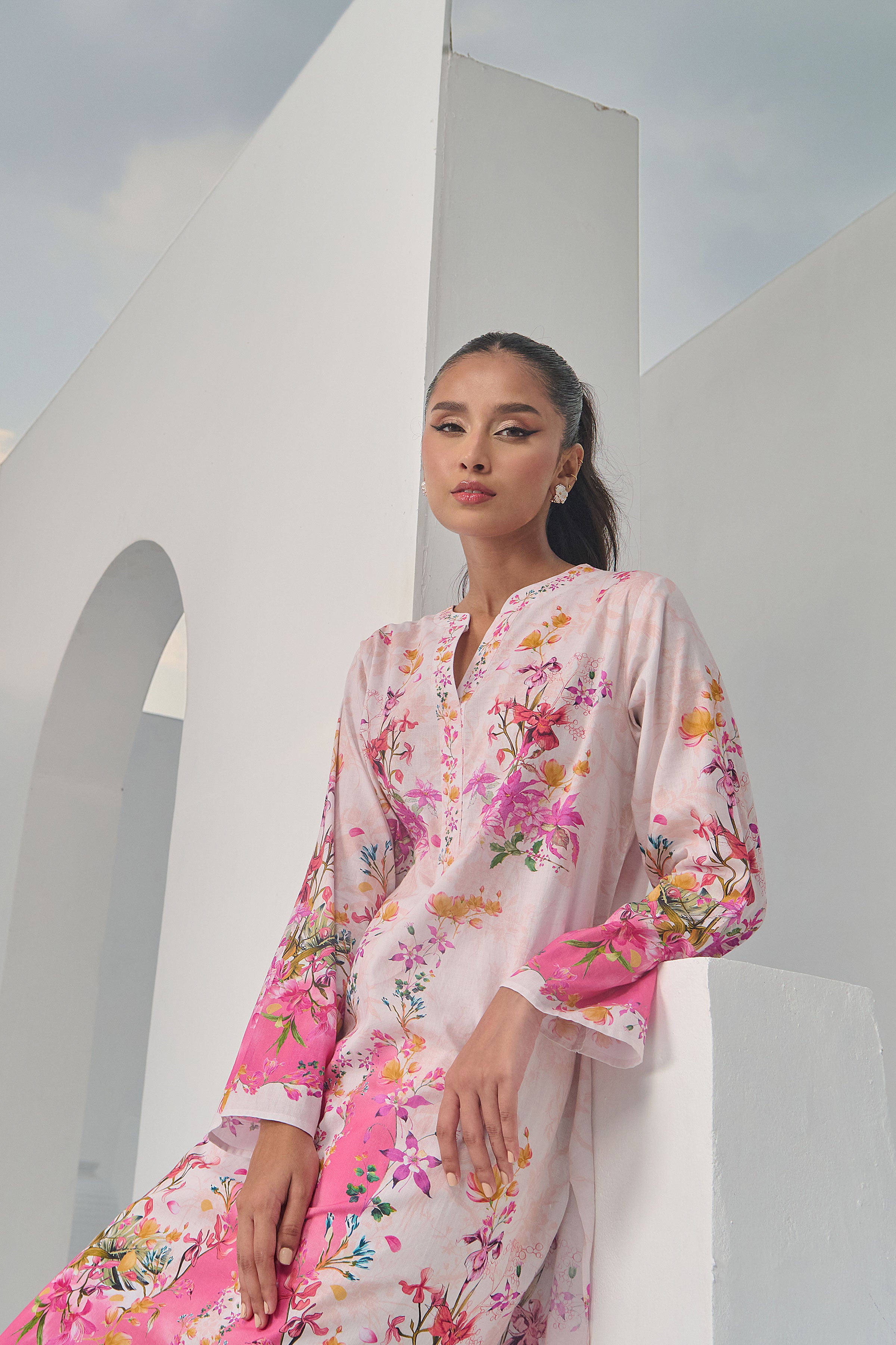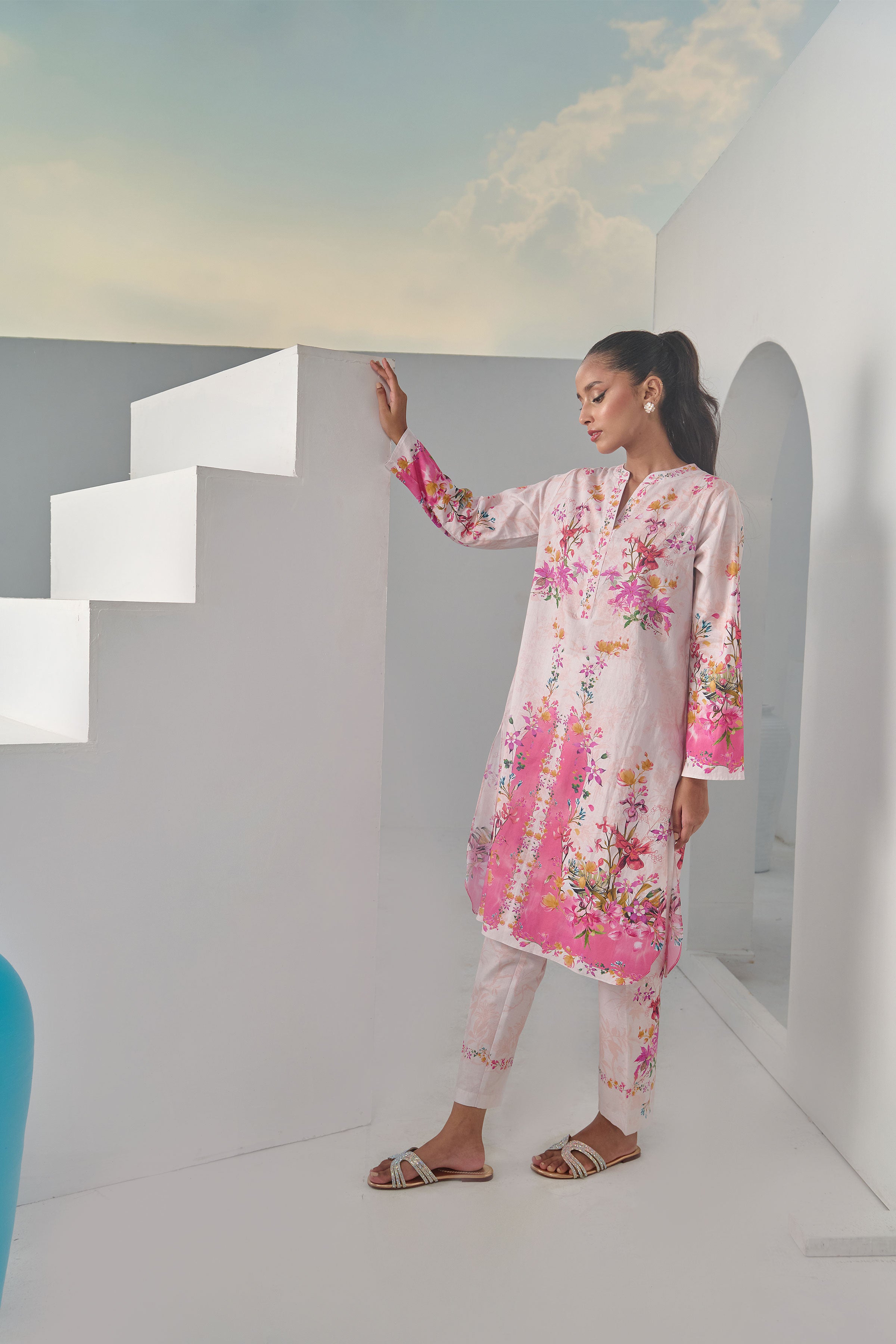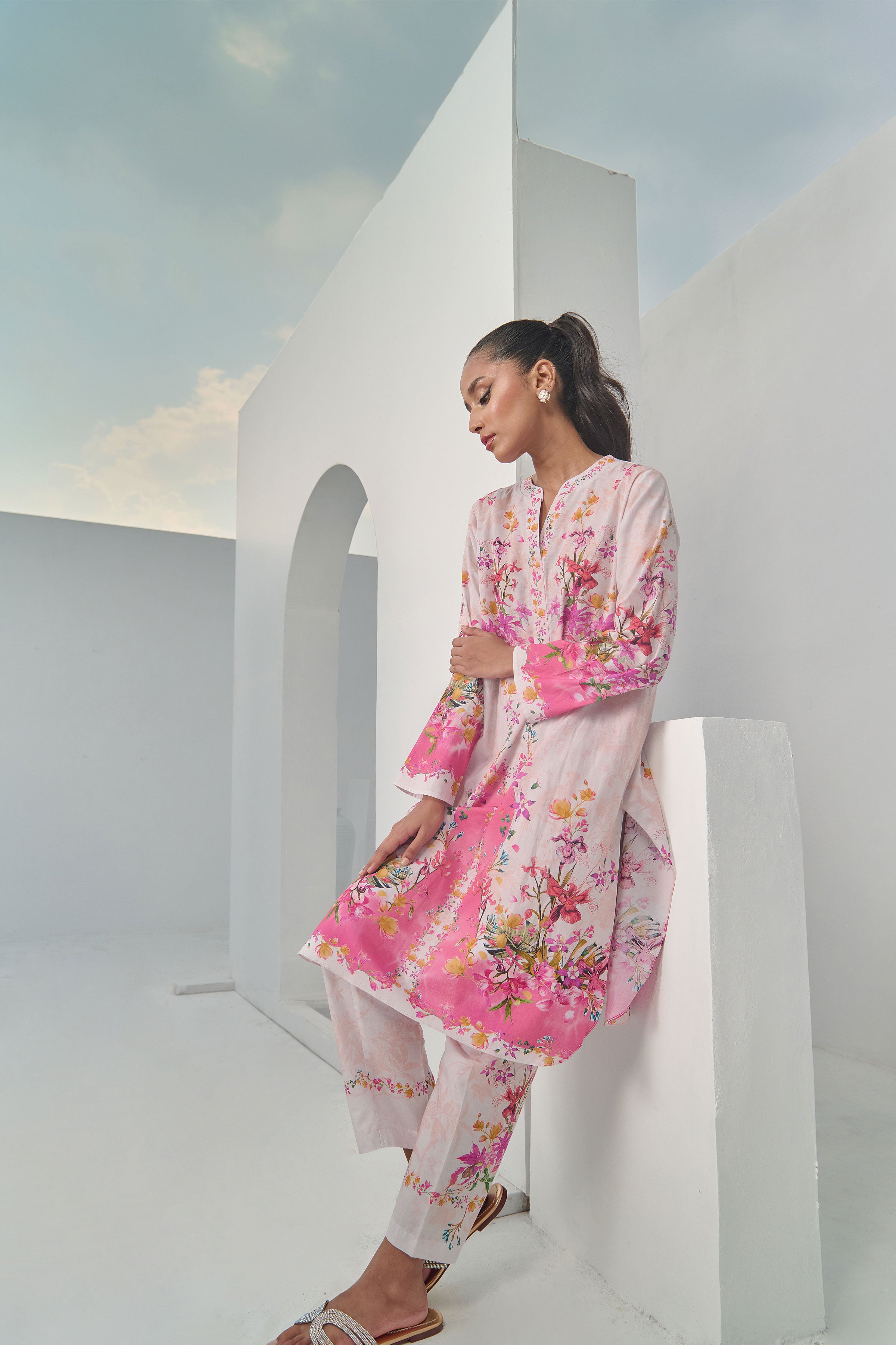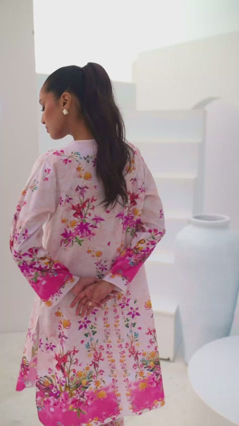 Color: Beige and Salmon Pink with multi colour Flowers