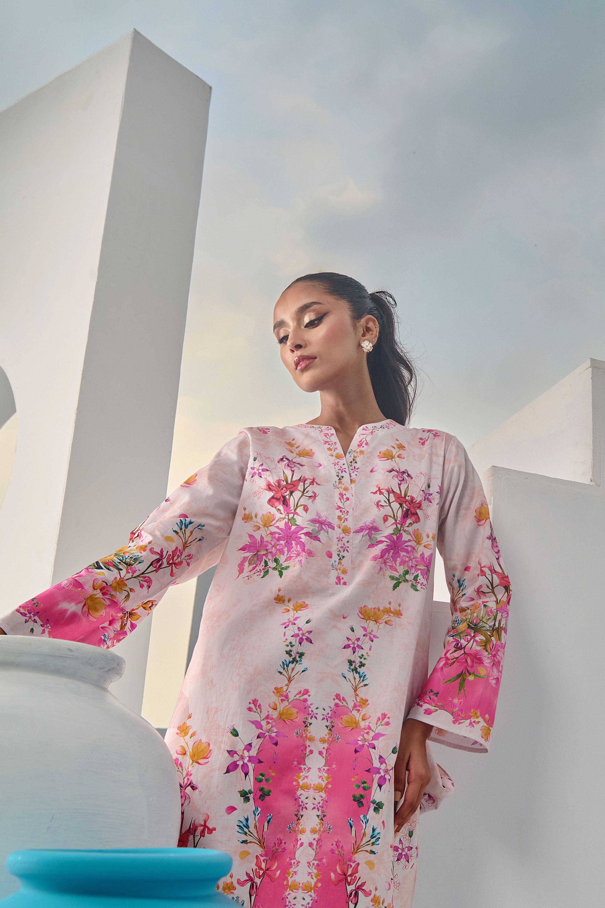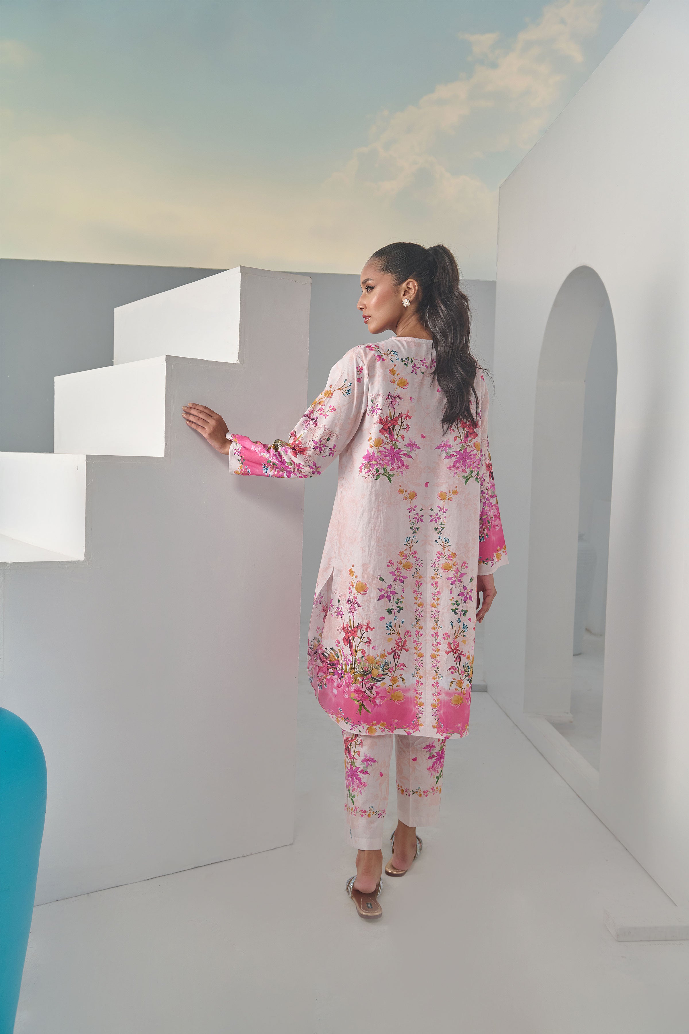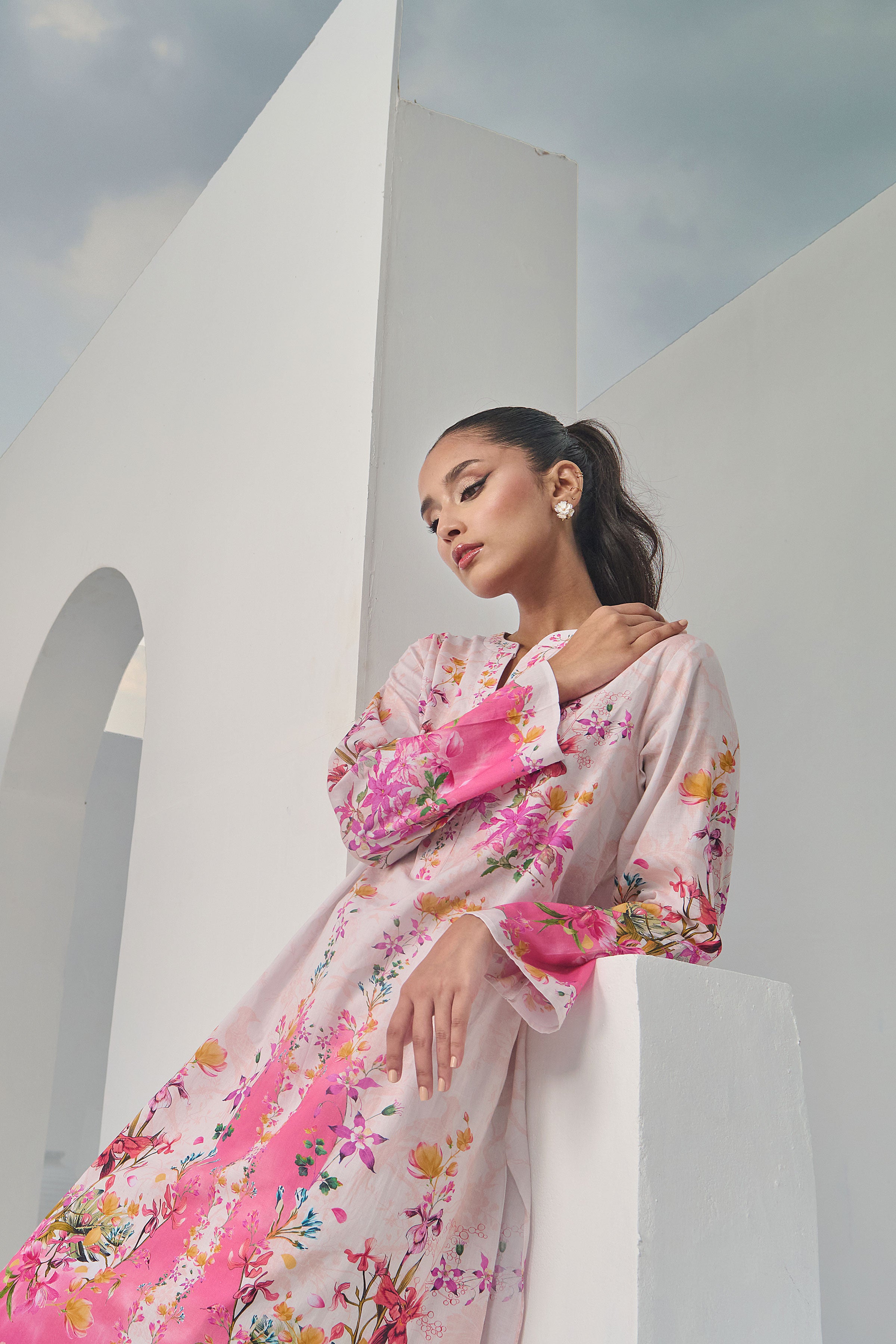Color: Beige and Salmon Pink with multi colour Flowers