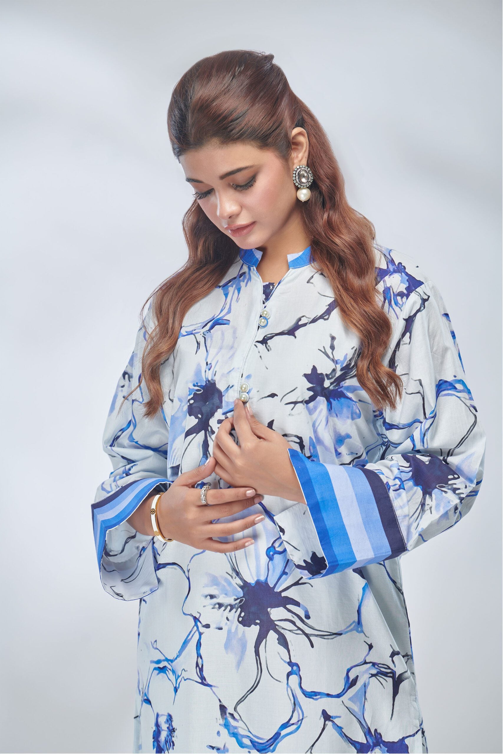 Drape yourself in white and blue premium cotton shirt – a classic outfit that speaks volumes in style. Color: white with blue floral print
