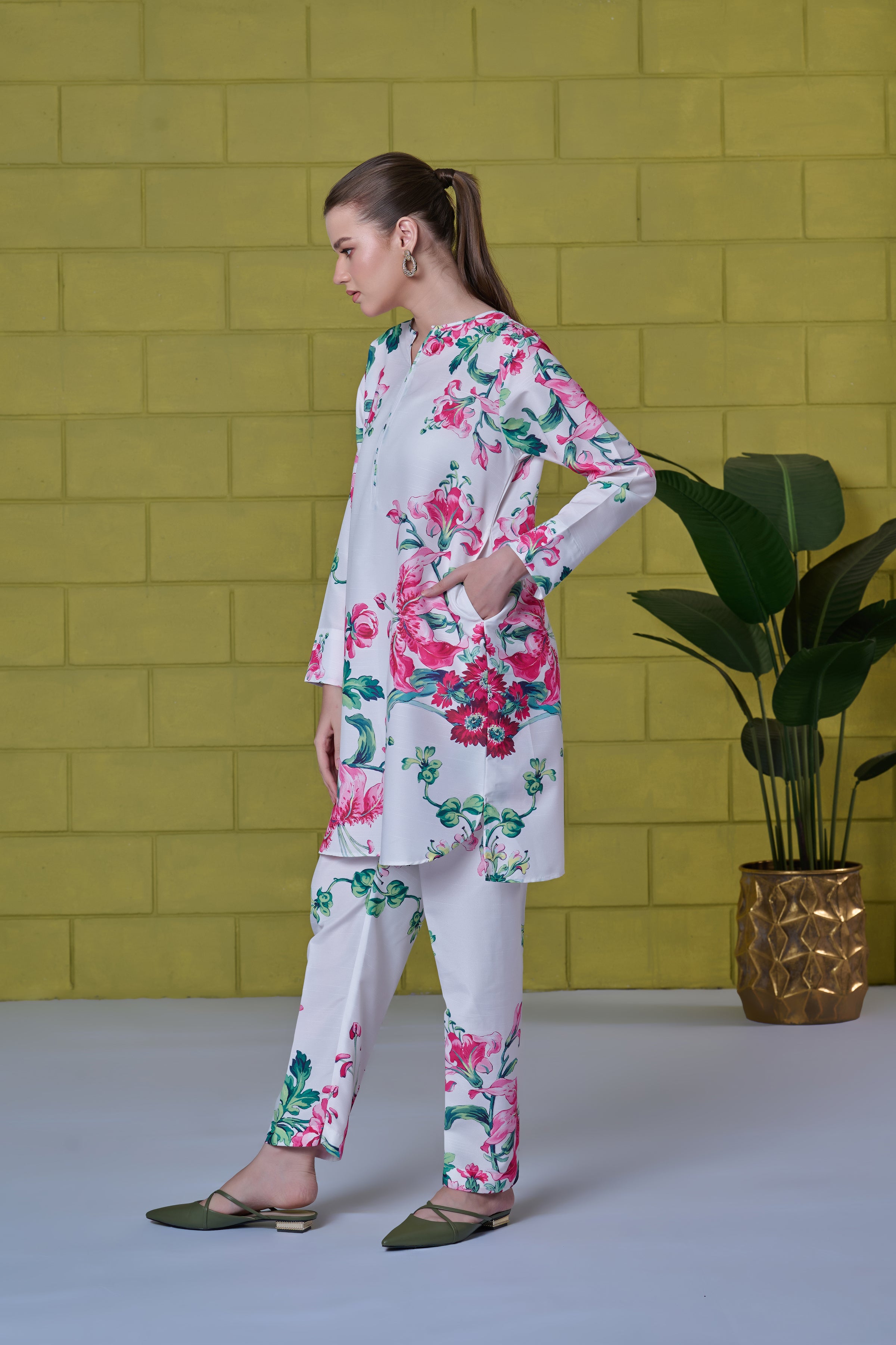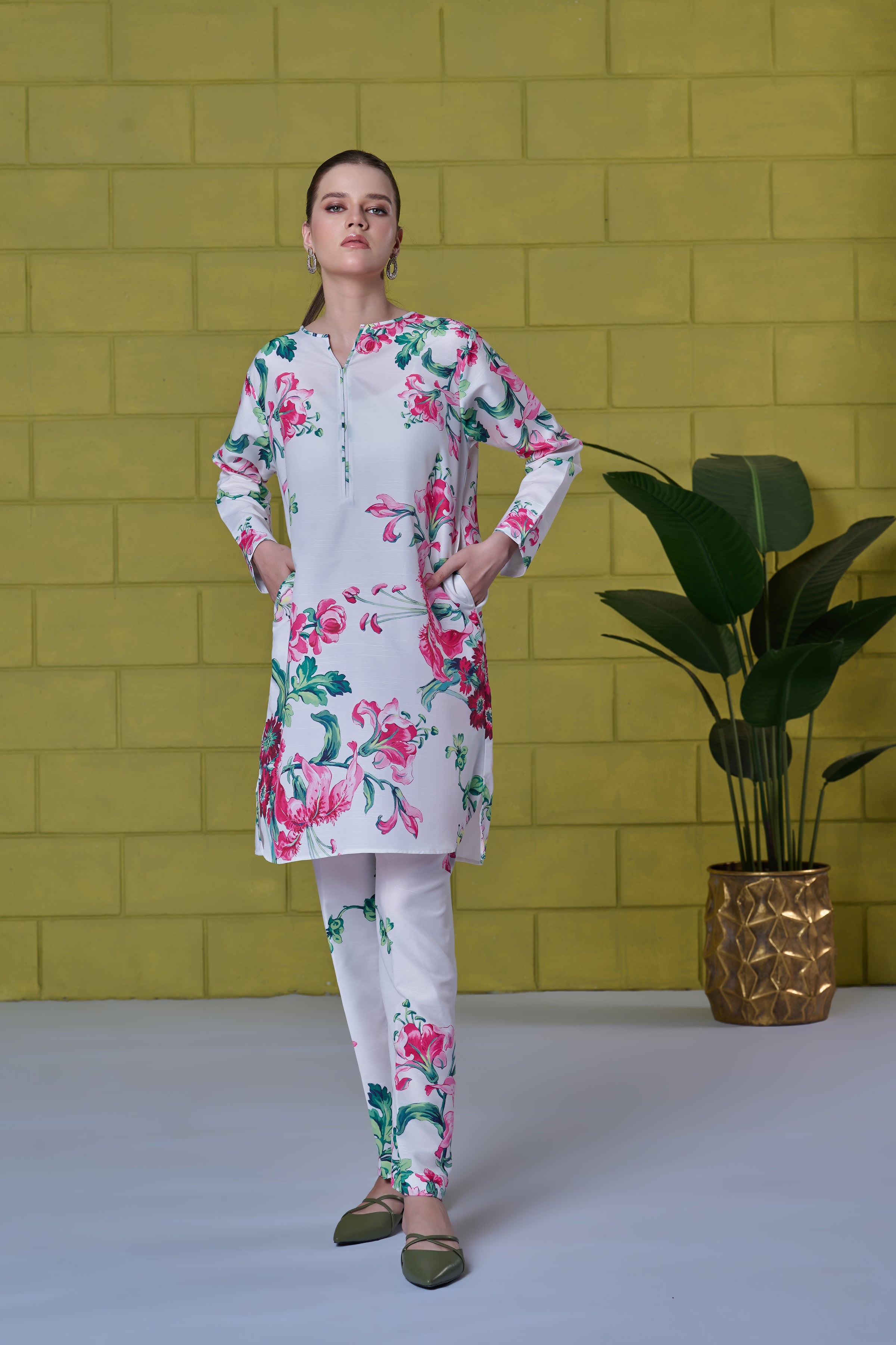 Description: Drape yourself in white flowers cord set – a classic outfit that speaks volumes in style