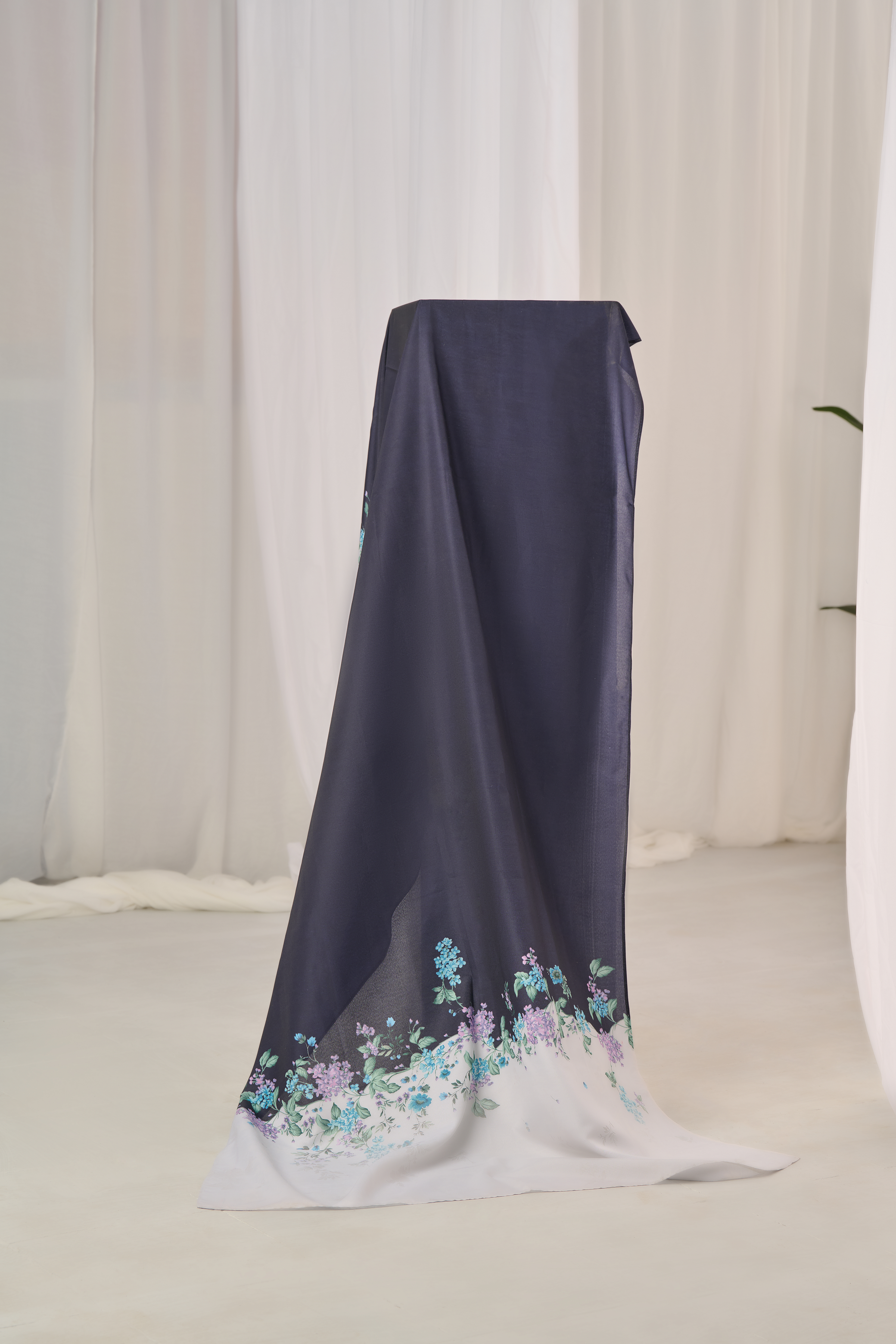 Color: Black and Offwhite with Blue and Lavender florals.