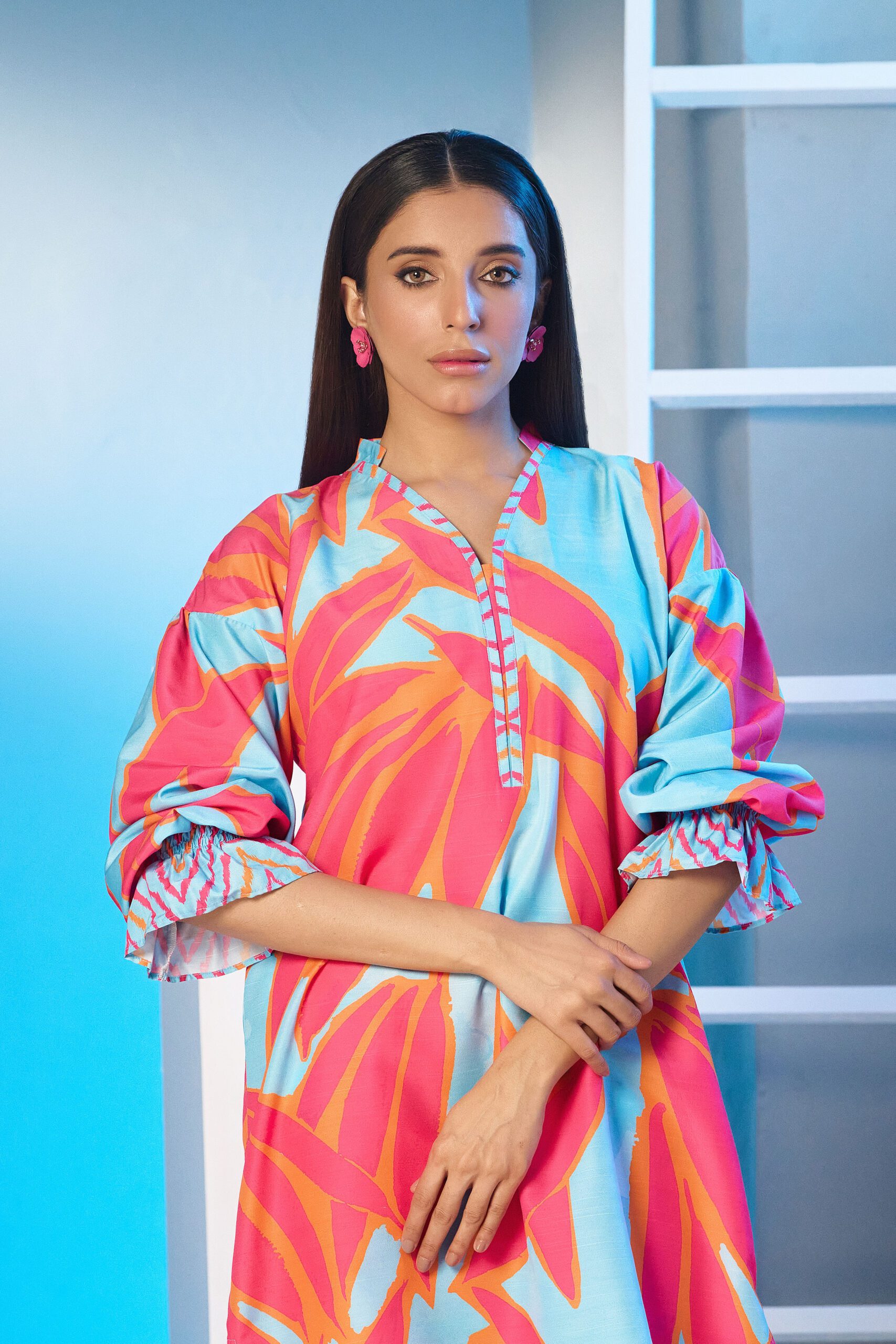 Drape yourself in sky blue and pink cord set – a classic outfit that speaks volumes in style.