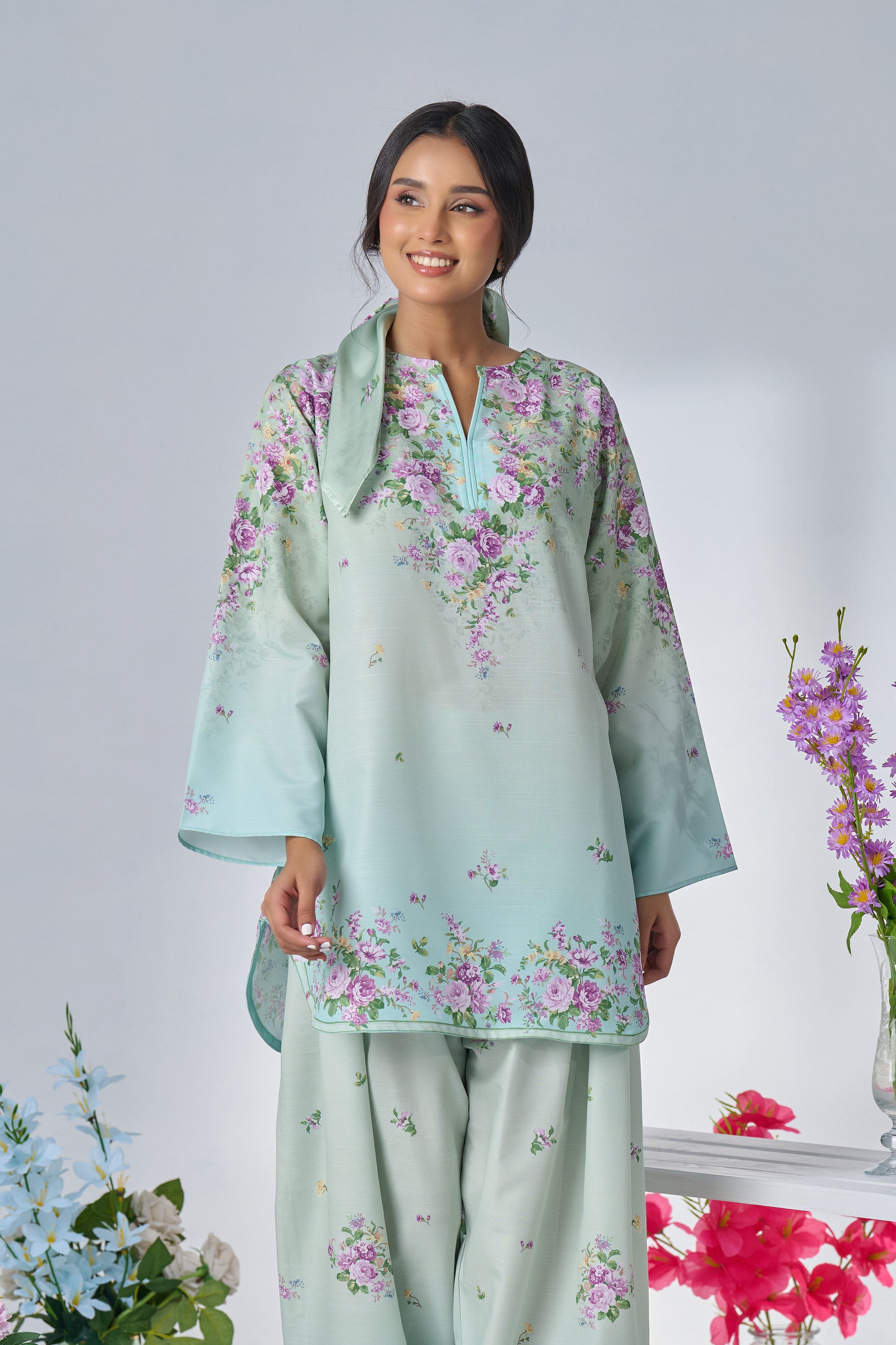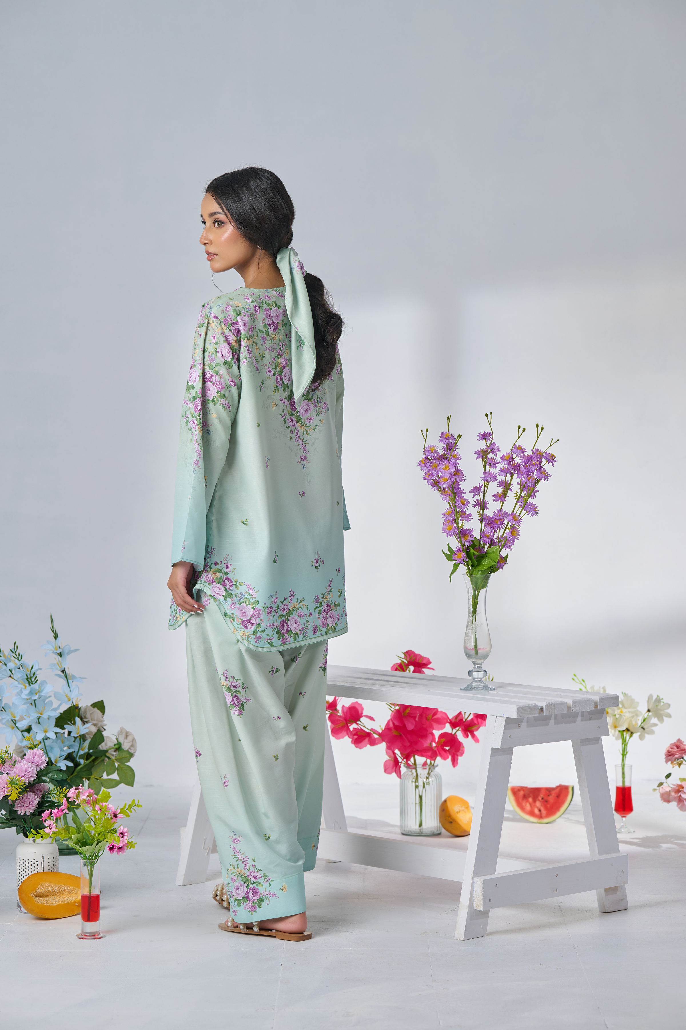 Description: Drape yourself in Pistachio Ombre set– a classic outfit that speaks volumes in style.